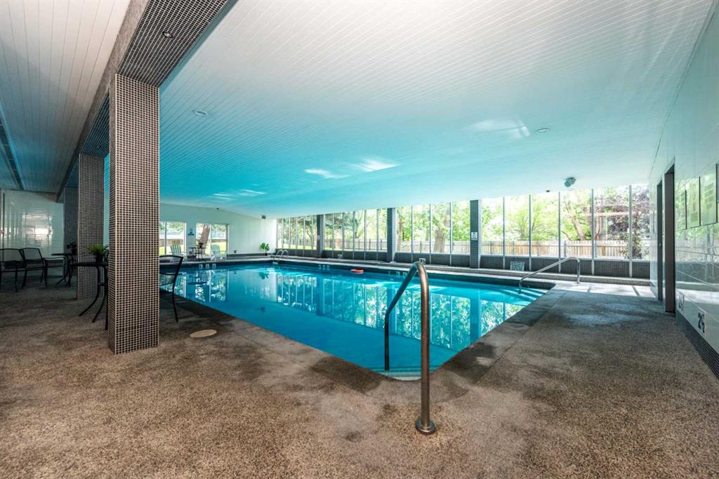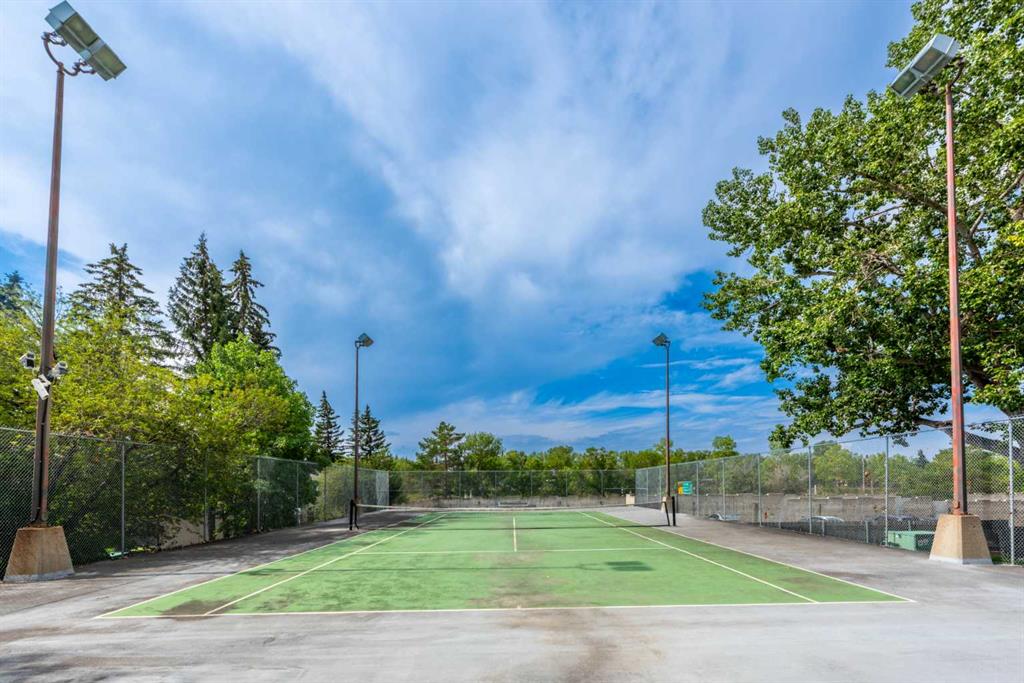 This well maintained 2-bedroom, 1-bathroom condo combines comfort, style, and convenience in a prime location. The west-facing balcony fills the space with natural light and offers stunning sunset views, while the layout—with only one shared wall—ensures exceptional privacy. Inside, enjoy a modern kitchen with updated countertops and backsplash, an open-concept living and dining area, a spacious storage room, and a bright 4-piece bathroom with ample cabinet space. The master bedroom features brand-new carpet, and the second bedroom overlooks the outdoor tennis court. The building offers fantastic amenities, including an indoor swimming pool, fitness center, secure indoor bike parking room and outdoor tennis court.. Just one block from the C-Train and close to shopping, parks, and green spaces, this condo is a rare find.