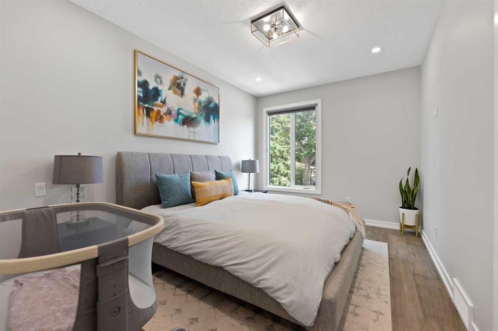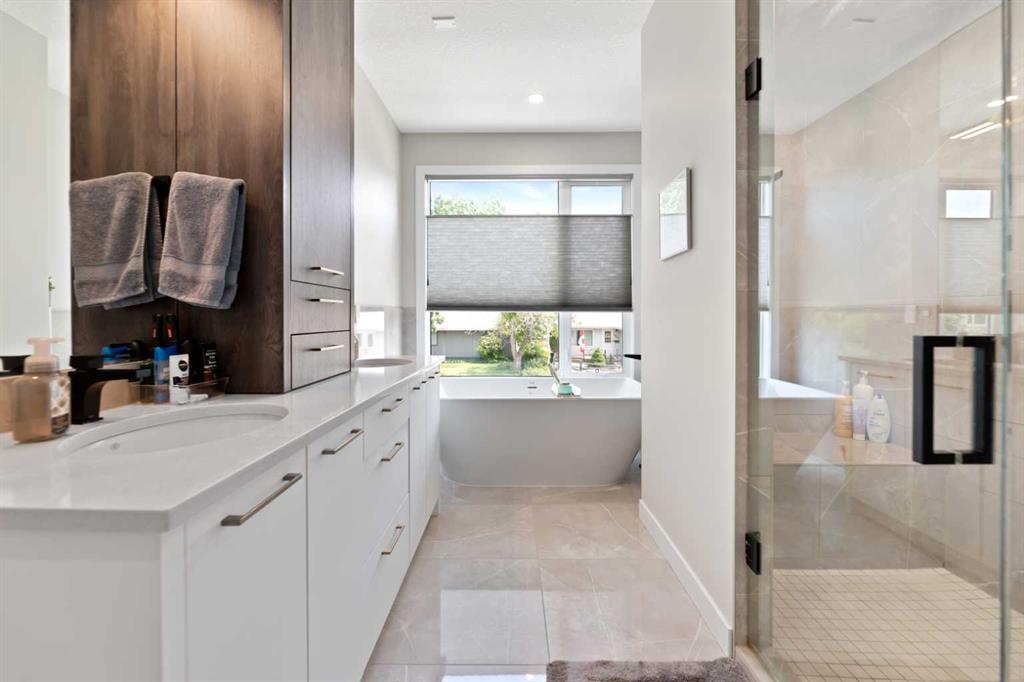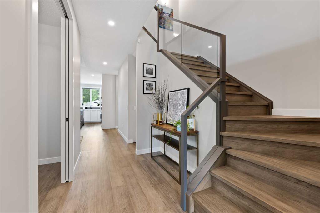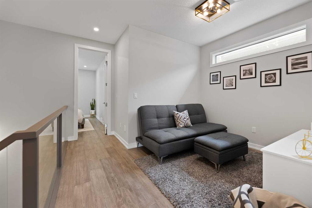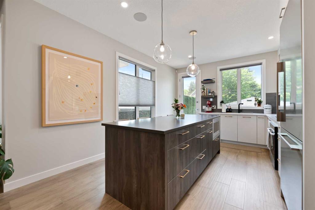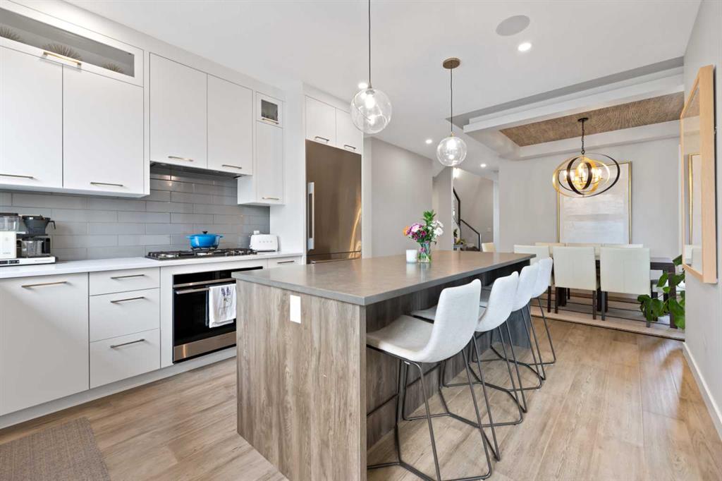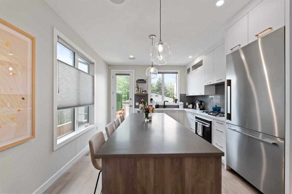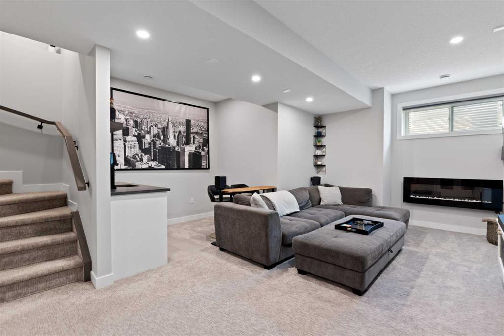 Welcome to this Luxurious home in the sought after community of Glenbrook. With over 2900 of developed square feet, this beautiful home features a cozy living room with a gas fireplace and lots of Natural light. Next you'll find an office that is perfect for working from home plus a drop ceiling in the dining area next to the chic kitchen with oversized island and high-end Fisher & Paykel appliances. The upper floor features 7-inch manufactured oak hardwood, a large master bedroom including a 5 piece ensuite with his and her sinks, 2 additional bedrooms both with walk-in closets and a bright sitting bonus room and laundry room with sink. Downstairs features a family room, wet bar, gym and a nice size bedroom and full 3 piece bath! This west-facing backyard has a private deck and double-parking garage. This home is loaded with upgrades including Air Conditioning, high ceilings and 8 ft doors. Walking distance to parks, schools, shopping & only minutes to downtown. Call to book your private showing today!