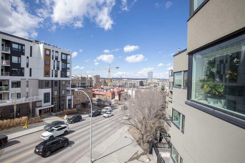 Step into urban sophistication with this stunning 2-bedroom, 1.5-bathroom residence in the heart of Lower Mount Royal. Perfectly positioned just a stone’s throw from the vibrant shops and dining of 17th Ave, this home offers an unparalleled "walk-everywhere" lifestyle. The moment you enter, you’ll be struck by the architectural grandeur of the rare 13-foot+ ceilings, creating an expansive, airy atmosphere that makes the floor plan feel incredibly spacious and bright. As a coveted top-floor unit, you can enjoy the ultimate peace and privacy of having no neighbors living above you. The gourmet kitchen is a chef’s dream, featuring sleek granite countertops, premium stainless steel appliances, and a gas range. Beautiful laminate floors flow seamlessly into the living area, where a cozy gas fireplace serves as the perfect focal point for relaxing evenings. For year-round comfort, the home is equipped with premium in-floor heating, ensuring a warm and inviting environment regardless of the season. The primary suite serves as a true private sanctuary, boasting a spa-like 4-piece ensuite complete with a large soaker tub designed for total serenity. Outside, the west-facing balcony offers a cozy spot to enjoy golden hour sunsets and afternoon light. This unit is completed with the ultimate urban conveniences, including titled underground parking and a large separate storage locker. Whether you are seeking a stylish executive retreat or a high-end investment in a premier Calgary location, this home delivers on every front.