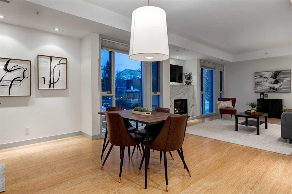 Penthouse living awaits in this stunning, 3 bedroom, 3 bath home with over 1400sqft of thoughtfully designed living space! The open concept layout has 9 ft ceilings, floor to ceiling windows to bring in plenty of natural light and high end finishings throughout. The chef inspired kitchen features lacquered cabinetry, stainless steel appliances, quartz counters, and a large island with breakfast bar overlooking the dining and living rooms - ideal for entertaining. Step out from the dining room unto the balcony to enjoy the downtown, while your spacious living room is anchored by a striking marble-tiled gas fireplace. The primary bedroom has a 5 piece ensuite and an oversized walk-in closet with built-in organizers. 2 additional bedrooms are well proportioned - one with a walk-in closet - are conveniently located near 2 full bathrooms, perfect for sharing or guests. Insuite laundry and a titled stall in the underground parkade complete this home. Located within an easy walk to Marda Loop and it's many shops, restaurants and amenities, plus with a quick commute to downtown, this home is not to be missed!