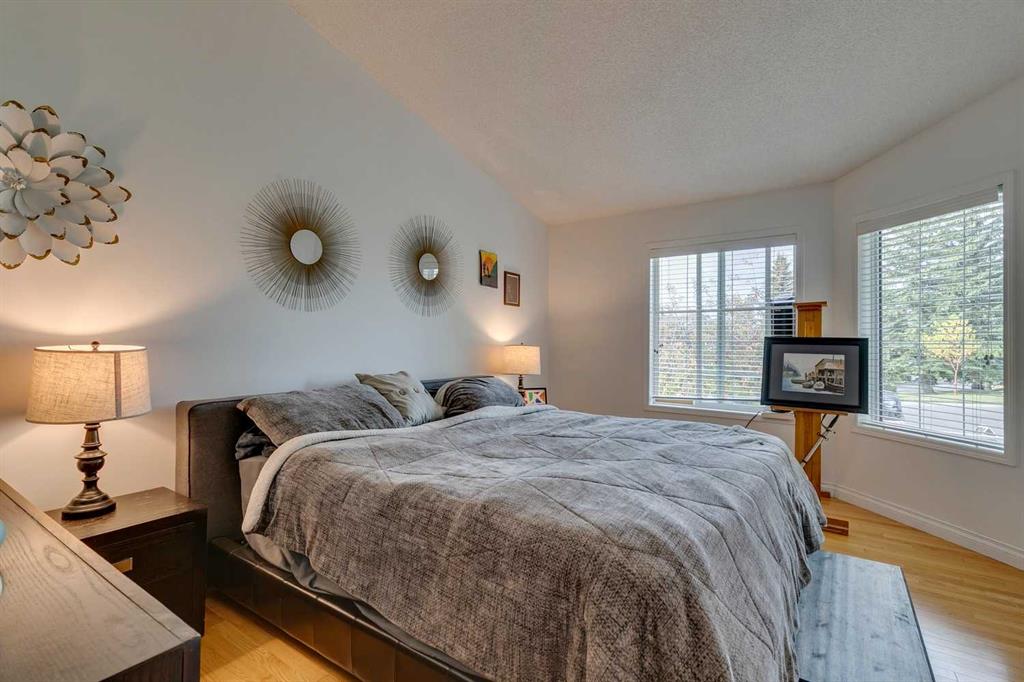 This lovely Villa is in the prestigious community of Signal Hill. Not a Condo, but as part of the villas West Homeowners Association, for a low monthly fee, lawn and snow maintenance are all taken care of for you. On the main level, you enter into a living room with a gas fireplace and large dining area. To your right is the large primary bedroom with a walk-in closet and 3-piece ensuite bathroom. To the rear is a lovely kitchen with quartz counters, stainless steel appliances, a pantry, and a kitchen island with a breakfast bar. A flexible family area is here too, and the back door (with a doggy door) leads to a deck and a gas hookup for the barbeque. The second bedroom is also at the back along with another 4-piece bathroom. Through the laundry room, is access to the large double attached garage. Downstairs, you will find a huge recreational area with barn doors – should you want to close off additional space for guests or privacy. A 3rd bedroom, another 3-piece bathroom and a den/storage room.