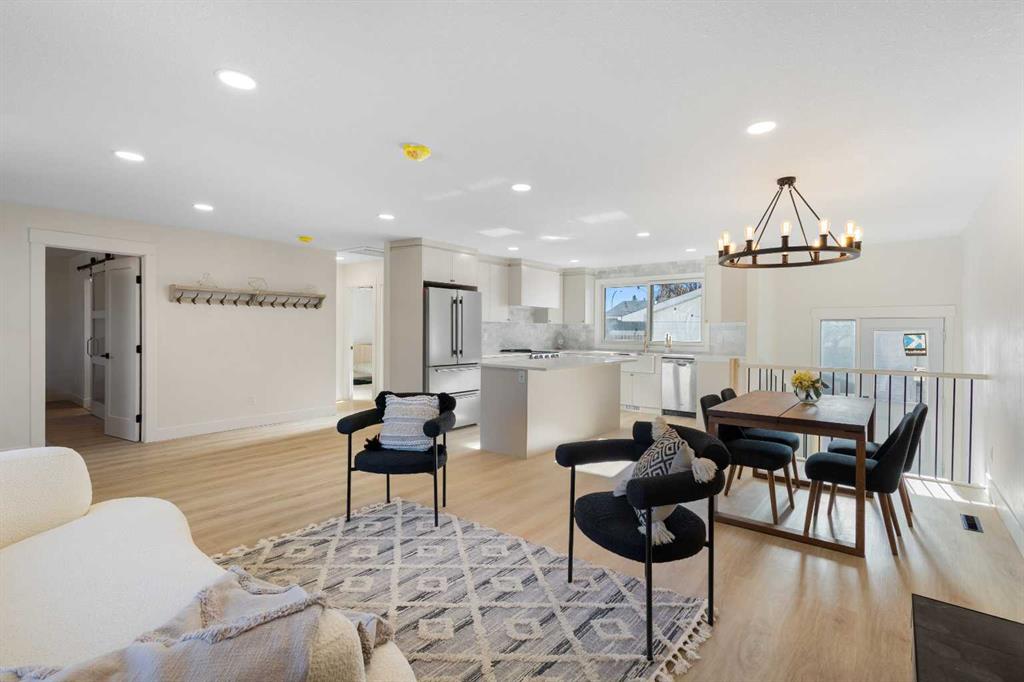 **Open House Sunday Nov 2, 1pm to 3pm** Discover refined living in this fully renovated Varsity masterpiece. No expense was spared in crafting this home, from the durable Hardie board siding on both the house and garage to the impeccable interiors. Step inside to an open-concept sanctuary featuring seamless luxury vinyl plank flooring throughout. The main level is designed for sophisticated entertaining, boasting a bright family room anchored by a dramatic fireplace wall, a dedicated dining area, and a gourmet kitchen. This chef's dream includes all new appliances, an expansive island, and gleaming quartz countertops. The private primary suite offers a retreat with a five-piece modern ensuite and a spacious walk-in closet. A second large bedroom and a four-piece bathroom complete this level. The fully developed basement significantly expands your living space, perfect for movie nights or guests, featuring a huge rec room, two more bedrooms, a sleek four-piece bath, and a brand-new washer and dryer. Enjoy seamless indoor-outdoor living with a landscaped backyard and the utility of a double detached garage. Located facing a green space and with quick access to the University of Calgary, Market Mall, and excellent transit, this home is where luxury meets location.