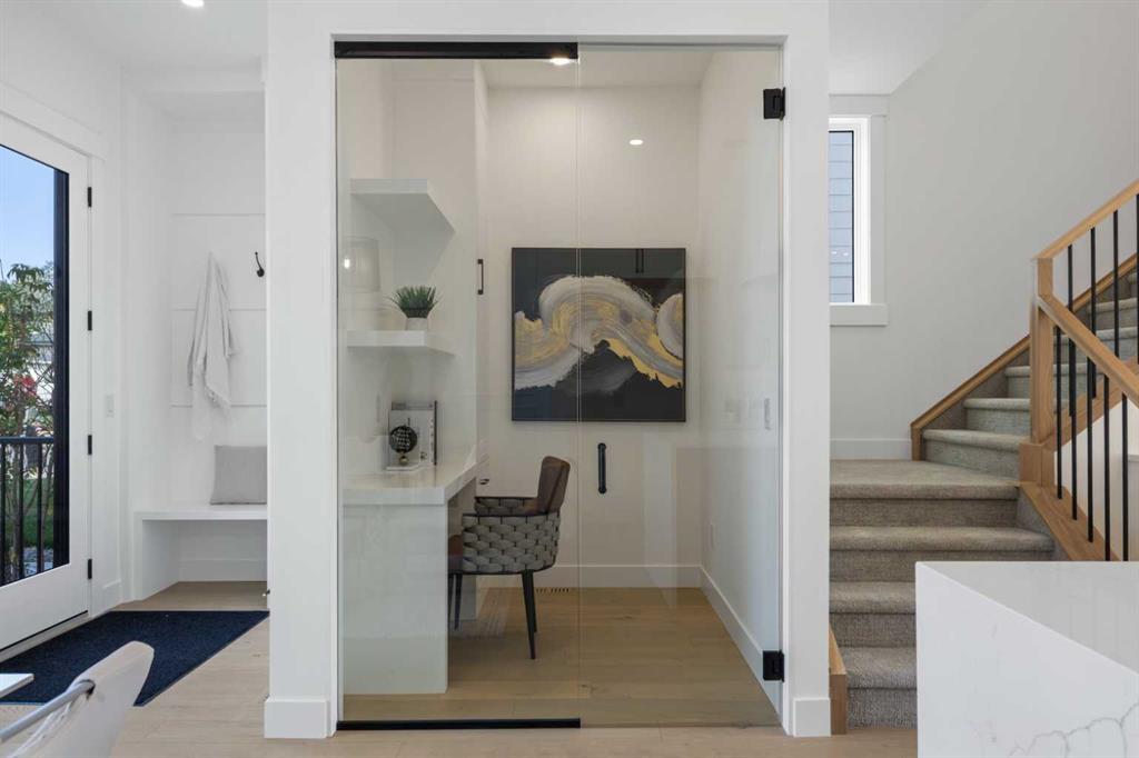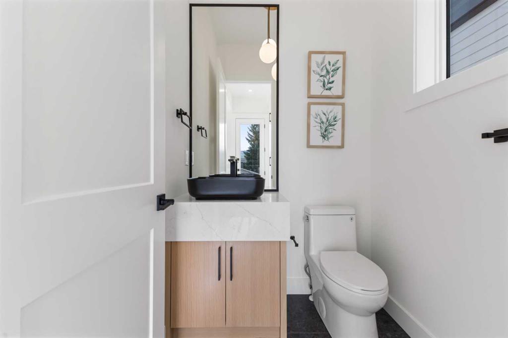 Welcome to a home where contemporary elegance meets everyday comfort in the heart of MONTGOMERY. Situated on a quiet street in this sought-after inner-city community, this stunning new build is designed with both style and function in mind, offering a thoughtfully crafted layout including a WALKOUT BASEMENT w/ COVERED PATIO SPACE, high-end finishes, and incredible natural light throughout. From the moment you step inside, the open-concept main floor makes an immediate impression. You’re greeted by a lovely glass wall in the front foyer, looking into the main floor home office with a built-in desk. The heart of the home is the designer kitchen—a perfect blend of modern aesthetics and practicality. A waterfall island anchors the space, complemented by custom cabinetry, quartz countertops, and top-tier appliances, including a gas range and French door fridge. A built-in pantry offers storage space, while a built-in coffee counter adds more cabinetry and room for small appliances. The front dining area is spacious enough for large gatherings, while the living room is designed for relaxation and entertaining, featuring a sleek gas fireplace and oversized patio doors that open to the upper deck and SOUTHWEST-FACING BACKYARD. A stylish built-in bench and hooks in the mudroom provide everyday convenience, and a chic powder room completes the main level. Upstairs, the primary suite is stylishly finished with a tray ceiling and a spacious walk-in closet with custom built-ins. The generous ensuite is a masterpiece, featuring a freestanding soaker tub, a walk-in shower with a bench, dual vanities, and elegant finishes. Two additional bedrooms each have built-in closets, while a beautifully finished main bath adds even more functionality along with the full laundry room with tile floor and built-in cabinetry. The legal 2-BED LOWER SUITE is a fully independent living space featuring a modern kitchen with full-height cabinetry, quartz countertops, and a stainless steel appliance package. The thoughtful layout includes a bright living room, two spacious bedrooms with built-in closets, a stylish 4-piece bath, dedicated laundry, and a private backyard entrance. The highlight of this space, though, is the full WALKOUT PATIO – the covered space is perfect for enjoying the outdoors year-round, with the additional convenience of a fully private entrance! Located in Montgomery, this home offers an unbeatable lifestyle. Enjoy quick access to the Bow River pathways, Shouldice Park, and Winsport, perfect for outdoor enthusiasts. The community is home to fantastic local restaurants, trendy coffee shops, and boutique shopping while offering easy access to Market Mall, Foothills Hospital, the University of Calgary, and major roadways for a seamless commute. Don’t miss your chance to own this beautifully designed home in one of Calgary’s most desirable neighbourhoods! *Photos from show suite finishes may vary*