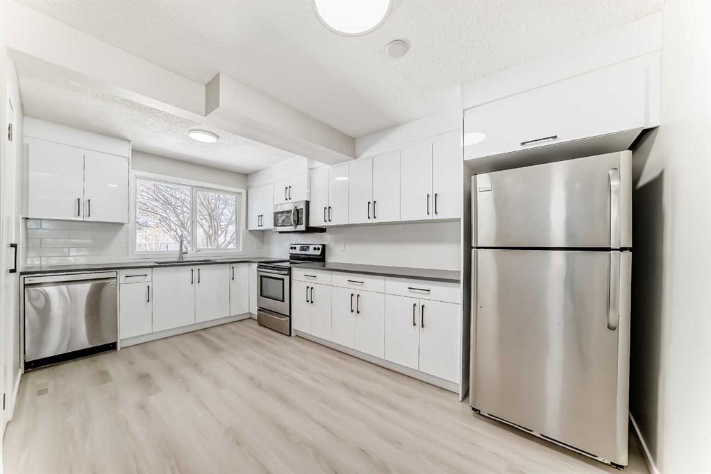 Welcome to this beautifully renovated townhome in the desirable community of Huntington Hills—an ideal opportunity for first-time buyers, investors, or growing families. This move-in-ready home showcases new flooring, a brand-new kitchen, and fresh paint throughout, offering a modern and stylish living space. The stunning new kitchen features quartz countertops, contemporary finishes, and ample cabinet space, seamlessly flowing into a bright and open living area. The main floor is thoughtfully designed with a full bathroom, adding everyday convenience and flexibility. Upstairs, you’ll find three spacious bedrooms along with another full bathroom, making this home stand out with TWO FULL BATHROOMS—perfect for families or shared living. The fully finished basement offers a versatile family room, ideal for relaxing or entertaining. Enjoy the fenced backyard with space for gardening and a charming front yard that enhances the home’s curb appeal. Additional highlights include a brand-new furnace (2026) and hot water tank (2026), a dedicated parking stall, and abundant visitor parking. Located steps from a daycare, schools, shopping, Deerfoot Trail access, and just minutes to downtown—this home checks all the boxes. Don’t miss out—book your showing today!