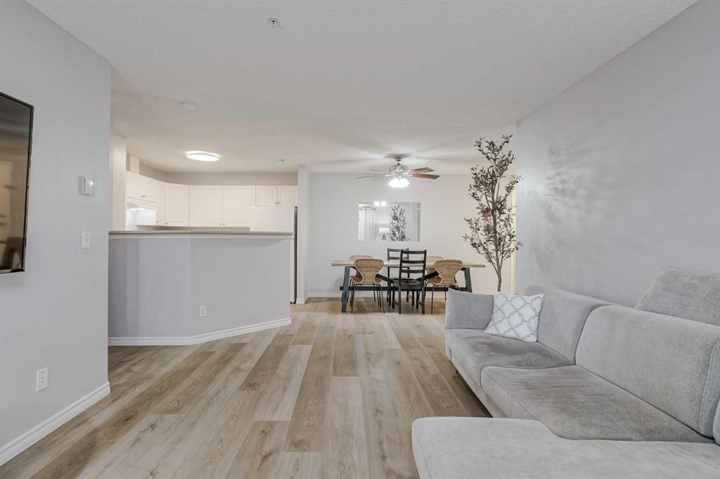 Green Space Facing, Spacious & Seriously Clean! This bright 2-bedroom, 2-bathroom ground-floor gem is updated, and ready to move in. Kickstart your mornings on the spacious patio overlooking peaceful greenery—or fire up the BBQ for a weekend unwind. Inside, the open-concept living space is pure home zone—living, dining, and kitchen flow together perfectly for Netflix nights, dinner parties, or just a good vibe kitchen dance. Speaking of the kitchen? Counter space for days, a breakfast bar for lazy weekends, and ample cabinets to hide all your appliances and let’s be honest…the snacks. The primary bedroom is your personal retreat, featuring a walk-through closet and private ensuite—hello, pampered mornings! The second bedroom is perfectly placed near the main bathroom, ideal for guests or a home office. Bonus: an oversized storage/laundry room keeps the chaos out of sight. Did we mention titled underground parking and all utilities included? Living here is as easy as it gets. And with shopping, restaurants, and the LRT just steps away, your social life is basically sorted. Bright, updated with fresh paint and luxury vinyl plank floors this move-in ready home is all set for your next chapter. Make sure to view the virtual tour and the video then call your favourite Realtor to view today!