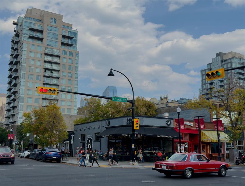Live in the heart of the Beltline! This stylish studio unit at the Drake is located in one of Calgary's most vibrant micro-locations, just steps from 17th Avenue's nightlife, boutique shops and trendy restaurants. With everything within walking distance, you may never need a car- however this unit still includes a titled parking stall and storage locker for your convenience! Floor-to-ceiling windows flood the space with natural light, making the open layout feel bright and airy. The sleek kitchen features quartz countertops, stainless steel appliances, and a dedicated dining area, while the living space easily accommodates a cozy lounge and TV setup. A spacious sleeping area with double closets adds functionality, and the four-piece bathroom offers granite countertops, modern finishes, and a tub/shower combo. Additional conveniences include in-suite laundry. Step outside to your private balcony and take in sweeping views of downtown and 17th Avenue—a perfect spot to relax, soak in the city lights, or catch the fireworks. Whether you’re a first-time buyer, savvy investor, or simply want to live in the heart of the action, this Beltline home is a standout opportunity.