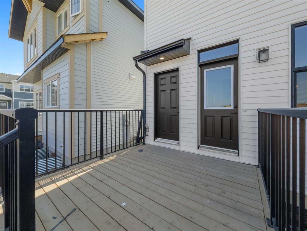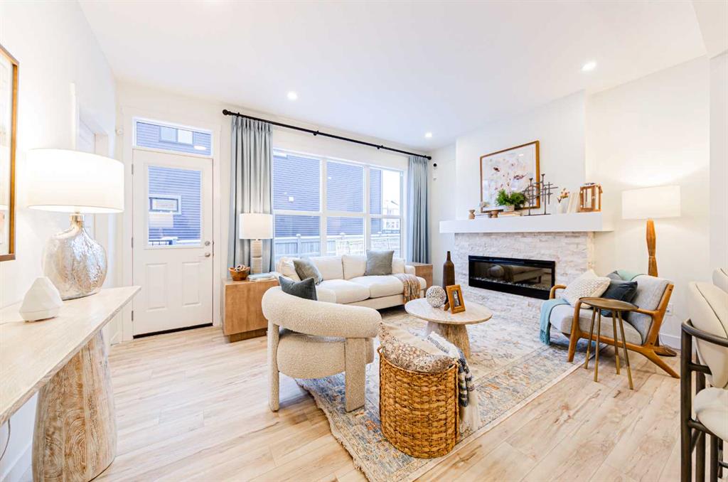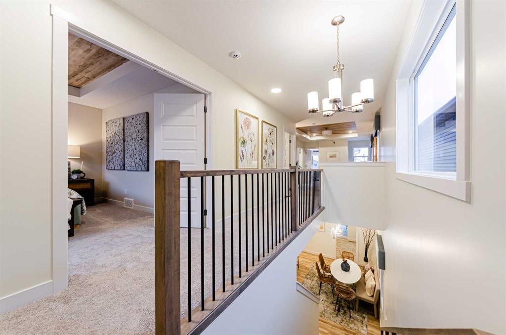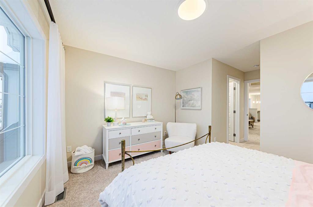 Welcome to The Delilah, an exquisite home designed and built by Genesis Homes. This stunning property offers a perfect blend of modern elegance and functional design, making it an ideal choice for families seeking comfort and style. This home boasts 2,194 SqFt throughout the main and upper levels with an unfinished basement with 9Ft ceilings and a separate entry. The main level has an abundance of living space! Starting with the multi-use flex room, great for a home office, day seating or even overnight guests. The open floor plan kitchen and great room make this an entertainer's dream. The sparkling kitchen is outfitted with quartz countertops, ample cabinet storage, and a builder package of stainless steel appliances. The barstool seating at the kitchen island is the perfect place to enjoy small meals while the formal dining room is waiting for a large dinner table. The kitchen is paired with a walk-in pantry great for dry goods storage. The great room is exactly that; with a 50" electric fireplace and TV ready wall above. The great room overlooks the backyard with large windows. The door off the great room leads to the back deck making indoor/outdoor living easy. The main level is complete with a 2pc bath. The interior is complemented by metal spindle railings, adding a touch of sophistication and durability to the stairways. Upstairs has plush carpet flooring throughout the 3 bedrooms and bonus room. The primary bedroom is a private oasis that opens with french doors to an expansive bedroom. The primary is paired with a walk-in closet and expanded 5pc ensuite bath. The ensuite has a deep soaking tub, walk-in shower, double vanity and private washing closet. Bedrooms 2 & 3 are sizeable and share the 4pc bath with a tub/shower combo. The upper level bonus room is a plush and comfortable space to unwind in the evenings. The upper level hall laundry area is conveniently placed near all bedrooms making this task easy. The basement of this home includes rough-ins ready for a legal secondary suite subject to approval and permitting by the city/municipality with a separate entrance, & 9Ft ceilings. Ready for August-September of 2025, its time to pack your bags! Hurry and book a showing at this gorgeous Genesis home today! **Photos are representative of the Delilah show home in Homestead. Finishes may differ**