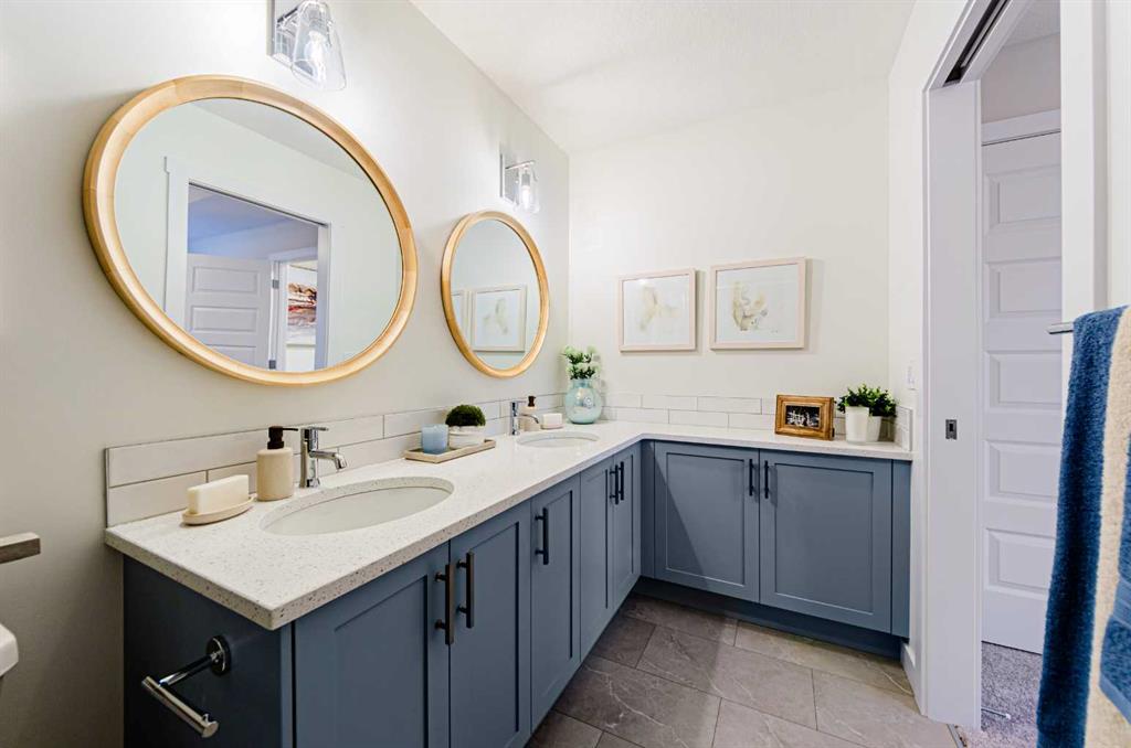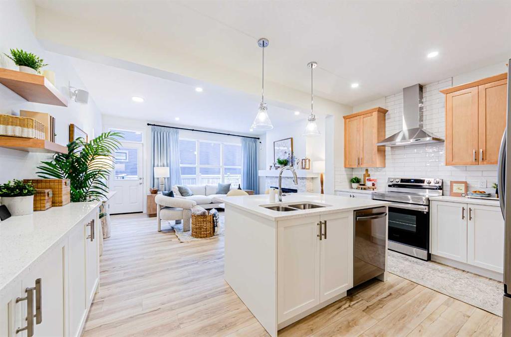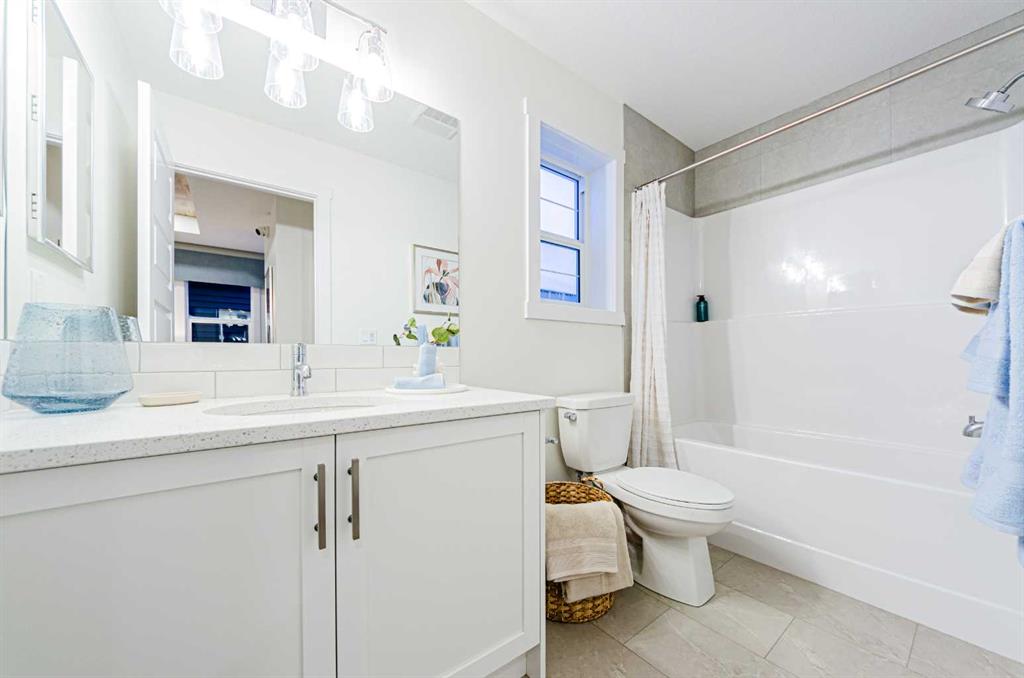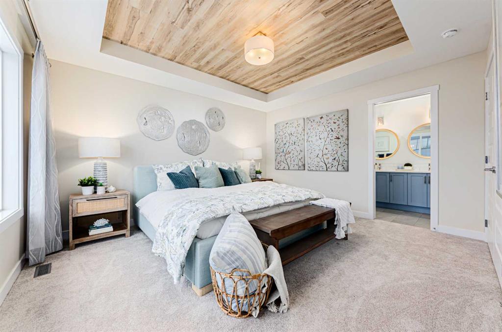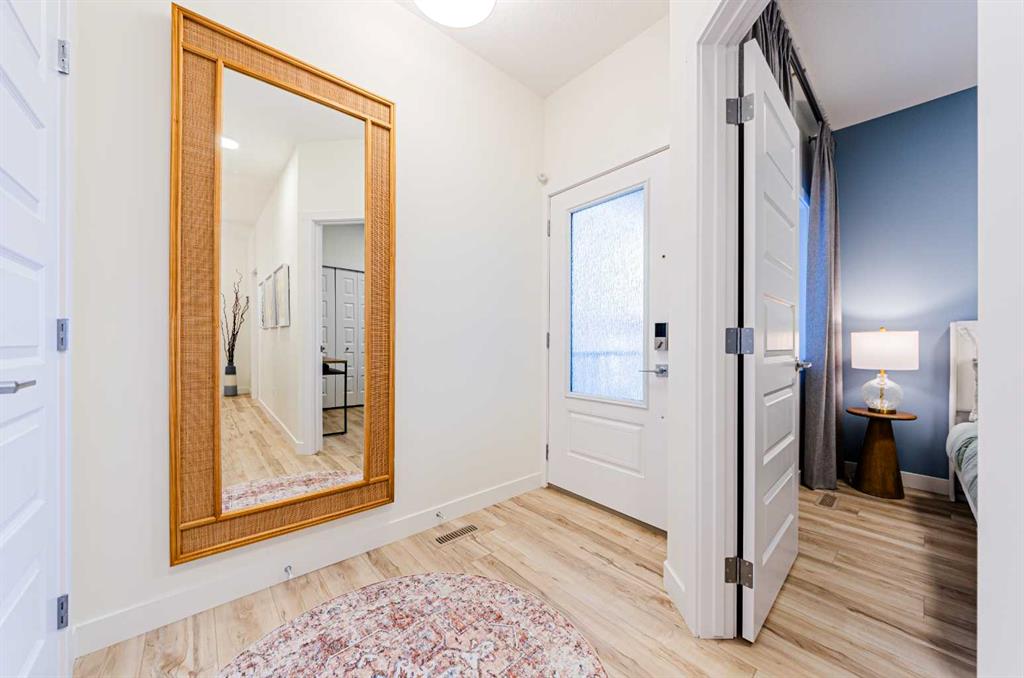 Welcome to The Delilah, an exquisite home designed and built by Genesis Homes. This stunning property offers a perfect blend of modern elegance and functional design, making it an ideal choice for families seeking comfort and style. This home boasts 2,194 SqFt throughout the main and upper levels with an unfinished basement with 9Ft ceilings and a separate entry. The main level has an abundance of living space! Starting with the multi-use flex room, great for a home office, day seating or even overnight guests. The open floor plan kitchen and great room make this an entertainer's dream. The sparkling kitchen is outfitted with quartz countertops, ample cabinet storage, and a builder package of stainless steel appliances. The barstool seating at the kitchen island is the perfect place to enjoy small meals while the formal dining room is waiting for a large dinner table. The kitchen is paired with a walk-in pantry great for dry goods storage. The great room is exactly that; with a 50" electric fireplace and TV ready wall above. The great room overlooks the backyard with large windows. The door off the great room leads to the back deck making indoor/outdoor living easy. The main level is complete with a 2pc bath. The interior is complemented by metal spindle railings, adding a touch of sophistication and durability to the stairways. Upstairs has plush carpet flooring throughout the 3 bedrooms and bonus room. The primary bedroom is a private oasis that opens with french doors to an expansive bedroom. The primary is paired with a walk-in closet and expanded 5pc ensuite bath. The ensuite has a deep soaking tub, walk-in shower, double vanity and private washing closet. Bedrooms 2 & 3 are sizeable and share the 4pc bath with a tub/shower combo. The upper level bonus room is a plush and comfortable space to unwind in the evenings. The upper level hall laundry area is conveniently placed near all bedrooms making this task easy. The basement of this home includes rough-ins ready for a legal secondary suite subject to approval and permitting by the city/municipality with a separate entrance, & 9Ft ceilings. Ready for August-September of 2025, its time to pack your bags! Hurry and book a showing at this gorgeous Genesis home today! **Photos are representative of the Delilah show home in Homestead. Finishes may differ**