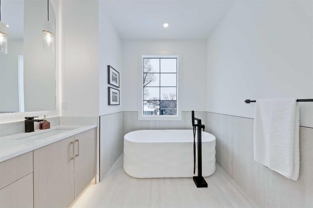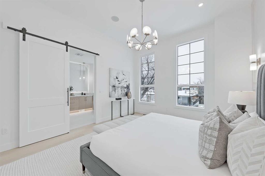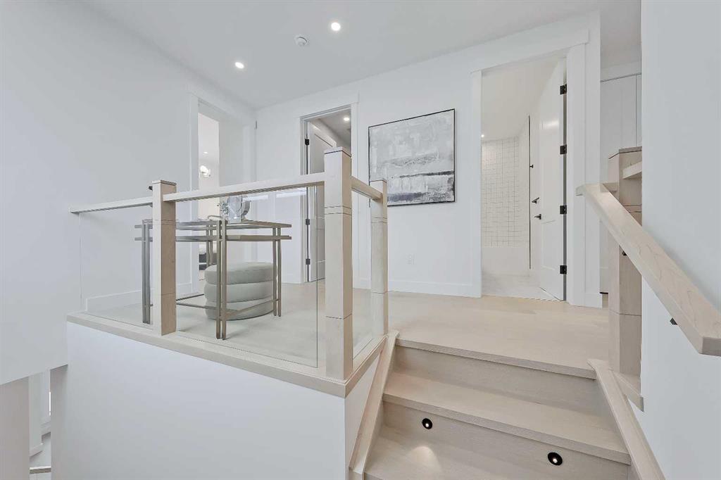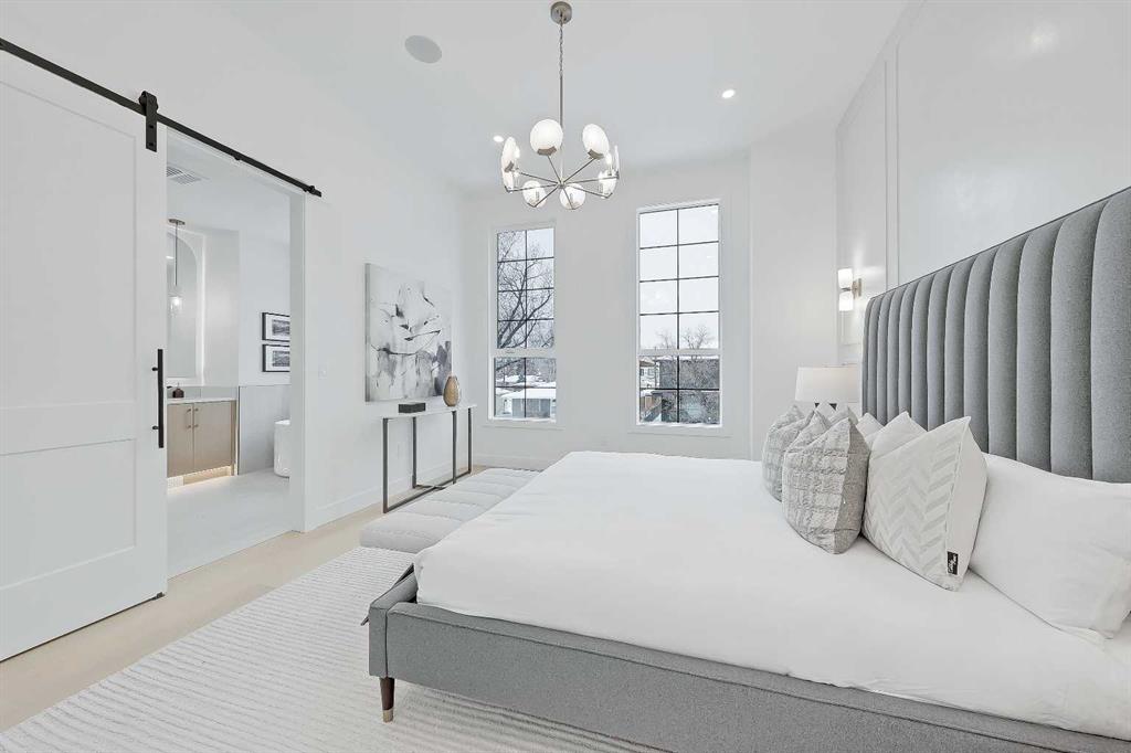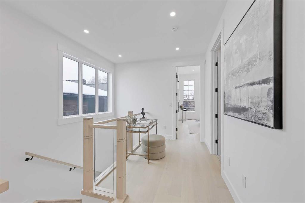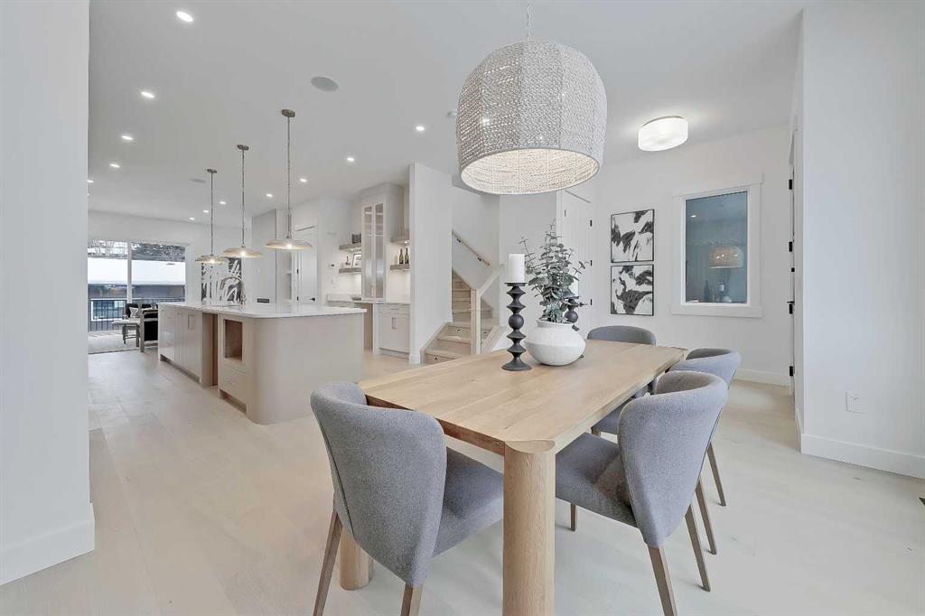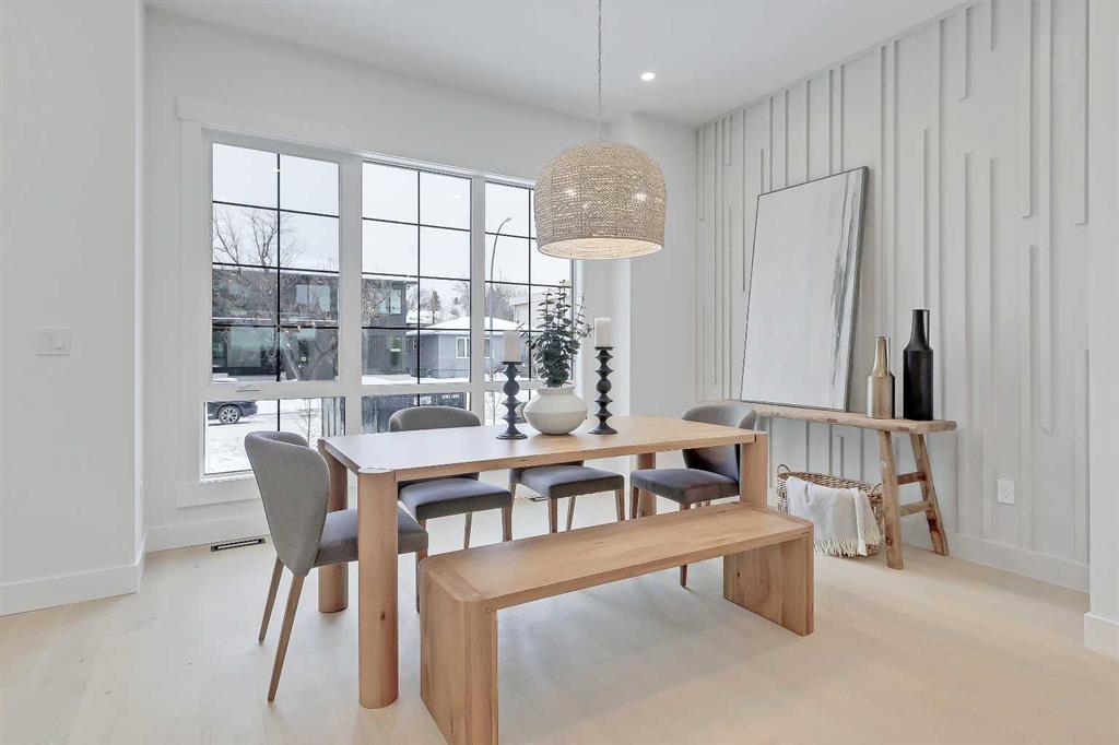 Clean lines, layered neutrals, and a magazine-ready kitchen come together in this modern PARKDALE INFILL home that feels calm the moment you step inside. The palette is soft and sophisticated, the hardware is warm, and every surface reads effortless. It’s designed for real life, with spaces that flow and finishes that stand out. You enter to a defined foyer with a closet for coats and sightlines across the wide plank engineered hardwood and high ceilings. Sightlines pull you forward to the heart of the home where the kitchen, dining, and living connect in one easy sweep. The kitchen is an entertainer’s dream: full-height cabinetry, a large quartz island with seating, warm fixtures, and integrated upgraded stainless steel appliance package & POT FILLER. The quartz features subtle golden veining for an elegant touch of luxury, and the slab backsplash maintains a sleek and easy-to-clean look. Across from the island, a generous dining area sits under designer lighting, making family dinners feel special even on a Tuesday. The living room is designed for a cozy and modern setup, oriented towards a fireplace feature with vertical wood clad tile that is sure to impress. Large windows draw in natural light and frame the backyard and vinyl deck. The rear mudroom with built-ins for shoes, backpacks, and sports gear makes daily life simple and organized, keeping the main level looking photo-ready. Upstairs is laid out for privacy and quiet retreats. The primary suite is a true haven, featuring a sky-high 11-ft ceiling, tall windows, a large walk-in closet, and a serene ensuite finished in warm stone tones. Enjoy a double vanity, walk-in shower w/steam, and elegant fixtures that match the home’s modern feel. Two additional bedrooms share a stylish full bath, and the laundry room is exactly where you want it. The lower level adds incredible flexibility w/ a LEGAL 2-BED SUITE (approved by the city), allowing you to use it as a mortgage helper or mother-in-law suite! Thoughtfully finished like the rest of the home, this space features a full kitchen with quartz counters and a stainless steel appliance package, a full 4-pc bathroom with a fully tiled tub/shower combo, and a dedicated laundry room. Location puts you in that sweet spot on Calgary’s northwest side with quick access to the BOW RIVER PATHWAY for runs and dog walks, and an easy connection to Edworthy Park. Groceries, coffee, and everyday errands are close at hand along 16 Ave and in Kensington, with more retail at Market Mall. Commuting is simple with nearby routes to downtown, and you’re minutes to Foothills and the Children’s Hospital, the University of Calgary, and the West Hillhurst Community Association for rinks, fitness, and programs. Well-regarded schools serve all ages, transit is convenient, and weekend life is dialed with parks, playgrounds, and local restaurants within a short drive. It’s understated luxury. Warm, modern finishes. Functional spaces that make daily life feel organized and elevated.