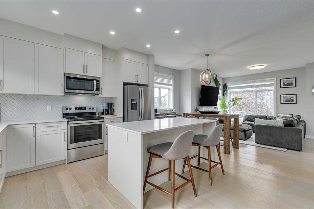 Welcome to this rare 4-bedroom, 3.5-bathroom end-unit townhome in the sought-after community of Sage Hill! Offering 1,900 sq. ft. of developed living space, this home is the perfect blend of modern design, functionality, and comfort. The open-concept main floor features a stylish kitchen with a large island, stone counters, and designer finishes, flowing seamlessly into the bright living and dining areas — perfect for both entertaining and everyday living. Upstairs, the spacious primary suite boasts vaulted ceilings, large windows, a closet, and a private ensuite. Two additional bedrooms, a full bathroom, and convenient upper-level stacked laundry and closet complete the second floor. The fully finished basement adds even more versatility with a large rec room, a fourth bedroom, and another full bathroom — an ideal space for guests, teens, or a home office. Step outside to your private, fully fenced backyard for your fur baby — a rare find in townhome living! Perfect for kids, pets, or quiet evenings. This end unit also includes central A/C, plenty of natural light, and an assigned parking stall right outside. Situated across from a playground with views from your living room window, and right by tons of visitor parking and the mailboxes, this location can’t be beat. Enjoy all that Sage Hill has to offer with its ever-growing amenities at Creekside, plus quick access to Stoney Trail for an easy commute anywhere in the city. With so few units like this available, this home checks all the boxes — don’t miss your chance!