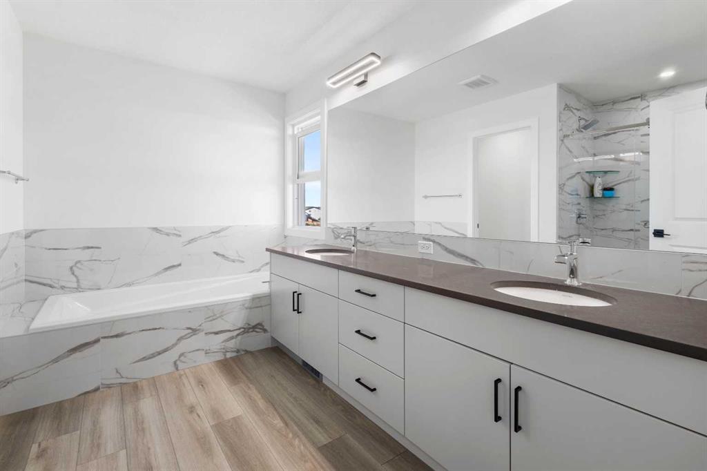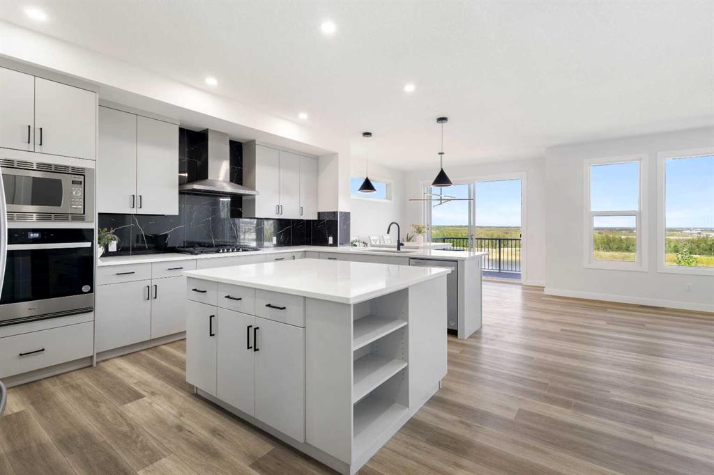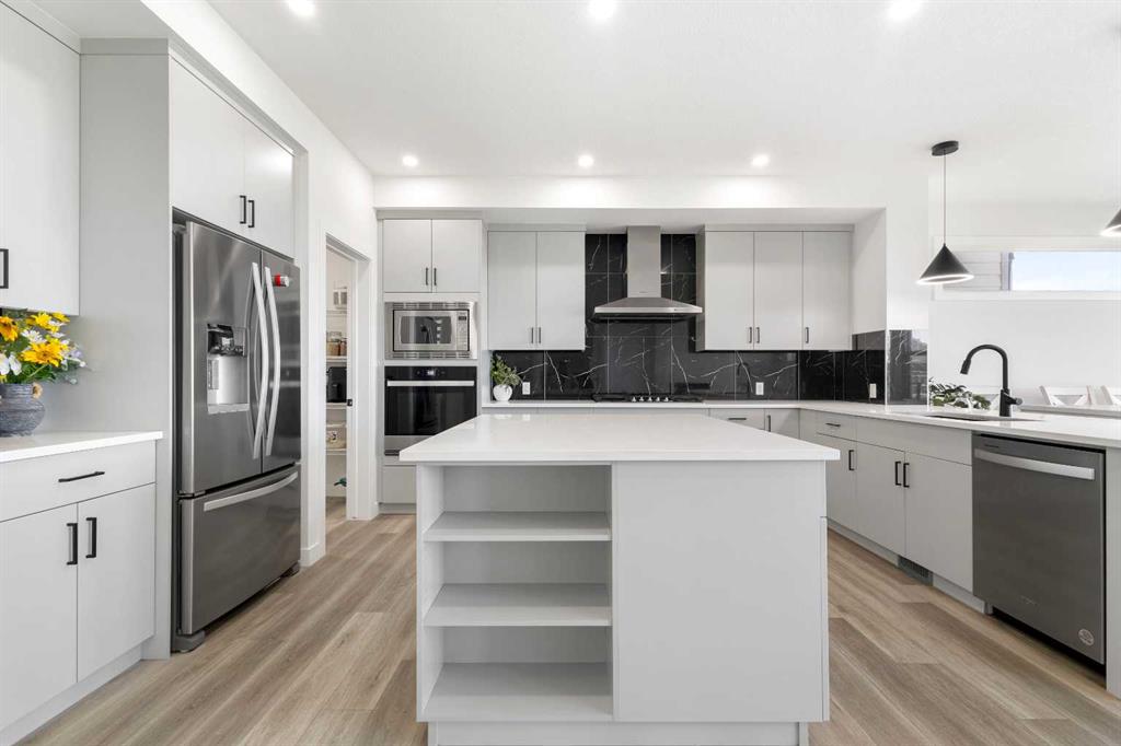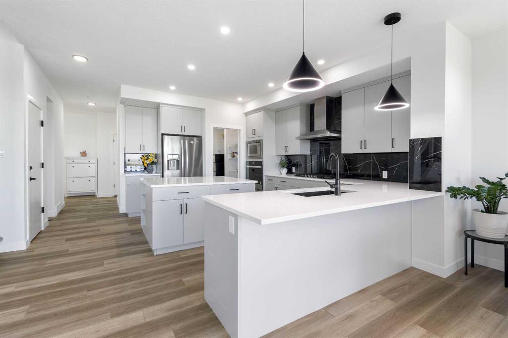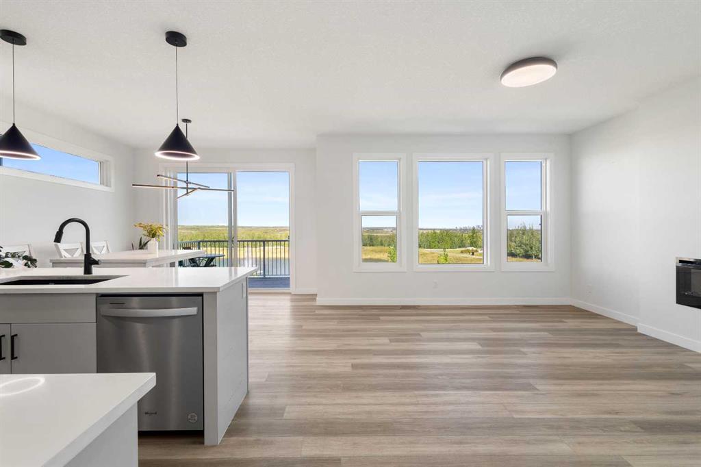 Exceptional Home in Alpine Park! Welcome to 834 Alpine Drive SW, a stunning 2,486 sq. feet. two-storey residence with four bedrooms plus a bonus room and a fully developed legal two-bedroom walkout suite. Perfectly situated on a premium lot backing directly onto a scenic pond with fountain, this home offers unobstructed mountain and downtown skyline views rarely found in Calgary’s Southwest. The main level features a bright and open floor plan with nine-foot ceilings, an office/flex room, and oversized windows framing the breathtaking views. The gourmet kitchen is equipped with built-in stainless steel appliances, a gas range, full-height cabinetry, quartz countertops, and a spacious peninsula with breakfast bar. The great room with a cozy fireplace and the dining area overlook the pond and fountain, creating an ideal setting for everyday living and entertaining. Upstairs, the luxurious primary retreat offers panoramic views and a spa-like ensuite, complemented by three additional bedrooms. A large bonus room and a conveniently located laundry room make family living effortless. All upper-level windows are fitted with premium zebra blinds. The walkout level showcases a beautifully designed legal suite with nine-foot flat ceilings, pot lighting, and expansive windows bringing in natural light and pond views. Enhanced with triple-layer premium soundproofing in ceilings and all the walls, the suite ensures privacy from main floor and each sections of the suite. The walkout also features a full modern kitchen with ceiling-height cabinetry and quartz counters, a bright living area, two well-proportioned bedrooms, a full bathroom, and its own laundry with brand-new washer, dryer, and refrigerator. Attention should be given to the triple-layer premium soundproofing in ceilings and all the walls, the suite can ensure superb privacy from main floor and each section. This space is perfect for extended family or as a valuable rental opportunity. Please check legal suite measurement in supplements. The home has been extensively upgraded with nearly $100,000 in improvements, including a widened driveway, premium appliances, high-quality blinds, and a newly finished basement suite. The exterior offers a newly poured concrete walkway to the backyard, a large patio for outdoor gatherings, a newly installed humidifier system for year-round comfort, and direct backyard access to the pond and walking trails. 834 Alpine Drive SW is truly a modern masterpiece, blending comfort, style, and functionality with some of the city’s most spectacular mountain, downtown, and waterfront views. This is a rare opportunity to own a home with mountain , fountain , downtown views in one and with legal walkout suite in one of Calgary’s most desirable new communities.