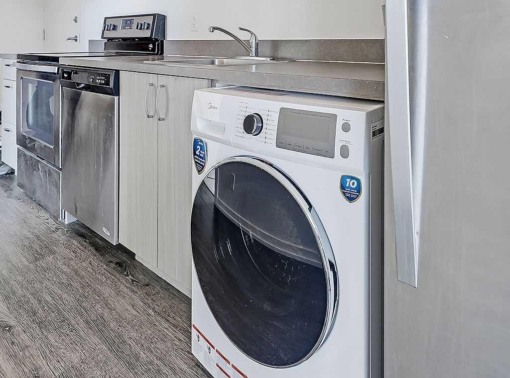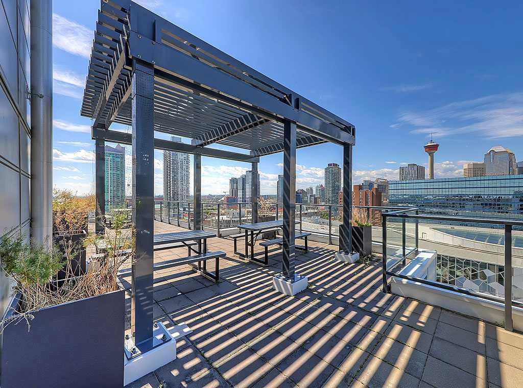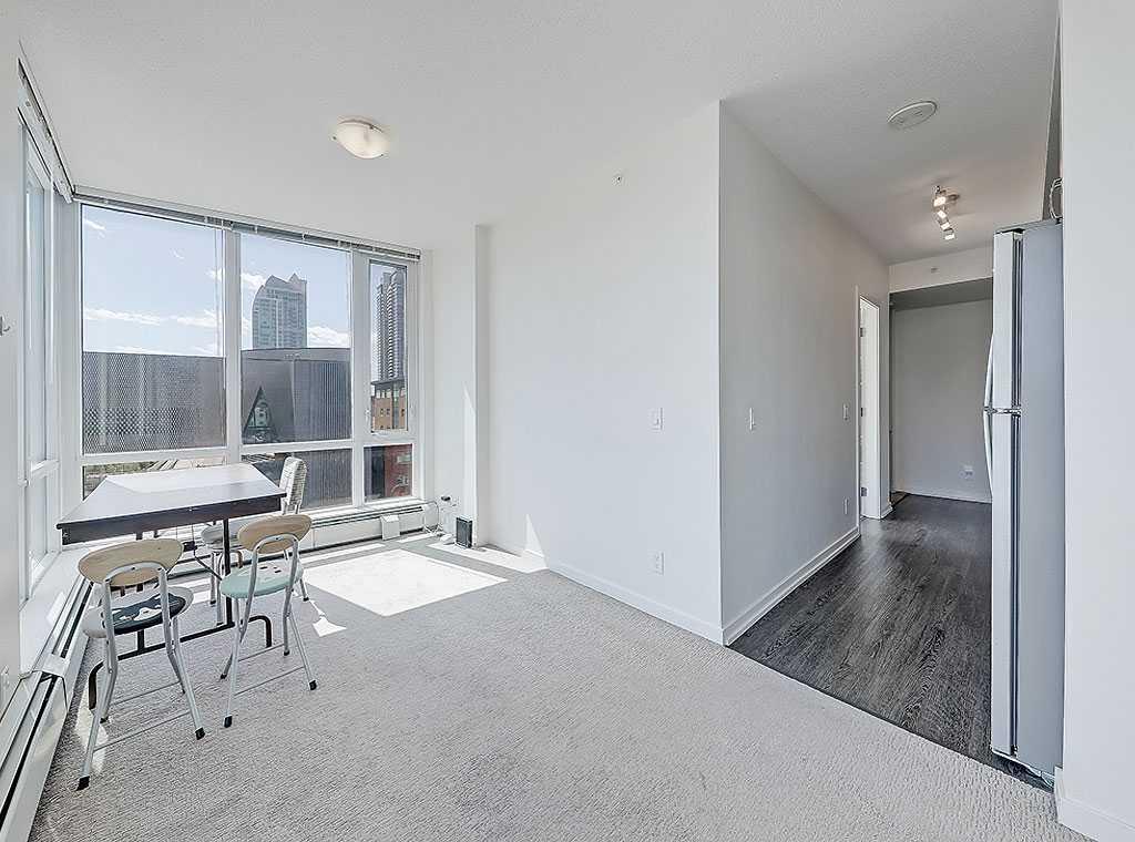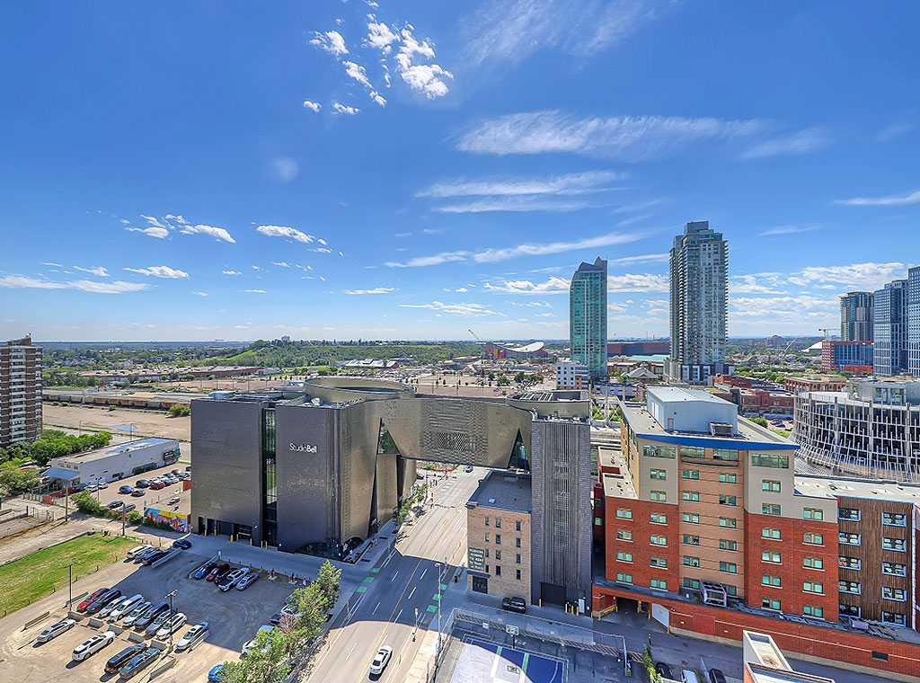 Welcome to N3 – a modern, eco-friendly condo in the heart of Calgary’s vibrant East Village. This stylish 1-bedroom, 1-bathroom home offers a thoughtfully designed open-concept layout, highlighted by floor-to-ceiling windows that flood the space with natural light and showcase sweeping views of the East Village and Stampede Grounds. The contemporary kitchen features sleek cabinetry and stainless steel appliances—perfectly suited for both everyday living and entertaining. The bedroom is designed with comfort and efficiency in mind, while in-suite laundry and a dedicated storage locker add everyday convenience. Residents of N3 enjoy exceptional building amenities, including a fully equipped fitness center, rooftop patio with panoramic city views, bike storage, and inviting communal lounges. With the C-Train, Central Library, Superstore, river pathways, and some of Calgary’s best dining and entertainment just steps from your door, this is downtown living at its finest.