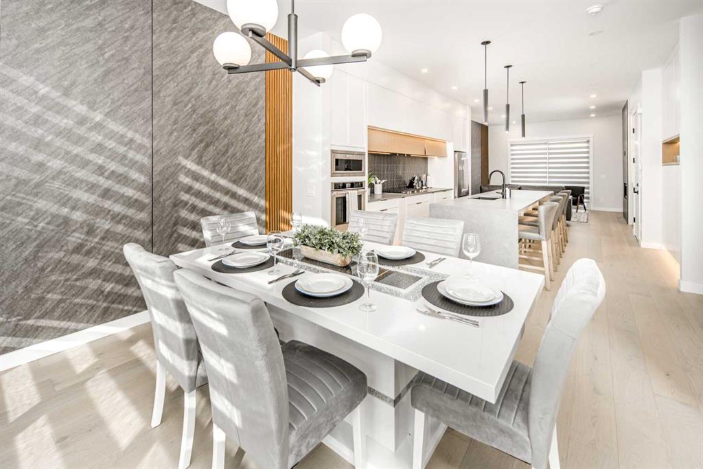 This luxury semi-detached infill combines refined design, thoughtful layout, and strong income potential with a fully legal 2-bedroom basement suite (city approved), making it well-suited for both end users and investors in today’s market. The main floor is designed to feel open and elevated, featuring 10-ft ceilings that enhance natural light flow and create a more spacious, airy environment compared to standard builds. A bright front dining area is framed by large windows, offering a welcoming space for both daily living and entertaining. At the center of the home, the chef-inspired kitchen showcases natural stone countertops, full-height custom cabinetry, a waterfall island with oak accents, LED feature lighting, and a premium appliance package—delivering both durability and a high-end finish. The adjacent living room is anchored by a floor-to-ceiling tiled gas fireplace with custom built-ins, creating a warm yet modern focal point. A dedicated main floor office provides flexibility for working from home, while the rear mudroom with built-in storage offers practical access to the backyard and garage. Upstairs continues with 9-ft ceilings, maintaining a consistent sense of space throughout. A versatile bonus room at the top of the stairs functions well as a secondary lounge, media area, or workspace. The primary suite is elevated by a vaulted ceiling, adding volume and a more luxurious feel to the retreat. The ensuite is thoughtfully designed with a double vanity, soaker tub, glass-enclosed shower, and in-floor heating, delivering everyday comfort during Calgary’s colder seasons. Two additional well-sized bedrooms, a full bathroom, and a conveniently located upper laundry room complete the level. The basement is built with 9-ft ceilings and features a fully finished legal 2-bedroom suite with a separate entrance. Designed to maximize livability, the suite includes a bright open living area, a modern kitchen, and a full bathroom, offering an excellent opportunity for rental income or multi-generational living without compromising comfort. Located in the established inner-city community of Renfrew, this home offers quick access to downtown (approximately 5 minutes) and is within close proximity to the amenities of Bridgeland, including popular cafes, restaurants, and local shops. With convenient connections to Edmonton Trail, 16 Avenue, and Deerfoot Trail, commuting and daily travel are efficient and accessible.
