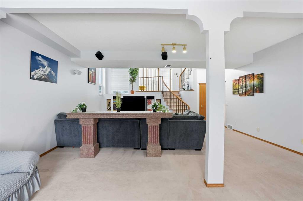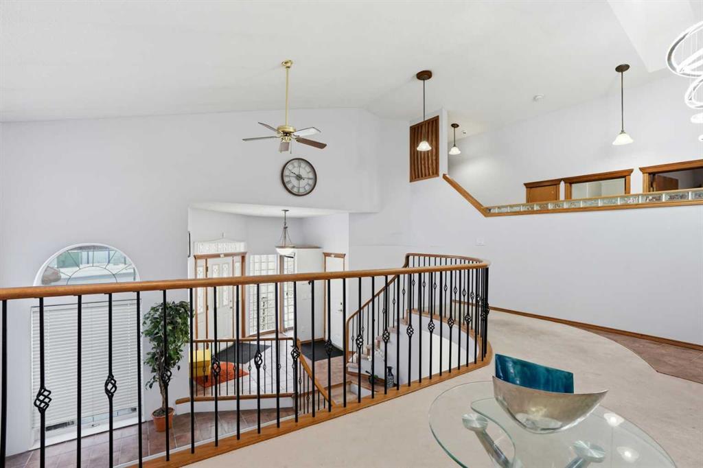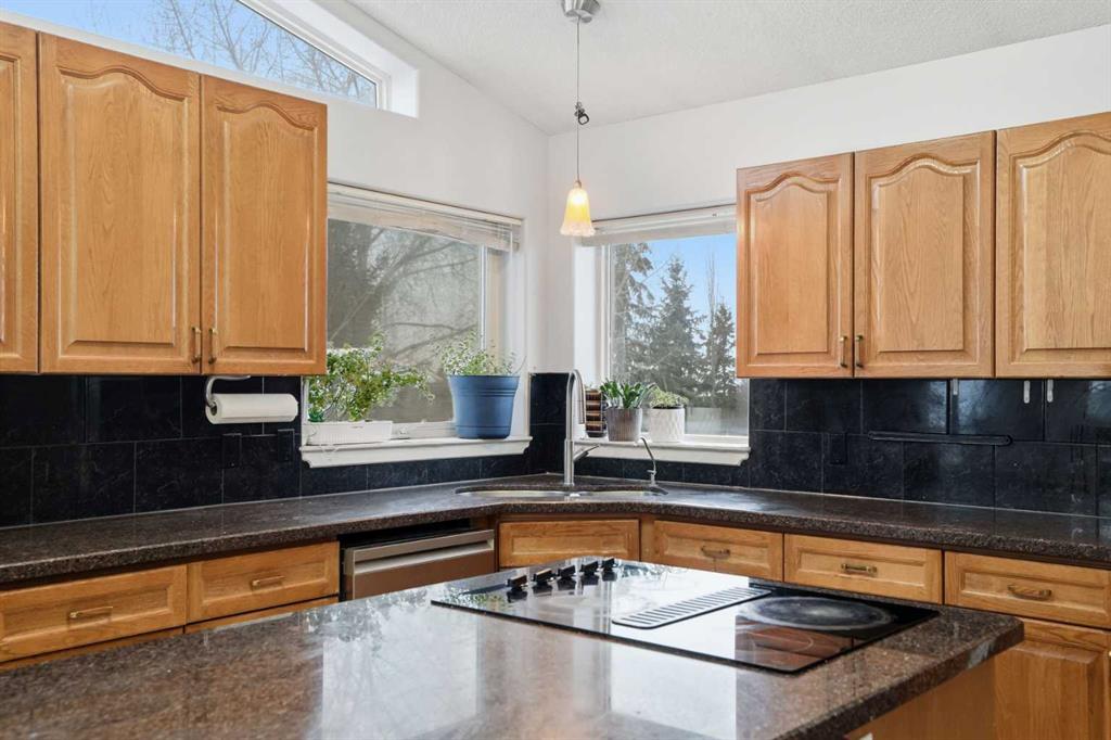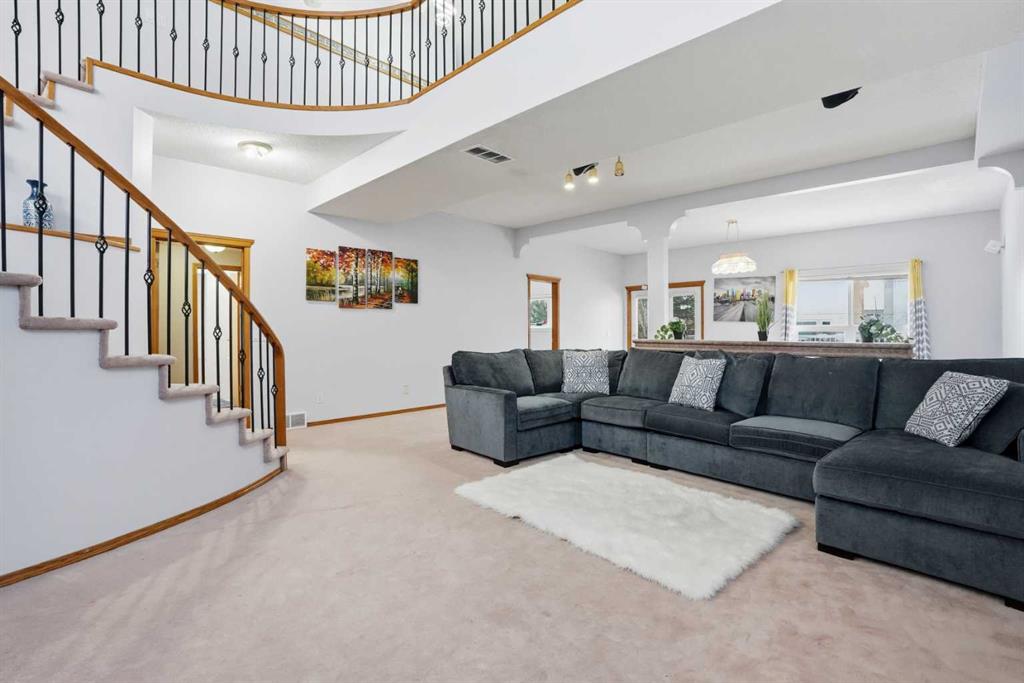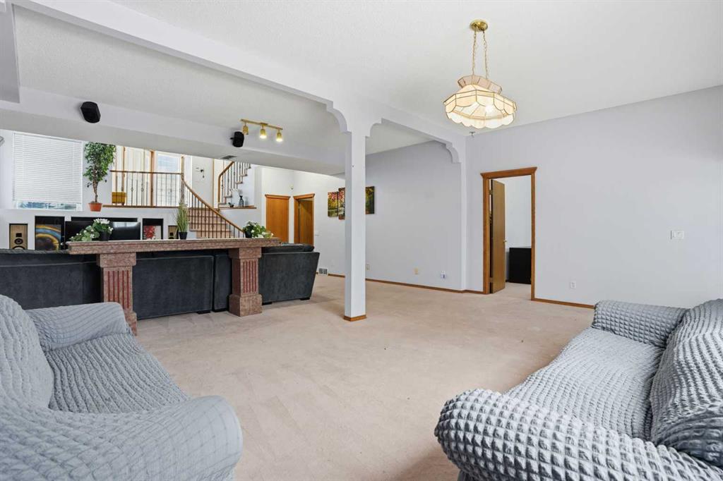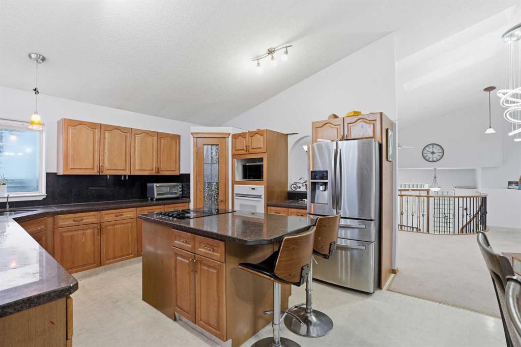 Built to impress, this stunning bi-level home truly has it all — a double attached garage, a walkout basement, and a fantastic location just minutes from the lake. Offering over 2,400 sq ft of living space, this south-facing beauty features 4 bedrooms and 3 full bathrooms, designed to maximize comfort, style, and natural light. Step inside to a grand foyer with a curved feature wall, leading into an open-concept layout with tile flooring, a bright dining area, and a cozy family room complete with a gas fireplace. The oak island kitchen is a chef’s delight, finished with granite countertops, a wine rack, and a spacious walk-in pantry. Vaulted ceilings, large windows, and skylights flood the home with light, creating an airy, inviting atmosphere throughout. Perfect for families, the home offers excellent separation of space with bedrooms thoughtfully spread across three levels — including a private primary suite on its own upper level, separate from the kids' rooms. The fully finished walkout basement is an entertainer’s dream. Featuring 9’ ceilings, two additional bedrooms, a full bathroom, laundry area, and a massive recreation room with an entertainment centre, this space is ideal for gatherings or relaxation. French doors open to a rear wood deck and a fully fenced south-facing backyard. With quick access to major transportation routes and a brand-new high school under construction nearby, this home combines luxury, functionality, and convenience in one exceptional package.