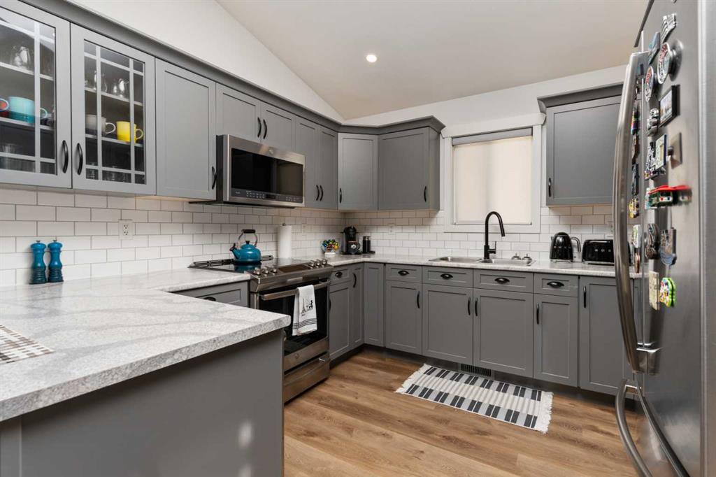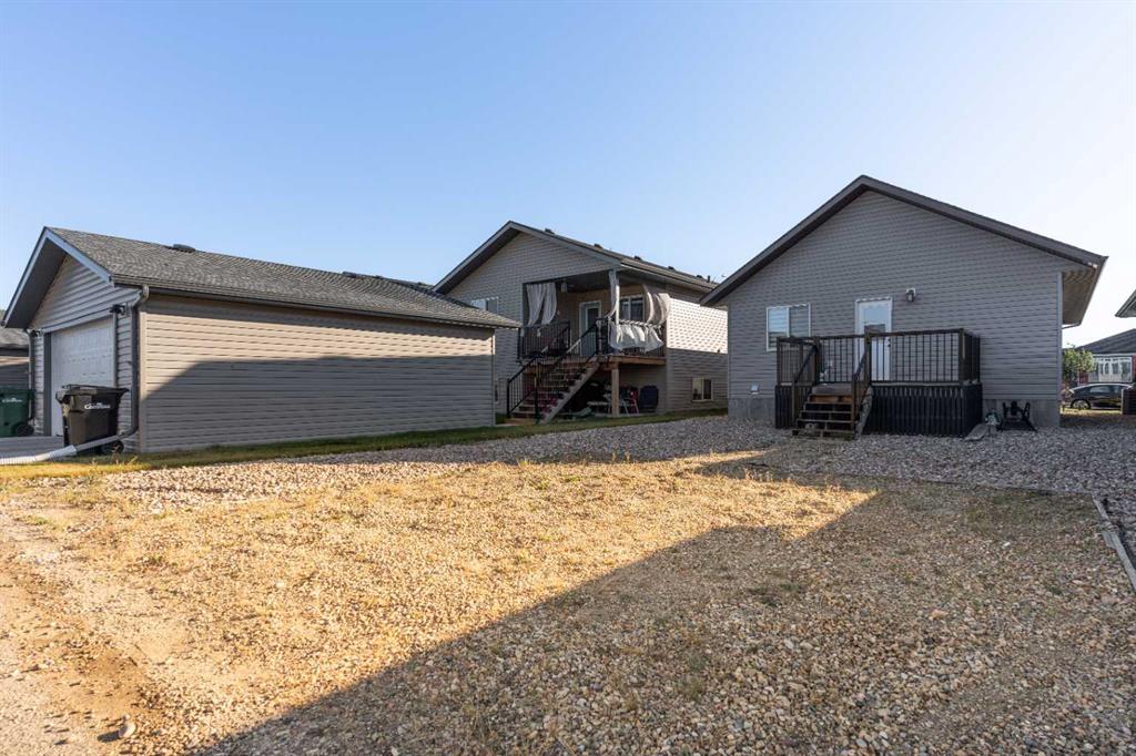 Welcome to this immaculately kept former showhome located in the sought-after WestPark subdivision of Camrose. Designed with care and maintained to perfection, this home offers premium features, modern finishes, and a layout that combines style with everyday functionality. Step into a bright entryway that opens into a vaulted, spacious open-concept living area, perfect for entertaining or relaxing. The trendy kitchen features ample cabinetry, upgraded high-end appliances, and sleek design elements that make cooking a joy. Throughout the home, you’ll find designer light fixtures, custom window coverings, and quality finishes that reflect its original showhome status. The main floor includes two spacious bedrooms, with the primary suite boasting a huge walk-through closet and a massive ensuite complete with a showstopper tiled shower. A second full bathroom, main floor laundry, and plenty of storage round out this highly functional bungalow. Additional highlights include: On-demand Navien hot water system High-efficiency furnace with built-in humidifier Sump pump for added peace of mind The basement is wide open for future development, offering flexible layout options for extra bedrooms, a family room, or a home gym. Outside, you’ll love the large rear deck, low-maintenance yard, and plenty of rear parking—with enough space for RV parking or to build a garage with convenient back alley access. This home truly is the complete package—stylish, practical, and move-in ready. Come see for yourself—this one won’t last long!