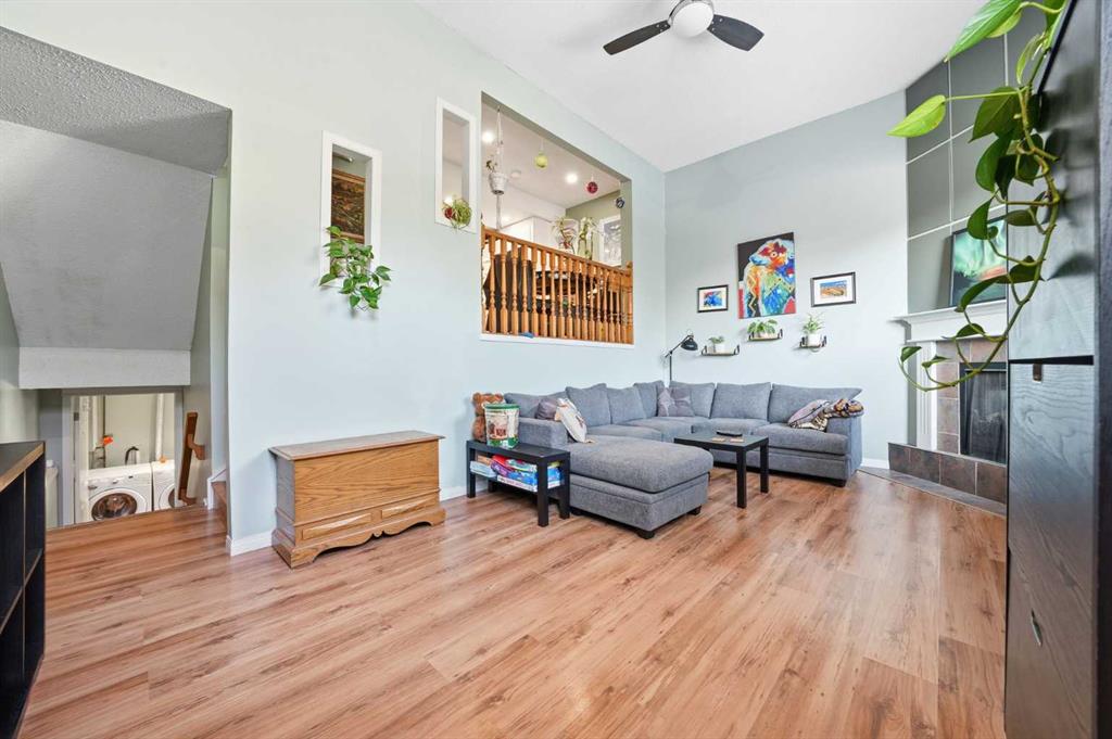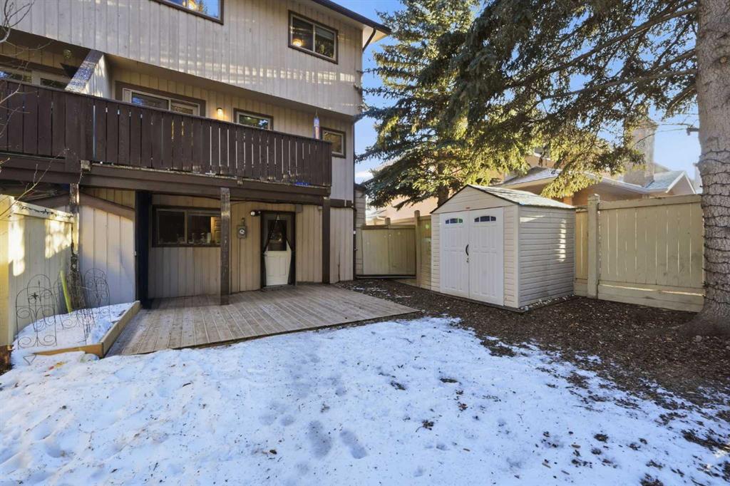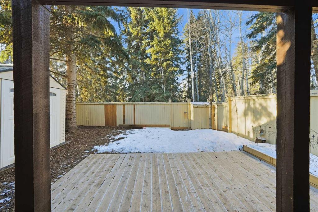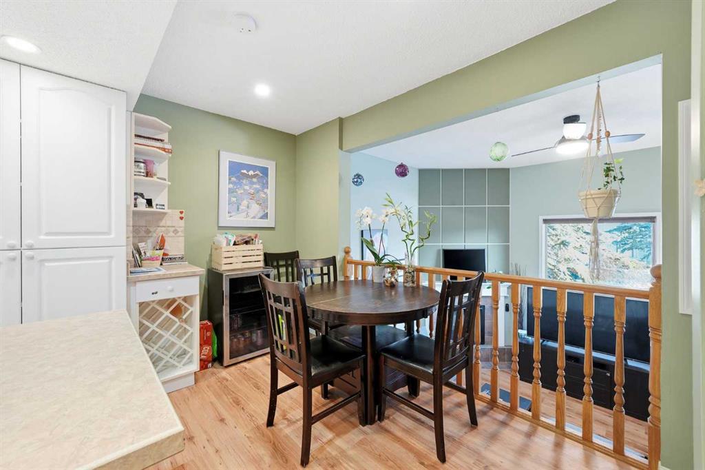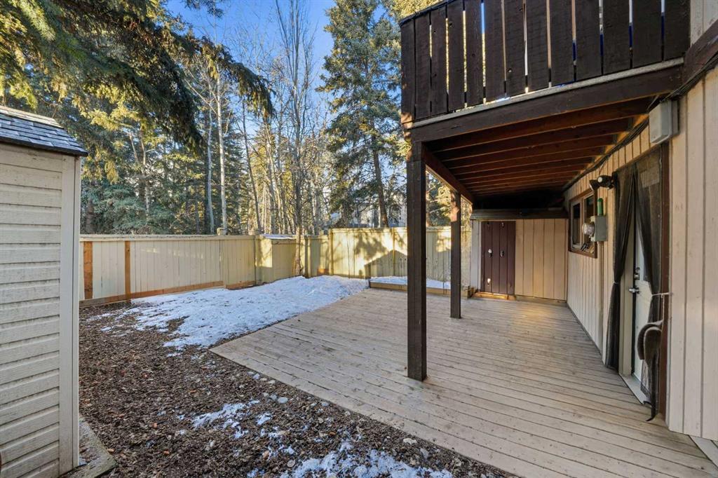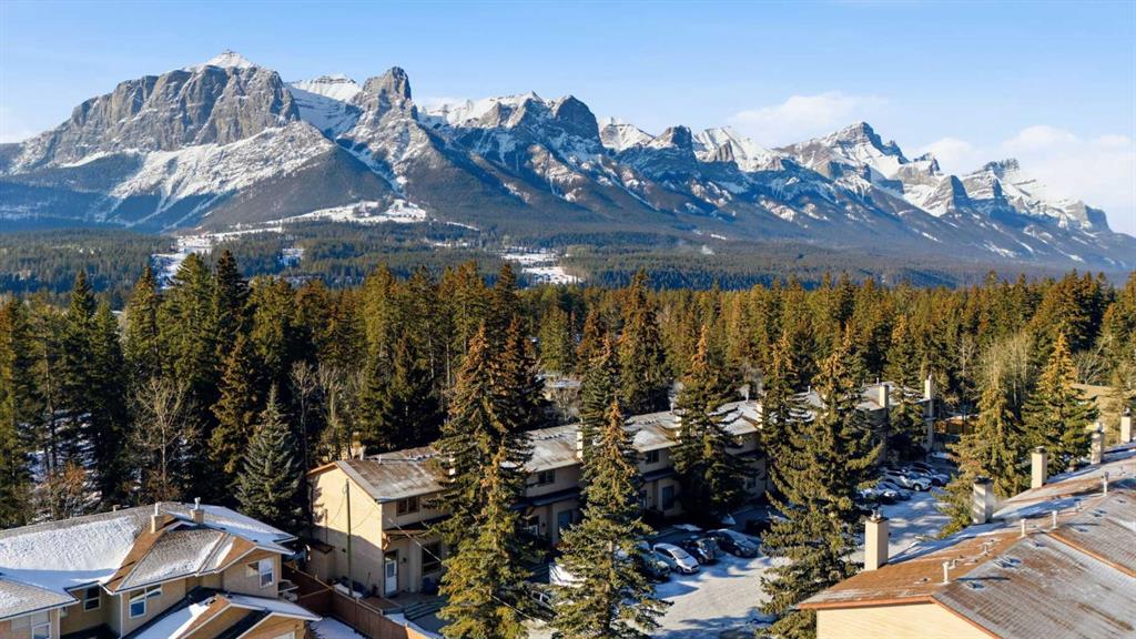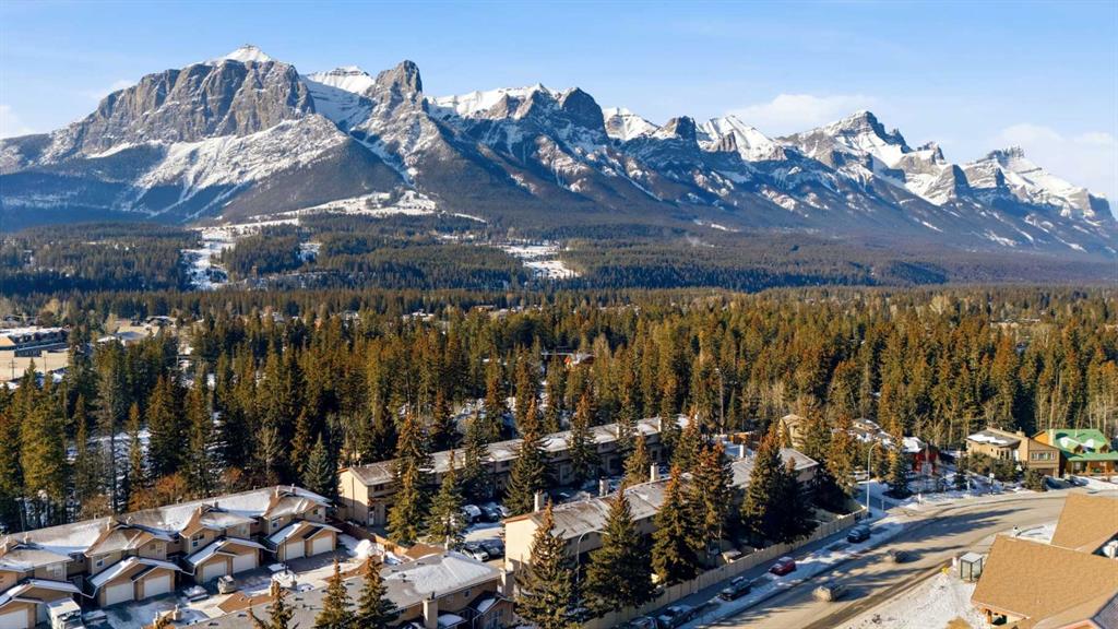 Set against a peaceful backdrop of trees, trails, and flowing water, this beautifully maintained end-unit walkout townhouse is tucked into a quiet pocket of Canmore and offers space, privacy, and a true connection to the outdoors — all while being walking distance to Safeway, downtown shops, restaurants, and other major amenities just across the street. With 4 bedrooms and 2.5 bathrooms, the layout provides flexibility for full-time living, guests, or a mountain retreat. The home opens into a warm and welcoming living room with vaulted ceilings and a corner fireplace, creating an ideal gathering space for movie nights or evenings by the fire. Just a few steps up, the bright, open kitchen and dining area offers ample cabinetry, generous prep space, and a centre island perfect for casual meals or entertaining. Upstairs, the primary bedroom features dual closets and beautiful mountain views, while two additional upper-level bedrooms overlook the wooded area and nearby creek, providing a peaceful, natural setting just steps from the home. The walkout lower level includes full-sized laundry, excellent storage, and a second primary bedroom with a 3-piece ensuite, ideal for guests or extended family. Additional highlights include extensive in-suite storage with a crawl space for skis, bikes, and hiking gear, two assigned parking stalls right out front, and the convenience of snow removal included in the condo fees. Enjoy morning coffee on the northeast-facing front patio, unwind with afternoon sun on the southwest-facing balcony, or relax in the private, fully fenced backyard backing onto green space and walking trails. A rare opportunity to enjoy a walkable Canmore lifestyle without sacrificing privacy or connection to nature — close to everything, yet surrounded by it. Book your private viewing today.