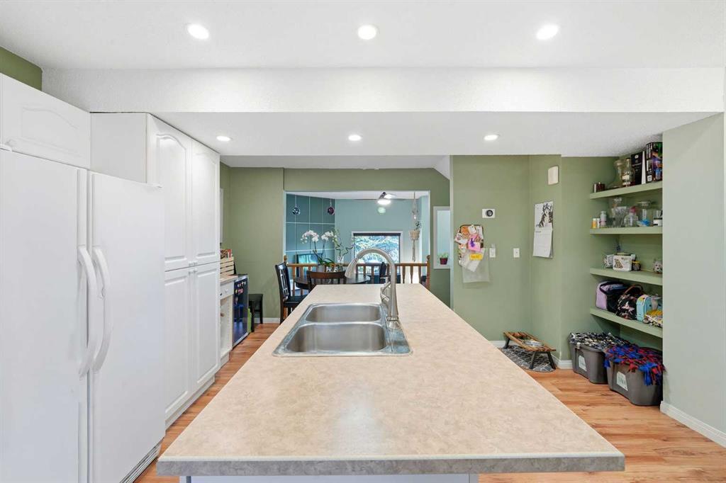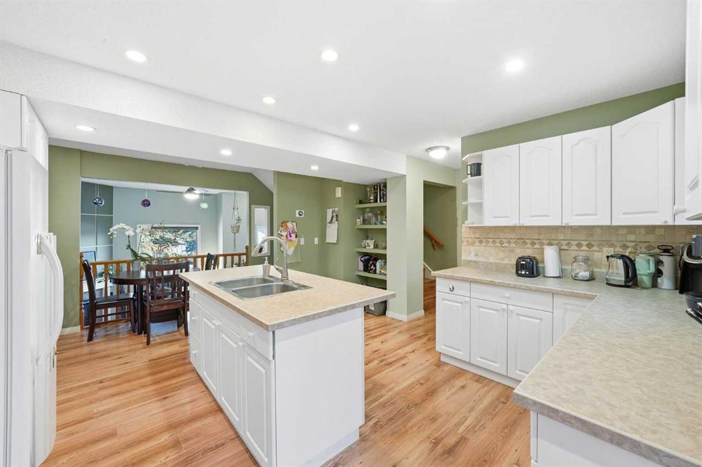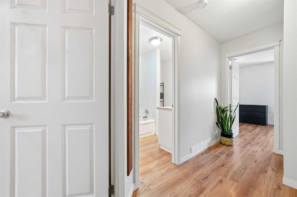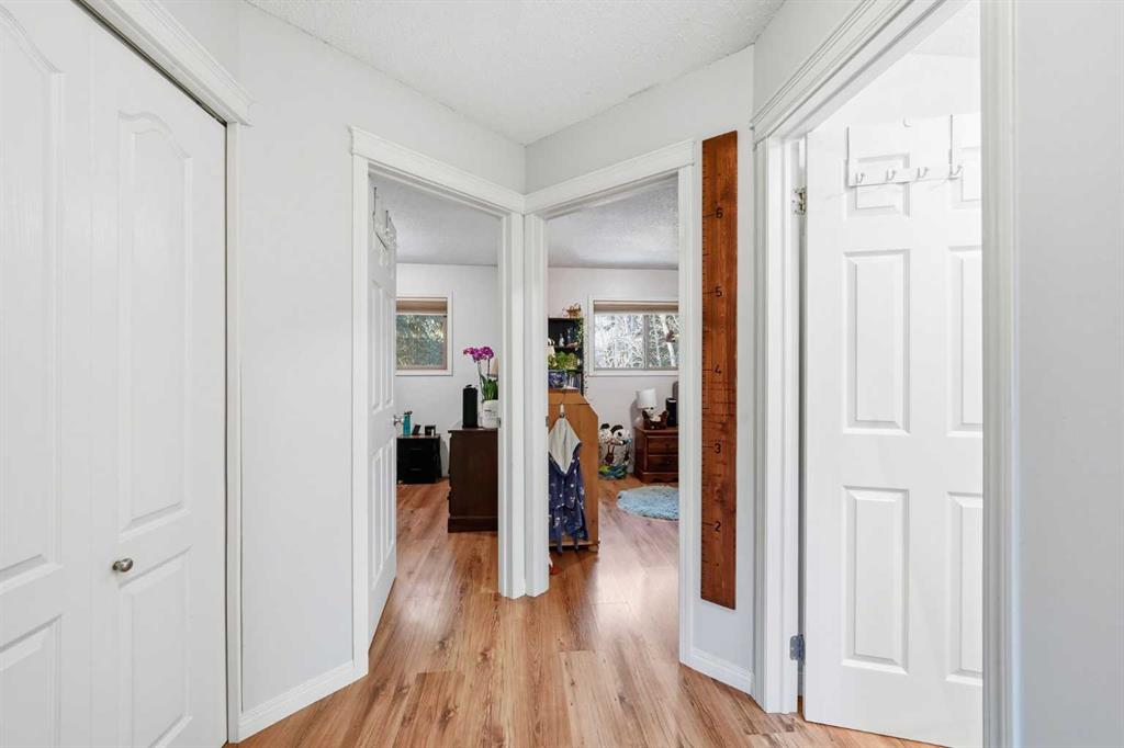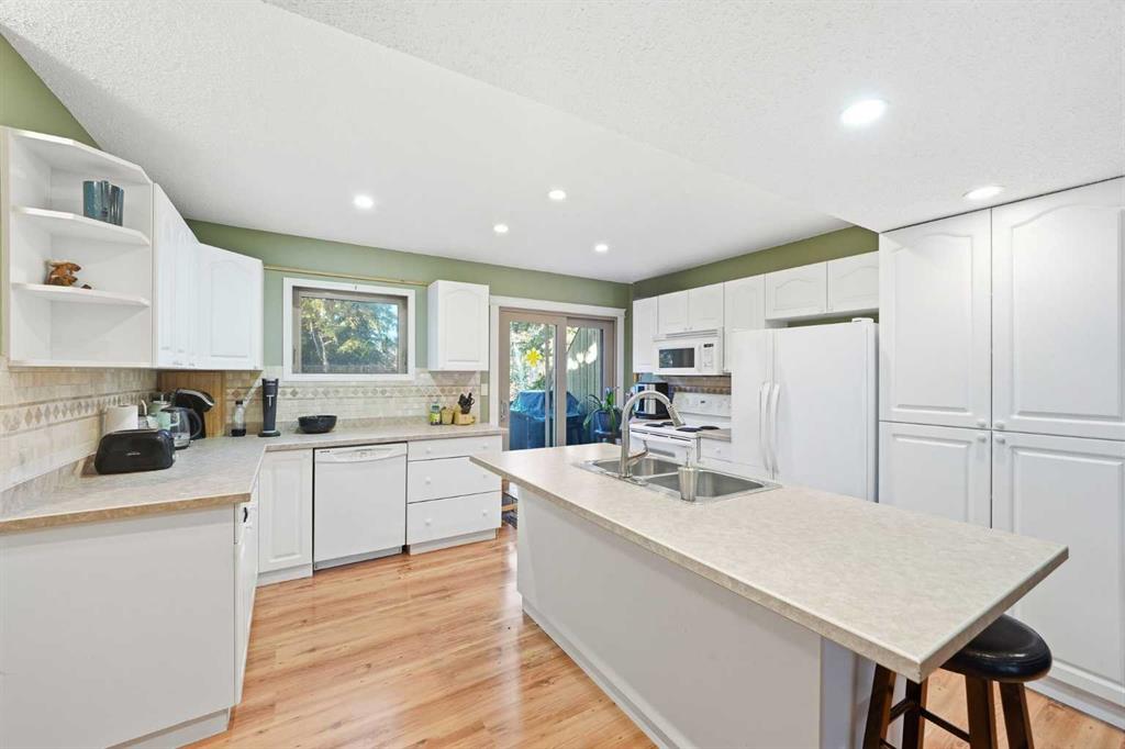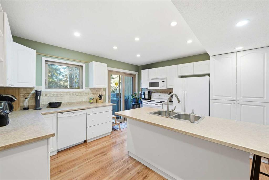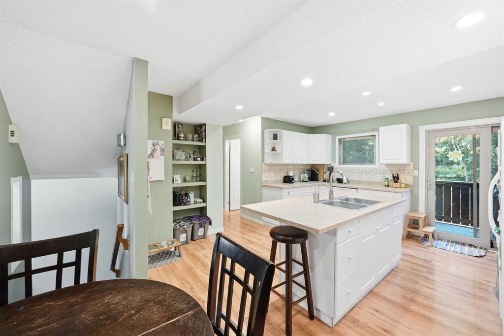 Set against a peaceful backdrop of trees, trails, and flowing water, this beautifully maintained end-unit walkout townhouse is tucked into a quiet pocket of Canmore and offers space, privacy, and a true connection to the outdoors — all while being walking distance to Safeway, downtown shops, restaurants, and other major amenities just across the street. With 4 bedrooms and 2.5 bathrooms, the layout provides flexibility for full-time living, guests, or a mountain retreat. The home opens into a warm and welcoming living room with vaulted ceilings and a corner fireplace, creating an ideal gathering space for movie nights or evenings by the fire. Just a few steps up, the bright, open kitchen and dining area offers ample cabinetry, generous prep space, and a centre island perfect for casual meals or entertaining. Upstairs, the primary bedroom features dual closets and beautiful mountain views, while two additional upper-level bedrooms overlook the wooded area and nearby creek, providing a peaceful, natural setting just steps from the home. The walkout lower level includes full-sized laundry, excellent storage, and a second primary bedroom with a 3-piece ensuite, ideal for guests or extended family. Additional highlights include extensive in-suite storage with a crawl space for skis, bikes, and hiking gear, two assigned parking stalls right out front, and the convenience of snow removal included in the condo fees. Enjoy morning coffee on the northeast-facing front patio, unwind with afternoon sun on the southwest-facing balcony, or relax in the private, fully fenced backyard backing onto green space and walking trails. A rare opportunity to enjoy a walkable Canmore lifestyle without sacrificing privacy or connection to nature — close to everything, yet surrounded by it. Book your private viewing today.