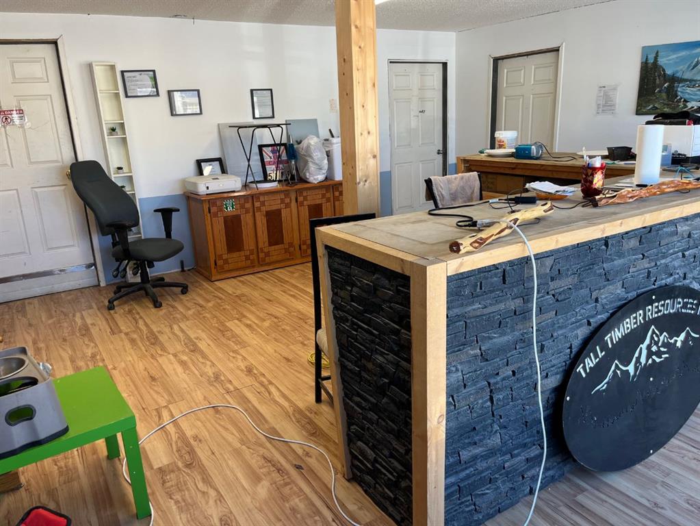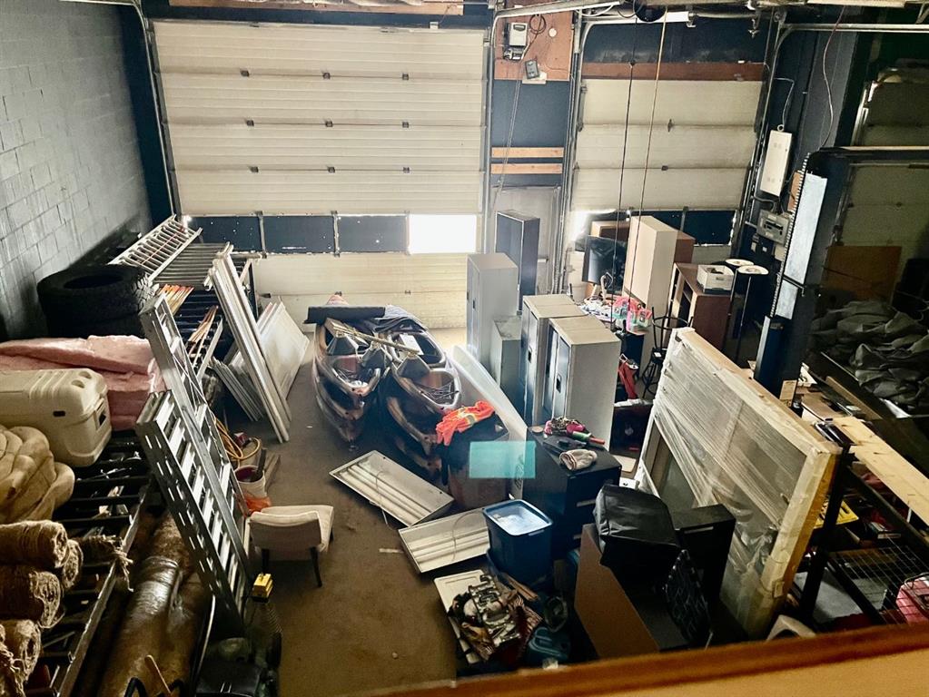 Commercial building on main street in Caroline. Lots of opportunity here with the front being all retail space and windows visible to main street. The back of the building houses 3 big bays 17X59, 12X43, 19X34 with over head doors being 12 and 14 feet. This building has a mezzanine (45X50) with room for storage, office space and accommodations. The front half is currently set-up as office space, kitchen and washroom. Beautiful updated board-room or office space with gas fireplace is an ideal space. In the loft area there is a bedroom space, 3 office spaces and 2 lounging areas. Some recent improvements include; paint, laminate flooring, furnace, a/c, electrical panel, updated washrooms (3-pce. w. shower & 2-pce.), sound proof insulation above the board room. Lots of room for many types of businesses. The building was used for a delivery business and mechanics shop.