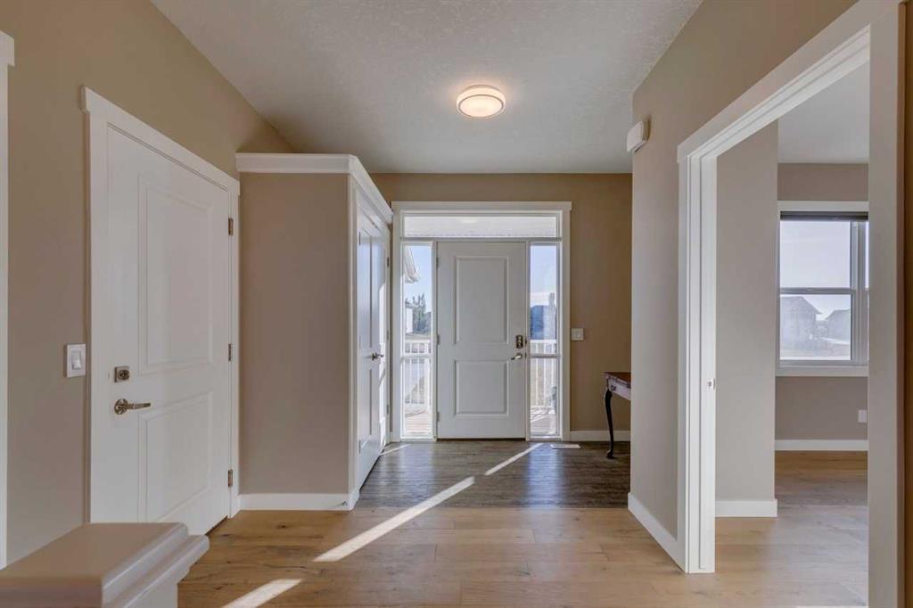 Beautifully maintained walk-out bungalow located in a quiet cul-de-sac in Speargrass, backing onto the golf course with mountain and sunset views. The kitchen features a walk-in pantry, modern cabinetry with under-cabinet lighting, quartz countertops, and a large centre island that opens to a covered outdoor living space. The primary bedroom includes a five-piece ensuite with soaking tub, wall niche, separate shower, dual sinks with backlit mirrors, and a walk-in closet with automatic lighting and direct access to the laundry room. A second bedroom, which can also serve as a home office, is located on this level along with a guest bathroom and access to the oversized 25x24 double garage. The Walk-Out Basement finished in 2024 features an additional bedroom, another full bath with 3 person steam room, gym, bar/area and storage with potential for a 4th bedroom development. Exterior highlights include an extended driveway and the opportunity to landscape the backyard to your preference. Additional features include central air conditioning and automated window blinds on remote. Conveniently located approximately 40 minutes from Calgary’s South Health Campus, this home combines comfort, functionality, and a scenic setting.