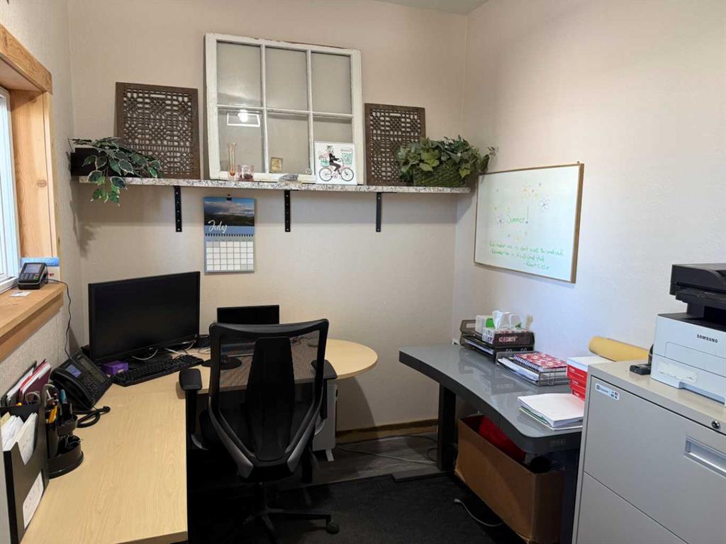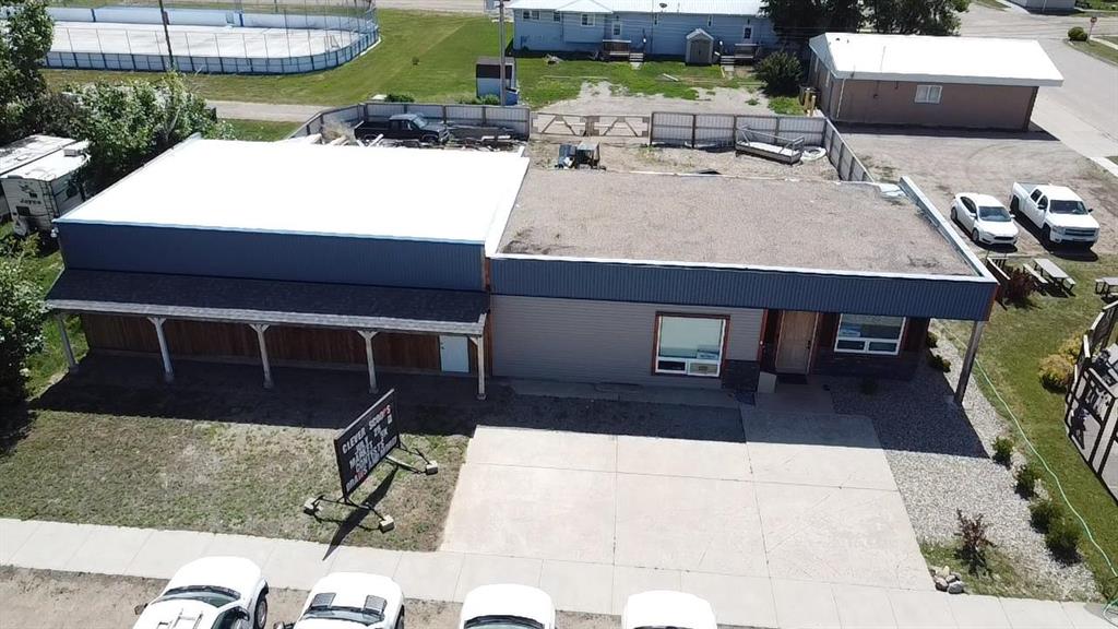 Opportunity knocks in the Village of Champion! This versatile commercial property is located at 208 Main Street and offers a mix of updated space and vintage charm. The original building, estimated to have been constructed in the 1950s, features a spacious showroom entrance, reception office, two-piece bathroom, utility room, cubicle-style office area, and a kitchenette. The ceiling height in this section is just over 10 feet, and it's currently heated by a high-efficiency natural gas furnace. (The original electric heating units are still in place should someone wish to convert back.) The roof is tar and gravel. In 2023, a large addition was constructed at the rear of the building, creating a wood-frame storage/warehouse area with approximately 13-foot-high ceilings and a 10-foot overhead door—perfect for deliveries, inventory, or workshop space. This section is not currently heated, but natural gas is available if future heating is desired. The property also includes a fenced rear yard with ample outdoor storage space. Whether you're looking for office, retail, warehouse, or a combination of uses, this flexible space is ready to support your vision! The Village of Champion is ideally situated close to popular recreational destinations including Little Bow Provincial Park, McGregor Lake, and Twin Valley Reservoir—perfect for boating, camping, and outdoor adventure enthusiasts. It’s also just a 45-minute drive north of the City of Lethbridge, offering both convenience and access to urban amenities.