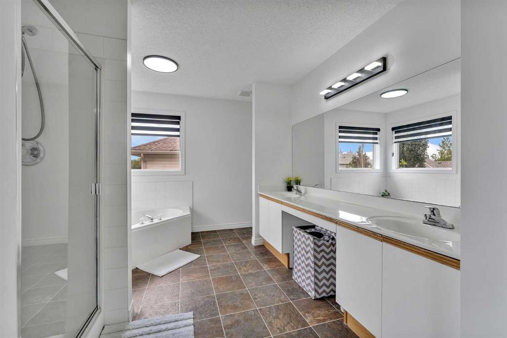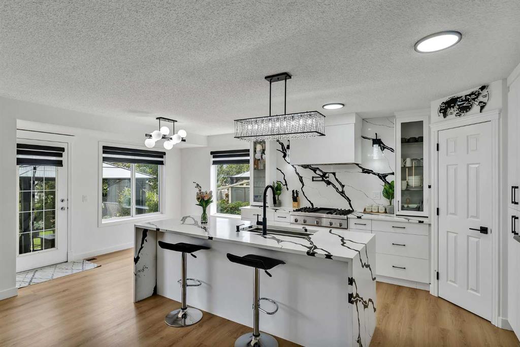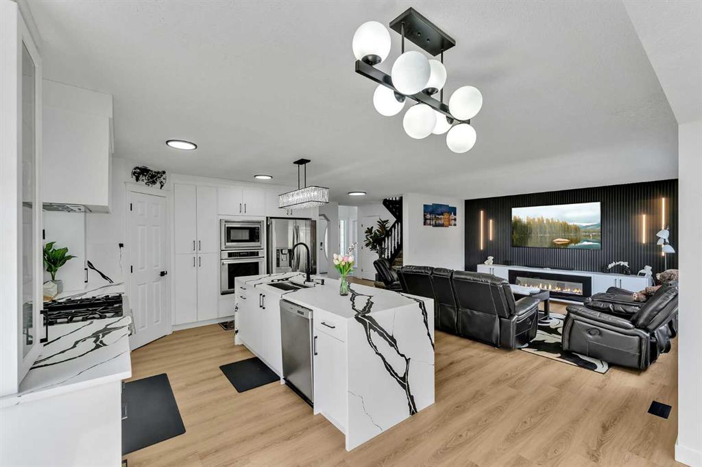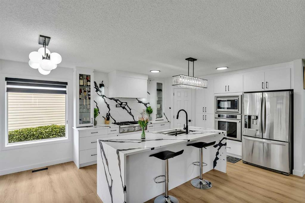 AMAZING RENOVATED KITCHEN| NEW FLOORING & PAINT|LOVELY BACKYARD| This beautifully updated home offers the perfect blend of modern living and outdoor tranquility, located in a mature, family-friendly neighborhood with scenic landscaping and mature trees. Just minutes away from Chestermere Lake, schools, shopping plazas and golf course, it offers unbeatable convenience for all lifestyles. Step inside to discover a chef’s dream kitchen, featuring high-end built-in appliances, sleek countertops, and plenty of space for meal prep and entertaining. The main level boasts an inviting living room with a stunning feature wall and an electric fireplace, creating a cozy ambiance. The spacious bonus room on the upper level is ideal for family movie nights or a home office. Upstairs, you’ll find 3 well-sized bedrooms including a luxurious primary suite with 5pc ensuite bath, plus an additional full bath for the family. The home’s thoughtful renovations also include new flooring and fresh paint throughout. The illegal basement suite is a hidden gem with a separate entrance, huge family room, 1 bedroom, 1 bathroom, and its own kitchen – perfect for guests or as a rental opportunity. Enjoy the luxury of air conditioning during summer months, and spend your evenings relaxing in the private, landscaped backyard, where trees and greenery provide a peaceful retreat. This home is truly a must-see. Don't miss your chance to call this stunning Chestermere property yours!