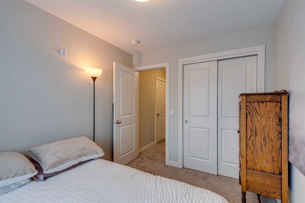 Welcome to 2103 Jumping Pound Common in Cochrane's sought-after Jumping Pound Ridge, where LOW CONDO FEES deliver exceptional value for modern, carefree living! Nestled just steps from Jumpingpound Creek and scenic walking trails, this impeccably designed 2017-built three-storey townhouse spans 1,280 sq ft of bright, inviting space, boasting two generous bedrooms, one full bath, one half bath, and a flexible den on the main level—perfect for a home office, workout area, or guest retreat. Ascend to the open-concept second floor, where a gourmet kitchen with sleek granite countertops, ample cabinetry, and premium appliances flows seamlessly into the living area, illuminated by abundant natural light and leading to a spacious balcony with gas line for effortless BBQs and outdoor enjoyment. Upstairs, the primary bedroom accommodates a king-size bed with ease, complemented by a second bedroom, full bathroom featuring a deep soaker tub, and convenient in-unit laundry. Finished with an insulated attached garage offering extra storage, this well-cared-for gem provides year-round appeal— from summer adventures along the Bow River to winter fun on Cochrane's top sledding hill, all near playgrounds, schools, shops, and quick access to Calgary. Seize this all-season haven—call a Realtor now to schedule a viewing!