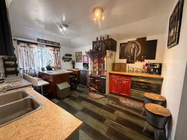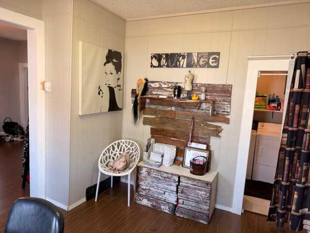 Excellent Investment property or starter home. This charming 3 bed 1 bath home has had some extensive work over the past few years. New energy efficient furnace (2016) some New windows ( 2016), New Hot water tank (2020), New flooring in kitchen (2020) New flooring though out the rest of the home ( 2018) New oak cabinets in kitchen (2020) New shingles on the south side of the home summer of 2025. The large kitchen has lots of space for cooking as well as entertaining. Huge dinning room and living room area and the home also boast main floor laundry. The laundry room has lots of room for storage as well as hanging clothes to dry. Upstairs is home to 3 large bedrooms with large walk in closets in two of the the rooms. The yard is nicely landscaped with trees and lawn. A large shed in the back yard provides ample storage. Lots of space in the backyard to build a garage. Hardisty is a thriving, welcoming community with so much to offer such as down town shopping, a wonderful golf course and walking trails to enjoy the beautiful scenery of the Battle River and Hardisty Lake.
