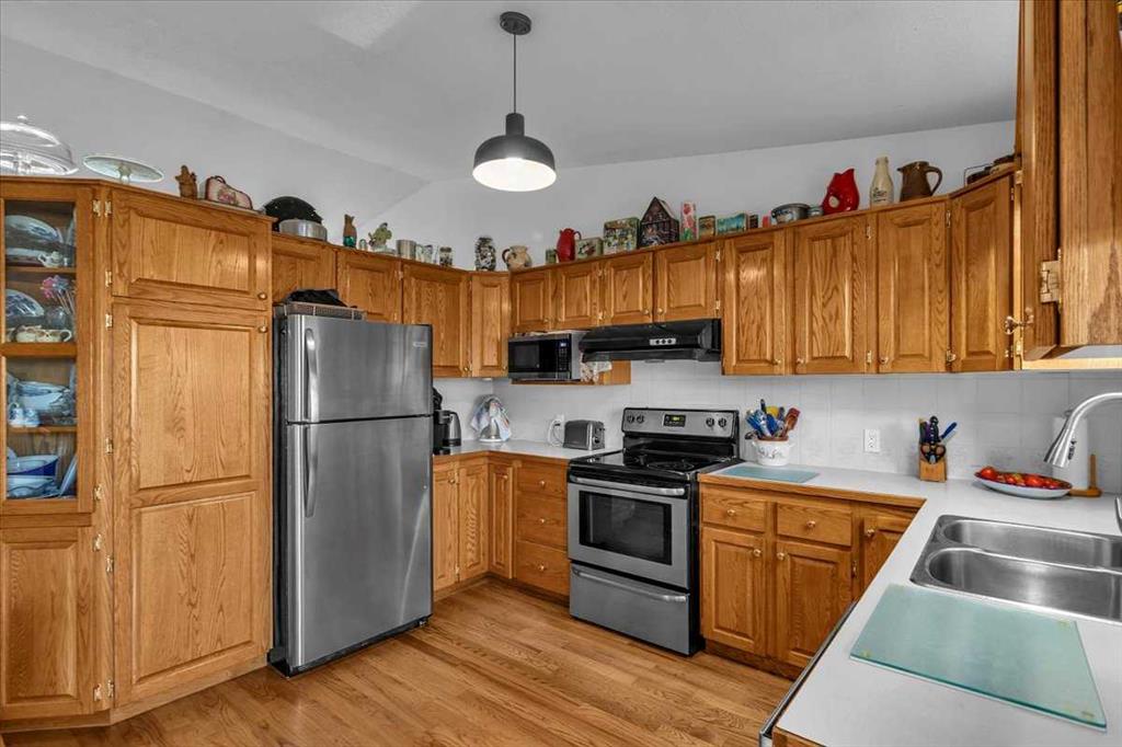 This home is ideal for a large family located in the heart of High River. A 4-Level Split with 5 BDRM | 2 Full Baths | Large Kitchen | Spacious Living Room| Flex Room | Nice Size Garage | Large West Facing Backyard. The front entrance is very inviting with it’s amazing HARDWOOD FLOORS on main. Here we have a spacious living room for gatherings or family game night. The Wood fireplace has been inspected and cleaned yearly. On a frosty winter night enjoy the warmth and the sounds of crackling wood. GOLDEN OAK CABINETRY for all your special dishes or your favourite snacks. Lots of counterspace to prepare for a huge family gathering. All stainless-steel appliances with a newer refrigerator. Bright NEW PATIO DOORS with NEW SIDE WINDOWSfor extra natural light. Throughout the home many of the light fixtures have been upgraded. Some new vinyl windows. Let us head-up to the upper floor where you will find a 4-piece bathroom that connects to the primary bedroom. The primary bedroom is spacious and has a walk-in closet. Luxury Vinyl Plank flooring on upper level and 3rd level. Also, on this level you will find two other nice sized bedrooms. Now let us make our way to the 3rd level where you will find a 3-piece bathroom, laundry room with plenty of space, access to the garage. Plus, two more additional bedrooms if you desired. Wait there is more we have our 4th level where you will find the utility room that connects to a crawl space for that extra storage. That is right extra storage. We are not done yet; you will also find a family room for movie night or great for sleepovers. Surprise there is an additional FLEX ROOM!The basement has carpet flooring in the family room and flex room. Ideal garage as you have two outside man doors as well as access from the 3rd level. “MAN CAVE”! For those who love to garden look no further! Great gardening beds for vegetables or flowers! Enjoy your summers under the gazebos and watch all the beautiful birds while smelling the aroma of the flowers. Your new home awaits you! Book a Showing today!