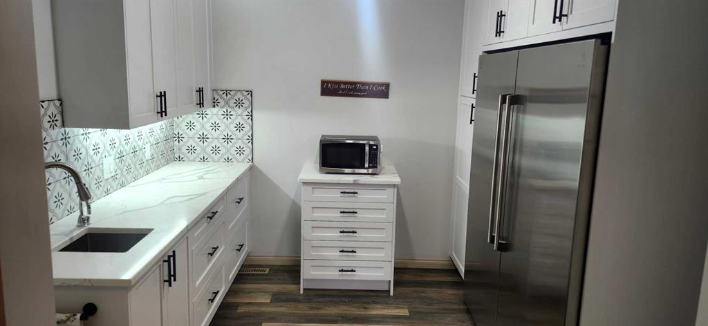 Wanting to escape the hustle of Calgary but still enjoy the charm of historic small town living, only 25 min to the city? Then check out this stunning executive 4 bed/3.5 bath two storey walk out, w/triple attached garage, backing onto a 12 acre pond & walking trails in the beautiful community of Montrose in High River! The curb appeal is the first thing to catch your eye, featuring easy care stucco & stone exterior, new overhead garage door & new contemporary front door. Upon entering the welcoming foyer, you'll love the soaring ceilings & modern farmhouse wall treatment. The generous open concept living/dining area are bathed in light from the wall of windows overlooking the serene pond. The living room features a beautiful gas fireplace with custom millwork mantle & facade, ideal for entertaining. The dining area can easily seat 8-10 people for large family dinners. Through the sliders in the dining area you'll find a large deck with space for BBQing, dining & relaxing, as well as easy access to the tiered level of the deck w/enclosed under stairs storage & fully landscaped backyard. The newly renovated kitchen features new appliances, all white cabinetry, and a large island with quartz countertop, Bosch dishwasher, built in storage and glass front doors to display your beautiful china. The induction cooktop & convection oven, range hood, granite counters & corner pantry are perfect for the gourmet in your home. The chef's kiss?? A new full butler's pantry was added in 2024, featuring commercial grade Kitchen Aid fridge & stand up freezer, loads of cabinetry, quartz countertop & additional sink w/hot water on demand tap for the tea lover. The powder room & laundry/mudroom complete the main floor. The triple attached & heated garage is ideal for cold winters and has a ton of workspace for those who like to tinker. Upstairs you'll love the huge bonus room for movie nights with the family. The large primary suite features lots of natural light & generous walk in closet. The 5 pc ensuite features a double vanity, corner soaker tub and large one piece shower. Two good sized bedrooms & 4 pc upstairs bath w/additional linen storage complete the upper floor. The fully finished walk out lower level features an additional guest bedroom, 3 pc bath w/large glassed in shower & heated floor, a large rec room w/warm cork floors, large windows & small gas stove to keep the chill out. Outside is the peaceful level backyard features a large brick patio & BBQ gas line to set up a fire table on chilly evenings. There is plenty of grassy area for kids & fur babies alike, as well as a 12' side lot for easy access. The beautiful pond & walking trails are right out your back gate. The lovely community of Montrose welcomes you in with an original farmstead at the entrance to the community, w/large barn for event rentals & a huge community garden, yet is an easy walk or drive to shopping, restaurants and historic downtown High River. Don't miss this one!! Book a showing today!