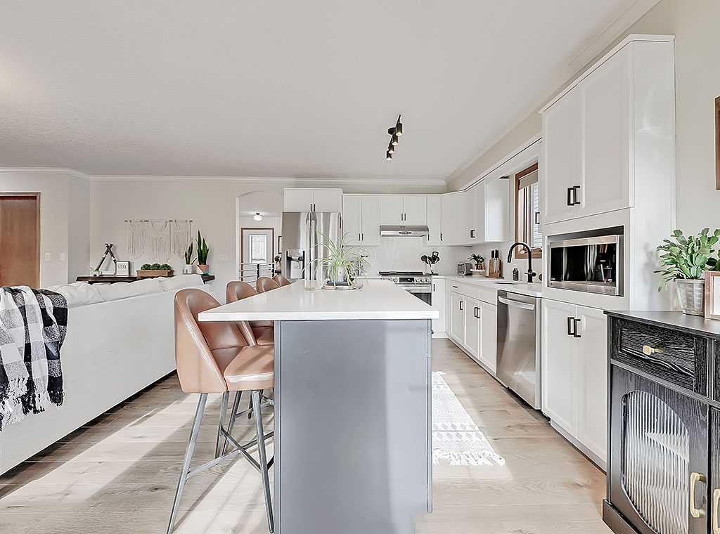 Charming Bungalow on a Quiet Street in Southeast High River. Welcome to this wonderful 4-bedroom home tucked away on a peaceful street located near schools, shopping and walking trails. This beautifully maintained home offers comfort, style, and thoughtful updates throughout. The main floor features a bright and inviting living room with a cozy gas fireplace and an adjacent dining area—perfect for family gatherings. The updated kitchen boasts new countertops, modern vinyl plank flooring, refreshed cabinetry, and a large island that provides ample storage and workspace. The adjoining family room is spacious and seamlessly connected to the kitchen, creating an ideal layout for everyday living and entertaining. The primary bedroom includes a walk-in closet and a renovated 3-piece ensuite, while a second bedroom and convenient main-floor laundry complete the level. Downstairs, the fully finished basement offers a large rec room with a second gas fireplace, two additional bedrooms, and another 3-piece bathroom—making it an ideal space for guests, teens, or extended family. Outside, you’ll enjoy a sunny south-facing deck, perfect for summer BBQs, as well as RV parking for your convenience. Don’t miss your chance to view this fantastic home—call today to schedule your private showing!