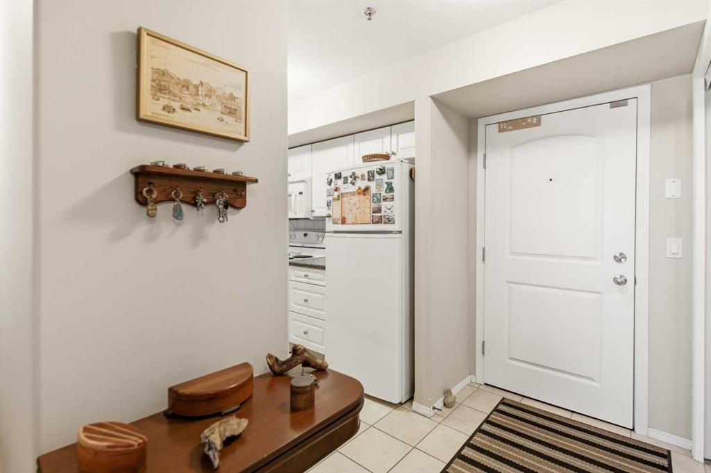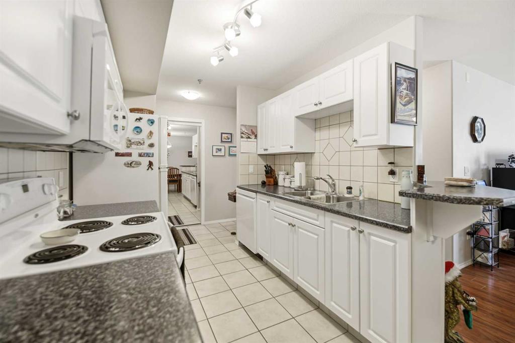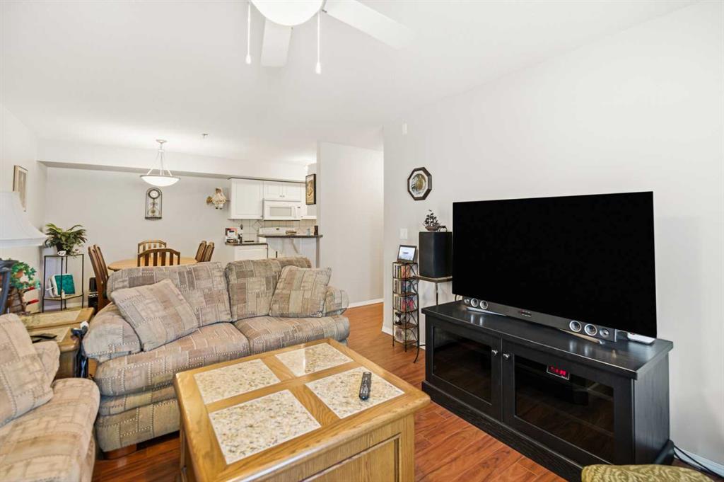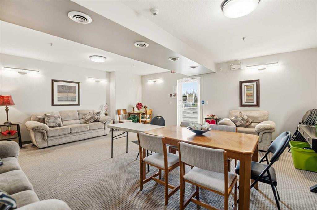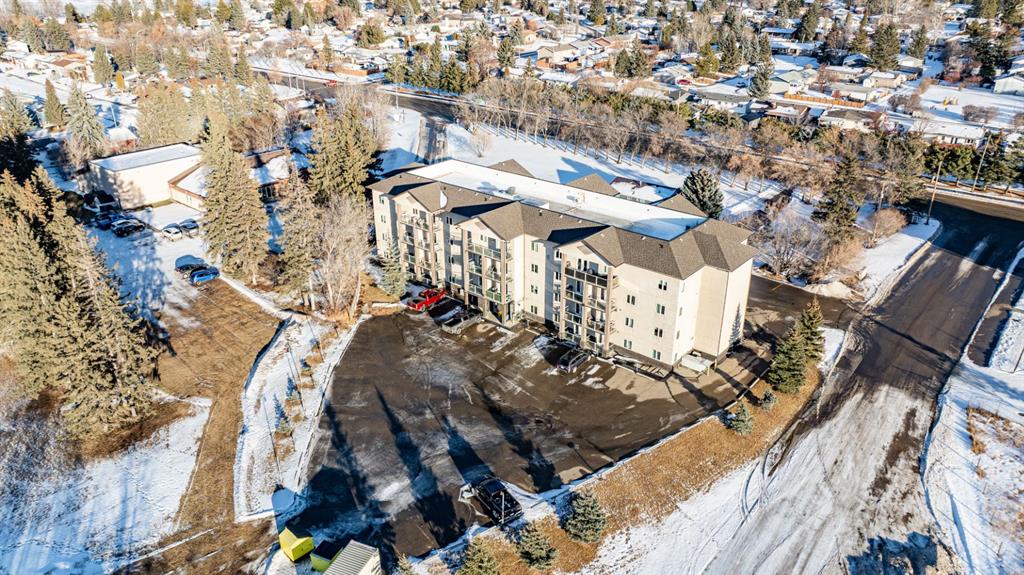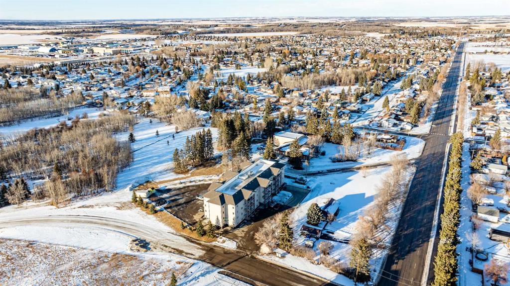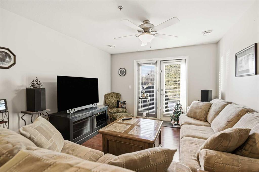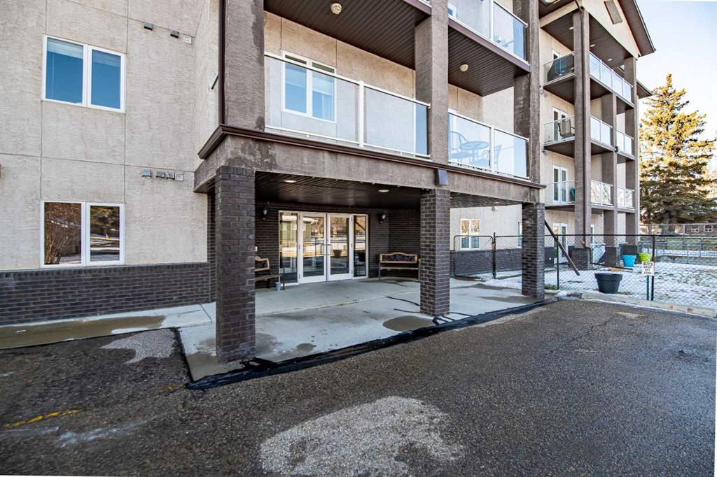Welcome to Unit 106 – 5205 Woodland Road, Innisfail, a bright, quiet west-facing MAIN-FLOOR unit located in the well-maintained and desirable Woodland Manor condominium at the southwest end of town. This clean, well-cared-for home offers comfort, convenience and excellent value in a secure, quality-built building.This two-bedroom unit features a functional layout with a combination of ceramic tile, laminate and carpet flooring throughout. The kitchen is both practical and inviting, offering abundant cabinetry, a ceramic tile backsplash, breakfast counter and a built-in microwave hood fan. Six appliances are included, making this home move-in ready. The bright living room opens through French doors to a private west-facing patio with aluminum and glass railing—perfect for enjoying afternoon sun. Some owners have chosen to remove the glass panels for direct outdoor access, offering added flexibility and convenience. The primary bedroom includes two windows for excellent natural light and airflow. Additional features include quality vinyl casement crank-out windows, drywalled ceilings, an in-unit laundry room with extra storage, and a central vacuum system with attachments. The unit is equipped with forced-air heating and this home already includes A/C, a valuable and hard-to-find upgrade. Parking is a major bonus with ONE CLEAN, HEATED UNDERGROUND TITLED STALL conveniently located close to the elevator, plus ONE ASSIGNED OUTDOOR PARKING STALL with plug-in, and ample visitor parking marked 106.Woodland Manor is known for its solid construction, featuring double-drywalled interior walls for enhanced soundproofing, insulation, and energy efficiency. Condo fees include heat, water, sewer, and reserve fund contributions, offering excellent value and peace of mind. Pets are allowed with approval. Building amenities include secure keyless entry, security cameras, intercom system, elevator, wide hallways, staircases at each end, a social room right next to elevator and a well-maintained common area. Pets are permitted, and the building is designated for residents 18 years and older. An excellent opportunity for first-time buyers, downsizers or investors seeking a quiet, secure, main-floor condominium in a well-managed building in Innisfail.Long term tenants in place.