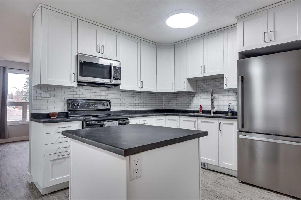 Prepare to be impressed by this extensively updated half duplex located in the desirable community of Innisfail. From top to bottom, this home shines with modern finishes, quality workmanship, and unbeatable value. The exterior showcases brand-new windows and shingles, along with both off-street parking and a double front parking pad. Step inside to discover a bright, contemporary interior featuring stylish vinyl plank flooring, fresh paint, new trim and window coverings, and updated décor switches throughout the main level. The spacious living room welcomes you with an abundance of natural light from the oversized front window—perfect for relaxing or gathering with family. The showstopping, brand-new kitchen is sure to impress, complete with extended white cabinetry, a full tile backsplash, center island, and stainless steel appliances. The adjoining dining area provides the perfect setting for hosting and entertaining. The main bathroom feels fresh and luxurious, offering new cabinetry, a deep soaker tub, updated fixtures, and a beautifully tiled shower surround. Three comfortable main-floor bedrooms complete this level, offering flexibility for family, guests, or home office use. The fully finished lower level continues the upgrades with new carpet, trim, and windows. You’ll find a large fourth bedroom, an updated 3-piece bathroom with quality tile work, ample storage, and the home’s high-efficiency furnace and hot water tank—providing peace of mind for years to come. Outside, enjoy summer evenings under the covered patio overlooking your huge, west-facing backyard—complete with a greenhouse and storage shed. This property has been thoughtfully renovated from top to bottom—offering exceptional style, comfort, and value. Truly move-in ready and sure to impress any buyer!