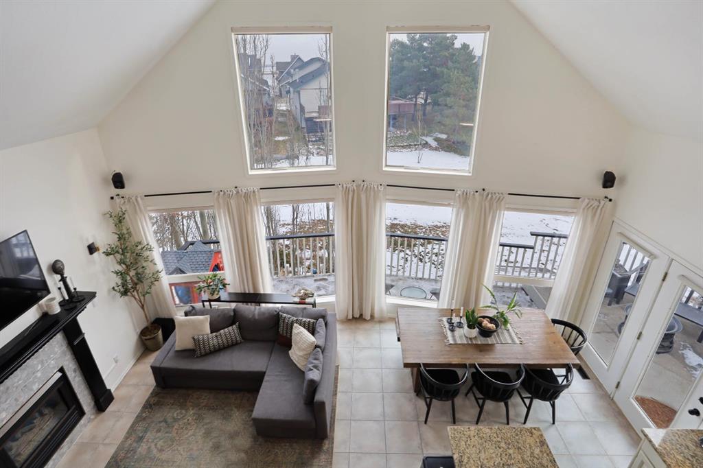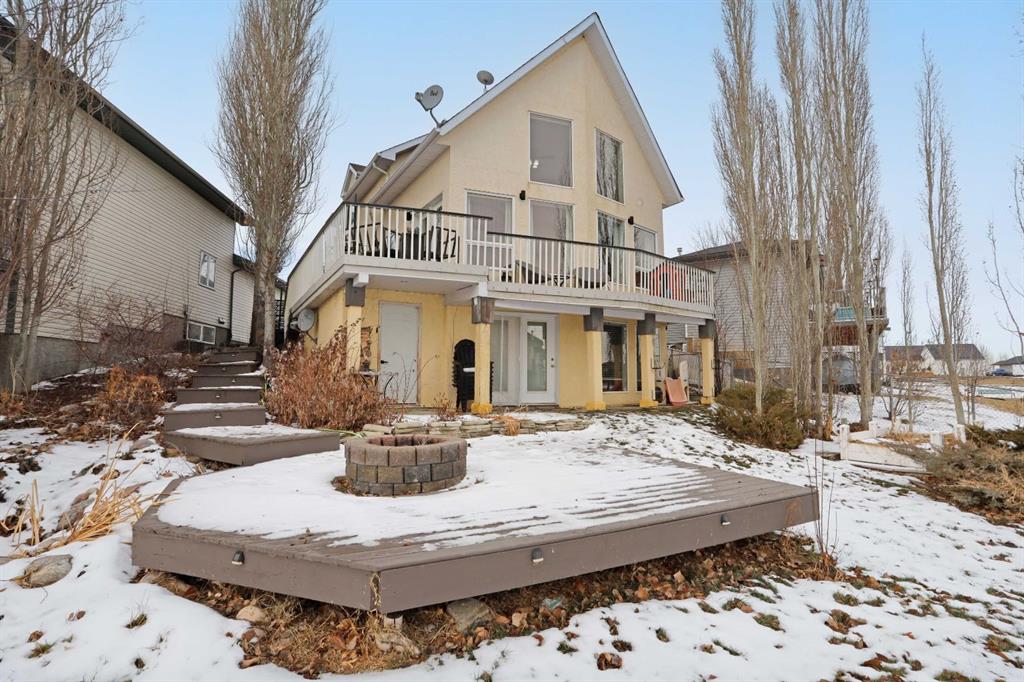 87 White Pelican View at Lake Newell Resort, this beautifully renovated 1.5-storey home offers a fully developed walk-out basement and an attached heated garage. A bright and thoughtfully updated property featuring 4 bedrooms and 3 bathrooms, perfectly suited for families, first-time home buyers, or those looking for the lake lifestyle. The main floor showcases an inviting open-concept layout with kitchen, dining, and living areas highlighted by soaring vaulted ceilings and an eye-catching window feature wall that floods the space with natural light. The living room is warm and welcoming with a gas fireplace, while the kitchen impresses with granite countertops, a functional island, and newer stainless steel appliances. Two bedrooms and a 4pce bathroom with jacuzzi tub complete the main level. Upstairs, a charming office loft overlooks the main living space, leading into the spacious primary suite featuring vaulted ceilings and a stylish 3pce ensuite with neutral tile, vessel sink, and an upgraded shower with body sprays. The walk-out basement offers exceptional additional living space with a large family room and exercise area, a 4th bedroom, a generous 3pce bathroom, storage room with cabinetry ideal for a housing your deep freeze, and a convenient utility and laundry room. Recent updates include fresh paint, modern plumbing and lighting fixtures, a newer tankless hot water system, and central air conditioning for year-round comfort. Outdoor living is just as impressive, with a wrap-around deck leading to a covered patio and storage below, plus a separate firepit area and patio surrounded by lawn, perfect for entertaining or relaxing after a day at the lake. A move-in-ready home offering space, style, and the resort lifestyle that Lake Newell Resort is known for. Quick possession is possible, book your showing today.