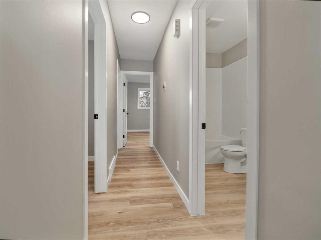 Newly renovated main floor on this 3 bedroom bungalow half-duplex in West Lethbridge! Brand new vinyl plank floors. New Paint. New kitchen including cupboards, counters, sink, faucet, & stainless steel appliances. New lighting on main. New bathroom and new plumbing fixtures. Large yard. Home has vinyl windows on main too. There is also a side entry to the undeveloped basement. New laundry machines purchased and ready to be hooked up. Plenty of parking beyond the fence on the alley. Perfect starter or downsize home to enjoy now and build some equity when you finish the basement in the future!