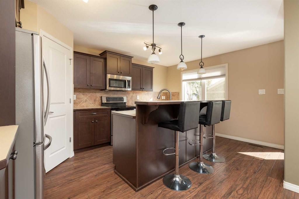 This fantastic 2-storey in an ideal location, is now available and waiting for you! Featuring an open concept main floor with a bright living room, extra large dining area and a kitchen that's perfect for entertaining with its centre island, ample cupboard space and corner pantry. There's laminate throughout the main floor and a 2 piece bathroom as well. Upstairs boasts three bedrooms including a large master bedroom with walk-in closet, 3 piece ensuite and an additional 4-piece bathroom. The basement was thoughtfully developed with a family room, finished laundry room with sink and another bedroom with its own access to the 4-piece basement bathroom. An updated furnace, covered front porch, central air and back deck add to the appeal. The double detached garage has an electric heater and there's still plenty of space in the landscaped backyard. Close to the ATB centre, schools, shopping, dining, parks & more. Do not delay.