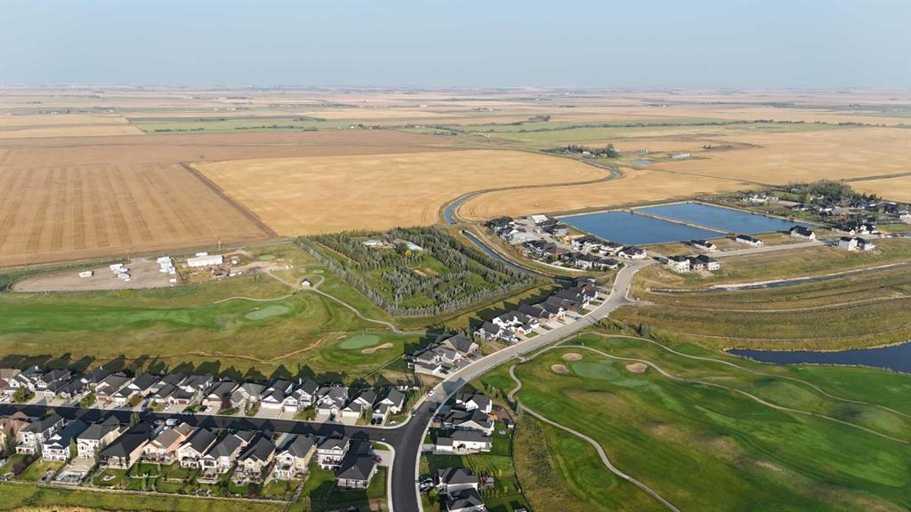 ELIGIBLE FOR FIRST HOME BUYERS GST REBATE. This 1,888 sq. ft. walkout bungalow offers a well-planned layout with space for family living and entertaining. The main floor features an open-concept design with soaring vaulted ceilings and oversized windows that bring in plenty of natural light and highlight the canal views behind the home. The kitchen is equipped with a walk-in pantry, abundant cabinetry, and generous counter space, making meal prep and storage easy. The primary suite is set apart for privacy and includes a five-piece ensuite with dual vanities, a soaker tub, a separate shower, and built-in storage. Two additional bedrooms on the main floor provide flexibility for family, guests, or a home office. A second full bathroom is conveniently located nearby. The living room and primary bedroom both open onto a full-length deck, perfect for enjoying the outdoors. The walkout basement extends the living space with two large bedrooms, a full bathroom, and a rec room that can accommodate media, games, or hobbies. Large basement windows keep the space bright and inviting, with direct access to the backyard and canal. Practical features include a side-drive triple garage with plenty of parking and storage options. Outside, the backyard and lower patio provide additional outdoor living areas with a scenic, peaceful backdrop. Located in Lakes of Muirfield, this property combines a quiet setting with easy access to nearby communities. Enjoy golf, walking paths, and a friendly neighborhood, all within a short drive of Strathmore, Chestermere, and Calgary.