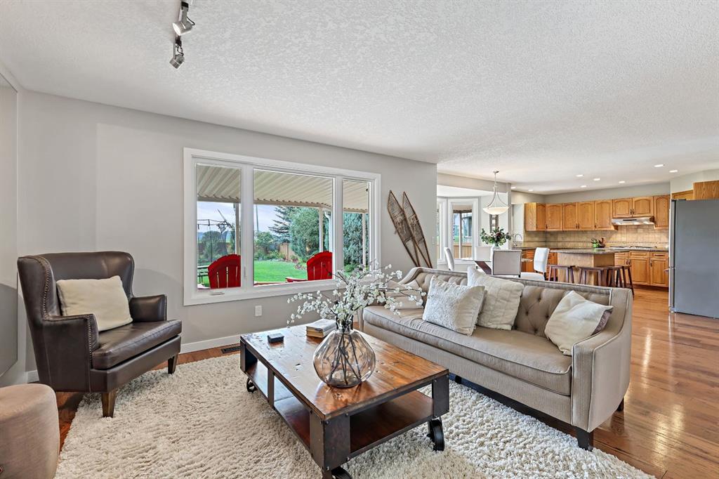 This upgraded and fully developed, 4-bedroom, 4-bathroom home offers over 3,300 sq ft of living space with rare, unobstructed Rocky Mountain views — a vantage point unmatched in the neighbourhood. The main floor features vaulted ceilings, large windows, a gas fireplace, and a kitchen with granite countertops, island seating, and new KitchenAid stainless steel appliances. Upstairs offers a loft, a second bedroom, and a spacious primary suite positioned to capture the views, complete with a dedicated workout area, custom built-in closet cabinetry, and an ensuite with jetted soaker tub and tiled walk-in shower. The fully developed basement adds two additional bedrooms, a large recreation room, and full bath. Major upgrades include new air conditioning, two furnaces, two hot water tanks, triple-pane windows and exterior doors, professional interior paint, irrigation system, new driveway, and garage door openers. Situated in one of the largest lots in the community and backing onto green space and a dog park, the covered deck, mature trees, and perennial gardens create a private setting designed to capture exceptional sunset views — exclusive to this property within the neighbourhood. Located in highly desirable Suntree, minutes from shopping, schools, recreation, downtown Okotoks, and quick access to Calgary.