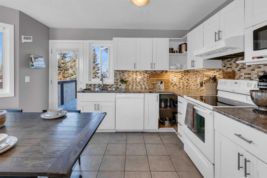 HOME SWEET HOME! Welcome to EXCEPTIONAL VALUE in the heart of Okotoks in this fully finished WALKOUT HOME offering 4 bedrooms, 2 bathrooms and a double attached garage on a spacious lot on a quiet street. Stepping inside you will fall in love with the open concept and immaculately maintained floorplan offering a spacious foyer, modern laminate flooring and upstairs is where you will find the vaulted ceilings, expansive windows, and an effortless flow designed for everyday living and entertaining alike. The updated kitchen offers ample cabinetry, generous counter space, and a large dining area with direct access to a raised deck, ideal for summer BBQs or quiet mornings outdoors. The primary bedroom is a true retreat, comfortably fitting a king-sized bed and featuring a 4-piece spa-like ensuite bathroom filled with natural light. A second bedroom and full bathroom with tub complete this level. Downstairs, the FULLY DEVELOPED WALKOUT BASEMENT sets this home apart. Large windows flood the space with light, while a cozy gas fireplace creates the perfect spot for movie nights, a games area, or even a home-based business setup. Two more great-sized bedrooms, laundry/utility room, garage access, and excellent storage complete this versatile lower level. Step outside to enjoy a beautifully landscaped, private backyard with mature trees, a concrete and brick patio with pergola, and a fully fenced yard providing you with your own peaceful oasis. NOTABLE UPGRADES include updated electrical, new GFI outlets, hard-wired smoke and carbon monoxide alarms, new garage door, poly-b removed, shingles (2019), Hot water (2019) and air conditioning, offering comfort and peace of mind. Located a quick drive to Calgary and within walking distance to Big Rock School, the Okotoks Library, the Sheep River pathways, parks, and everyday amenities, this home delivers the lifestyle Okotoks is known for: nature, community, and convenience all at your doorstep. Don’t miss out, book your private tour of this GEM today!