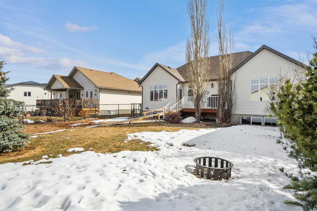 Beautifully built bungalow in one of Olds’ most desirable communities, Park Meadows. Offering 2+2 bedrooms, 2.5 bathrooms, an oversized heated garage, and a gorgeous west-facing fenced yard, this home is the perfect combination of quality, comfort, and location. The main floor features hardwood floors, vaulted ceilings, and a spacious living room anchored by a stunning stone-faced gas fireplace. The bright, functional kitchen and dining area offers updated stainless steel appliances, a gas/electric stove, plenty of cabinetry, built-ins, a large corner pantry, and a newer stone island. The dining area overlooks the private backyard, creating a warm and inviting space for everyday living. The bright and spacious primary suite features a walk-in closet, a 5-piece ensuite, and private access to the back deck — the perfect spot to enjoy your morning coffee. A second large bedroom with double closets, convenient main floor laundry, and a 2-piece guest bath complete the main level. Downstairs, the fully finished basement with in-floor heat adds exceptional living space with 2 large bedrooms, high ceilings, a full bathroom, spacious rec room, built-in wet bar, large pantry closet, massive cold room/canning area, and plenty of additional storage. Outside, the beautifully landscaped west-facing yard features mature trees, flower beds, and a private deck designed for quiet evenings and easy enjoyment. An oversized double attached garage with in-floor heat, plus space on the driveway for a small RV, completes this impressive property.