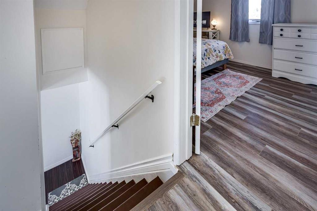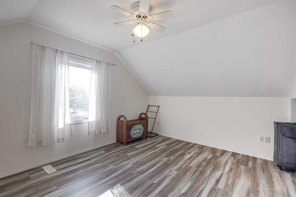 2 bedroom 2 bath, move-in ready, character home in the heart of Ponoka! This home is situated on a large corner lot surrounded by spruce trees and a newer fully fenced yard! The main floor of this home is bright, cozy and features: high ceilings, a spacious kitchen, combined dining and living room and 4 piece bath. The upper level offers two spacious bedrooms with so much character and charm, and a 2 piece bath. The basement provides ample space for storage and laundry. Recent upgrades since 2020 include: new shingles, new HWT (2023), new flooring, new fully fenced backyard, new paint, 2 newer windows, and a new garage door. You're sure to love the large 25x23 detached garage perfect for your toys, vehicles and storage needs. Enjoy the HUGE landscaped backyard with a fire pit, offering privacy and still tons of yard space, perfect for pets, and entertaining friends and family gatherings. This charming home offers tons of value in a great location, walking distance to excellent schools, shopping and recreation center.