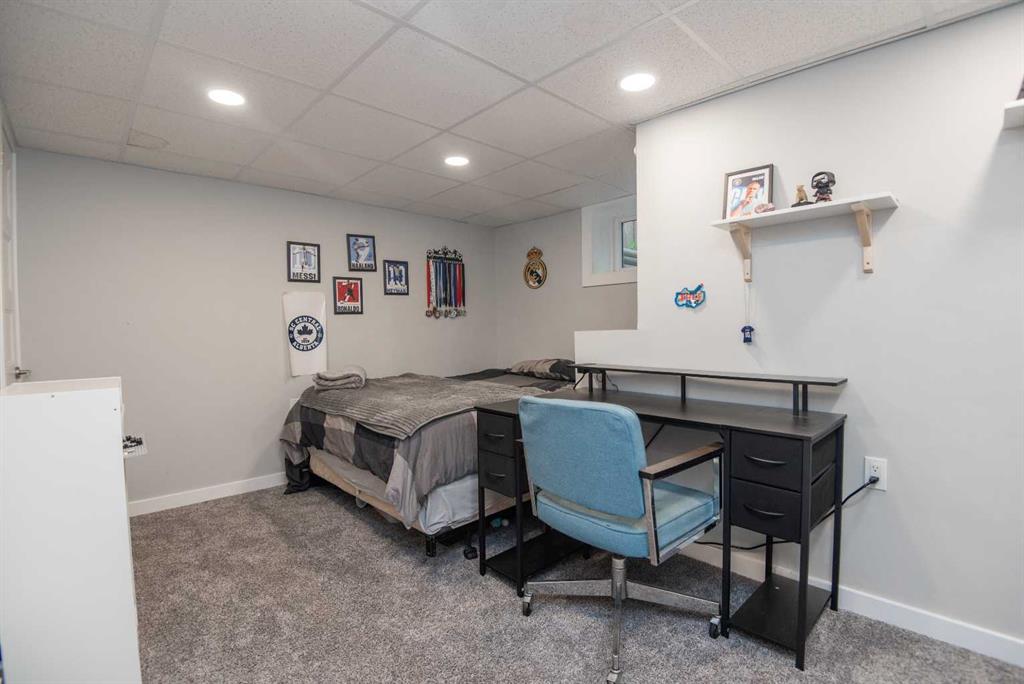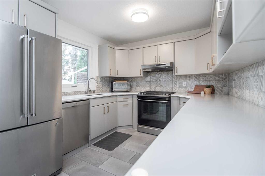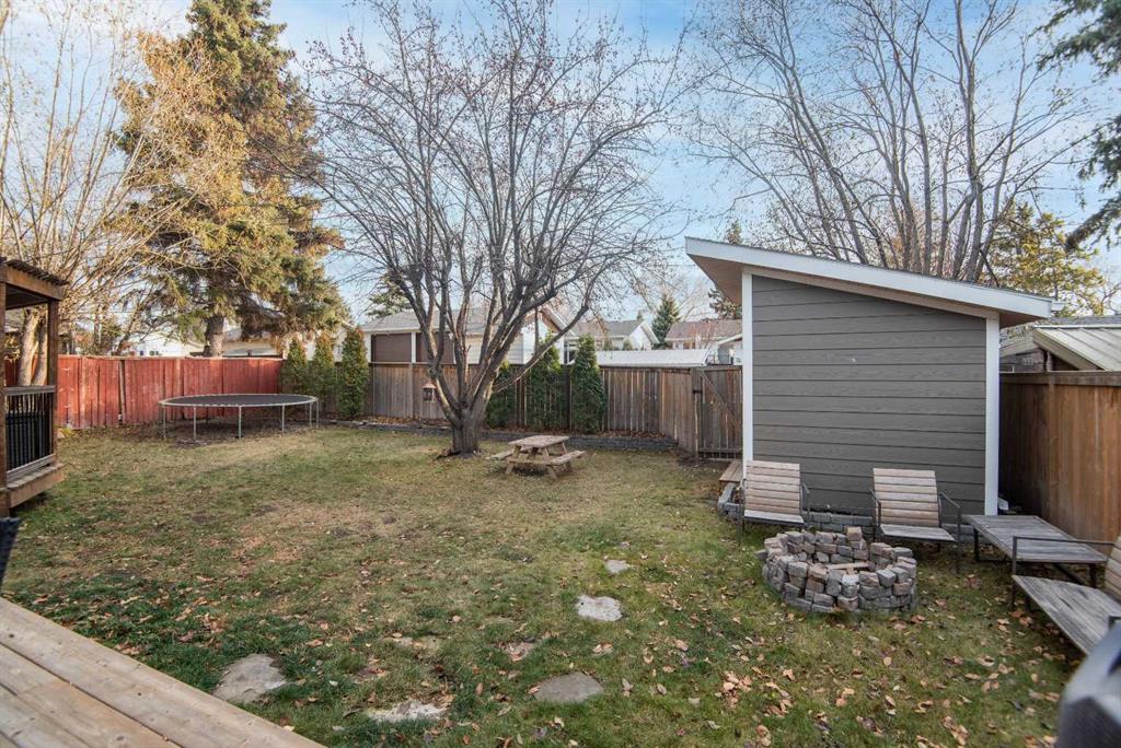 Welcome to the home you've been waiting for! This spacious 2366 sqft 5 bedroom 4 bath gem is conveniently located just a short walk from, parks, elementary and middle schools, and a short drive to all essential amenities. Nestled among mature trees on a quiet close, this property is hard to beat. As you step inside, you’ll immediately appreciate the laminate flooring that flows through the living room, featuring a cozy wood-burning fireplace, the dining area, and a versatile space that serves as an additional sitting area or breakfast nook etc. The kitchen boasts gas stove, elegant quartz countertops, a stylish backsplash, and tile flooring. The main-floor primary bedroom is very spacious with a walk-in closet, a vanity with ample storage, and a luxurious ensuite complete with an oversized double shower. Just off the master, you'll find a private covered patio that leads to the separate study/home office. Upstairs, three generously sized bedrooms await, along with a craft/playroom and a well-appointed 4-piece bathroom The lower level includes a welcoming family room, an additional bedroom, a flex room, a 4-piece bathroom, two playhouses, and two egress windows that fill the space with natural light. The laundry room has a utility sink and an abundance of space for drying racks, storage, and extra appliances. The back yard is fully fenced and has a massive deck that spans the entire back of the house! This property has lots of room for your family to grow!!