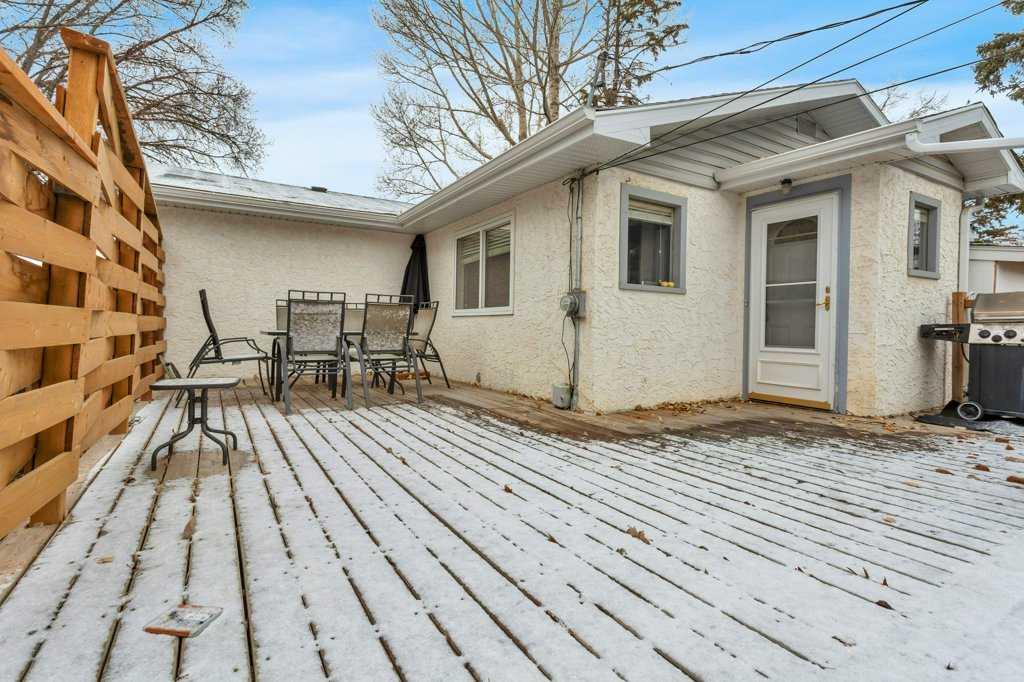 CLASSIC CHARACTER + MODERN UPDATED BUNGALOW IN GRANDVEIW! This four bedroom, two bathroom home is move-in ready and sure to impress. Step inside and be welcomed by the bright living room with a large west exposed window for lots of natural light along with new hardwood floors that run throughout the main living spaces. The kitchen is an entertainers delight offering white cabinets, lots of counter space, eat-in dining area, coffee bar and two nice sized windows which over look the yard. You'll love the convenience of three bedrooms as well as a four piece bathroom all on the main level. The basement is fully finished with a large family/rec space, fourth bedroom (no closet), three piece bathroom, storage and laundry space. Outside, the property boasts a large deck with a privacy wall which over looks the mature fenced yard with a firepit area and garden. The double garage completes this wonderful package, providing one half with parking and the other side for additional storage. At the front of the home you'll also find a nice wood deck which looks onto the mature tree lined street. Other extras include new pex piping (November 2025), vinyl windows and convenient central vac. Come see for yourself and get ready to fall in love with this special home!