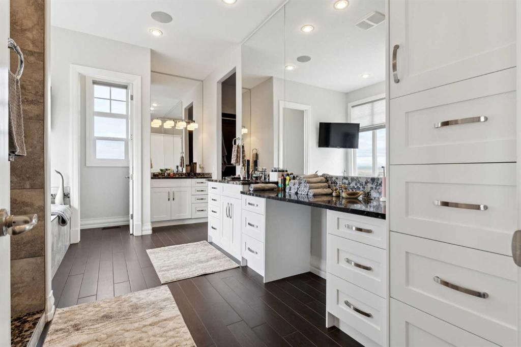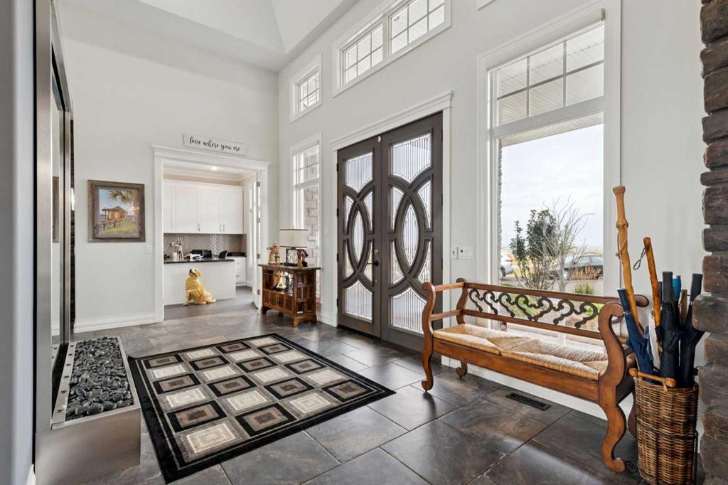 Welcome to country living at it best with mountain and city views. 3 acre gated acreage with a custom built bungalow has over 5600 square feet of space and a 6+ car garage with room to store your toys as well. Inviting entrance invites you into this bright home with high ceilings, large windows, tile flooring, cornice moldings and loads of built-ins throughout. Huge, bright and warm living room welcomes you with a floor to ceiling stone fireplace. Large dining room has loads of built-in cabinetry. Wonderful gourmet kitchen, complete with a built-in Fridge/Freezer, dual ovens, microwave and induction cooktop that is set to host guests around a massive island. The primary bedroom has a luxurious 5 piece ensuite bathroom with his and her sinks, large soaker tub, a walk-in shower and a huge walk-in closet with loads of built-ins and a large island with granite counter. Great den with a built-in double desk for all to work from. 2nd bedroom on the main floor has its own 3 piece bathroom with a walk-in shower. The lower level is completely developed with all the amenities a family would want, starting with a wonderful and warm family room with a full height gas fireplace, a desirable bar area with loads of built-ins and a storage/wine making room. The theatre room is complete with a projection TV with big screen with 8 reclining movie chairs and an amazing sound with built-in speakers. There are 2 other bedrooms, each with their own 3 piece ensuite bathrooms and there is a separate 2 piece bathroom as well. Huge furnace/storage room with loads of room for all of your things and up to date mechanical system. There is hydronic floors throughout the home to make it more comfortable. The huge heated garage houses 7+ vehicles, outdoor equipment, sitting/work area, work benches and loads of storage. The 3 acre parcel has underground sprinklers and is fully fenced with a separate dog run. View from the south and all the way to the north leave nothing to be desired. Loads of upgrades have recently been competed on this home including; garage addition, newer roof, furnaces and air conditioners, boiler, gemstone lighting and whole home backup generator system. Call to view this amazing home today.