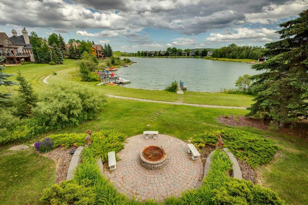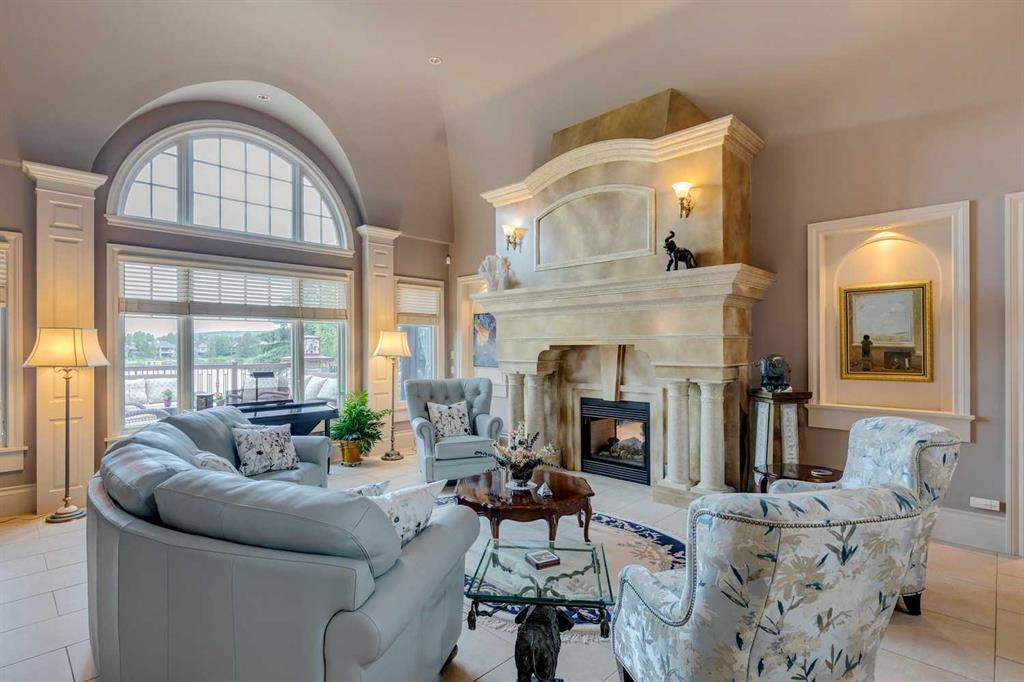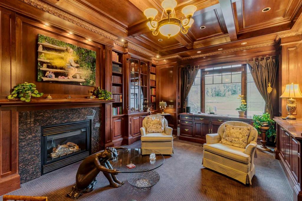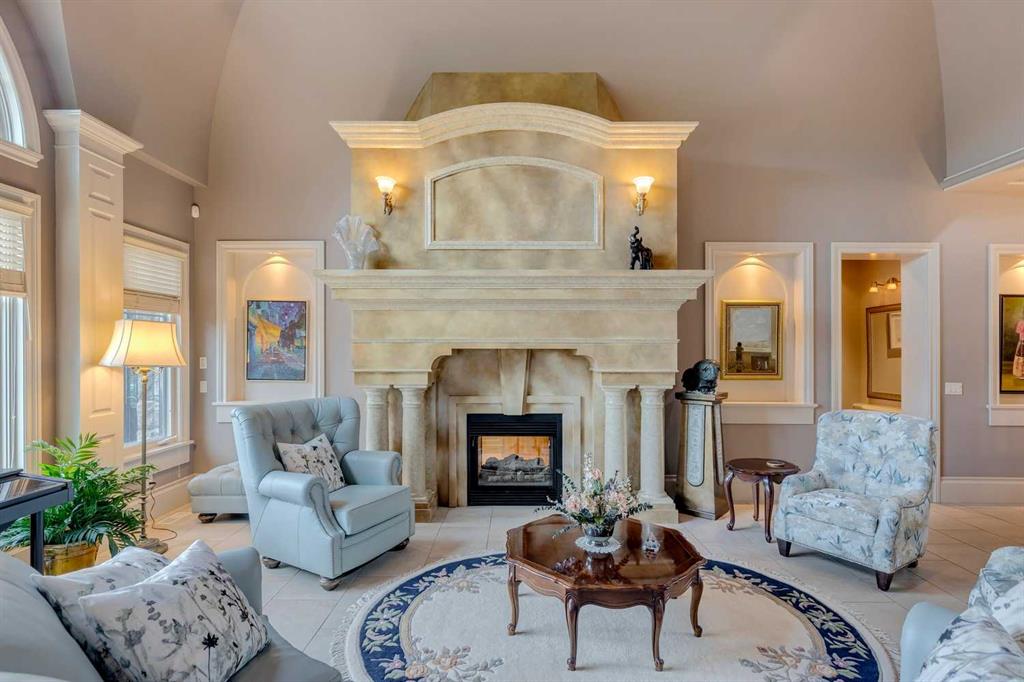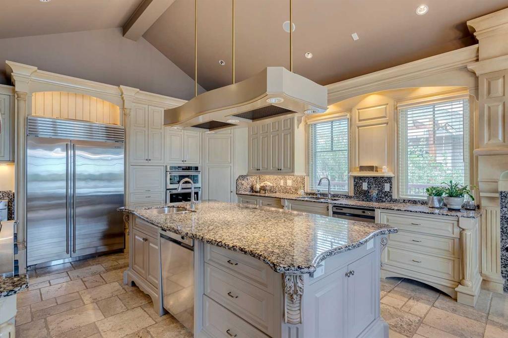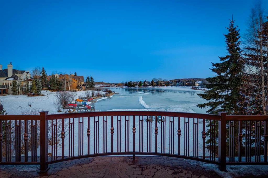 Discover one of the most iconic estate homes offered in prestigious Elbow Valley Estates—an extraordinary custom residence that combines European grandeur, architectural artistry, and exceptional craftsmanship. Perfectly positioned on a private lakefront lot, this executive walkout bungalow offers over 8000 square feet of exquisitely developed living space, designed with precision over years of thoughtful planning and executed by master artisans. From the moment you enter the grand foyer with its coffered and barrel-vaulted ceilings, it’s clear this is a home unlike any other. The main level features a sun-drenched great room with a double-sided fireplace and expansive windows framing unobstructed lake views. The heart of the home is the richly appointed ‘French Manor’ inspired kitchen—equipped for grand-scale entertaining with granite countertops, top-tier appliances including a Sub-Zero refrigerator, gas range with pot filler, two dishwashers, and a walk-in pantry. A cozy breakfast nook with fireplace and access to the expansive upper deck provides the perfect spot for morning coffee overlooking the water (with handi-cap access). An elegant formal dining room with custom glass cabinetry, a fully paneled library/office with fireplace, and a large laundry/sewing/hobby room complete the main level. A reverse osmosis water system is conveniently located in the craft room. The luxurious primary suite is a private sanctuary, featuring a vaulted sleeping area, two-way fireplace, and a spa-inspired circular ensuite with bubbling soaker tub, walk-in shower, dual vanities, and a generous dressing room with built-ins. The suite also offers deck access to enjoy tranquil lake views. A versatile loft functions as a full office or creative workspace, complete with multiple workstations—ideal for today's remote professional or growing family. The lower level is designed for recreation and relaxation, boasting an authentic English-style pub with a full wet bar, games room, media/theatre room, and three additional spacious bedrooms—each with their own private ensuite and walk-in closet. Three solariums enhance the lower level, offering a fully enclosed hot tub retreat, home gym, and peaceful sitting room, all flooded with natural light. This remarkable residence is equipped with countless thoughtful upgrades, including two newer air conditioning units, newer hot water tank and sump pump, new sinks and hardware in the craft room and kitchen . The property also features a recently serviced irrigation system. Designed for effortless living, this home includes hydronic in-floor heating on all levels, a dramatic central staircase, private elevator, and a heated triple garage. Every detail reflects unparalleled quality and meticulous attention throughout. Outdoor living is equally exceptional, with sweeping views of the lake and beautifully landscaped grounds—an entertainer’s dream and a private oasis.