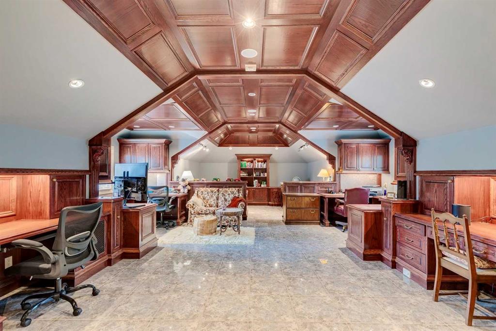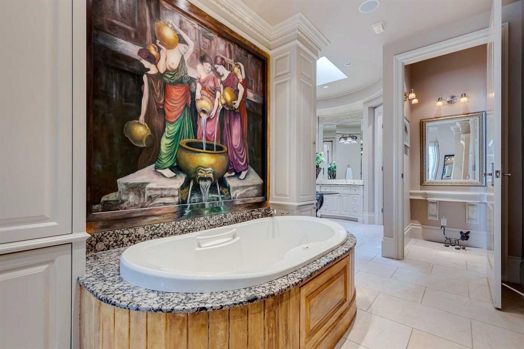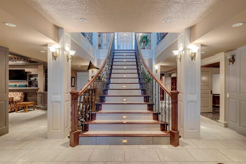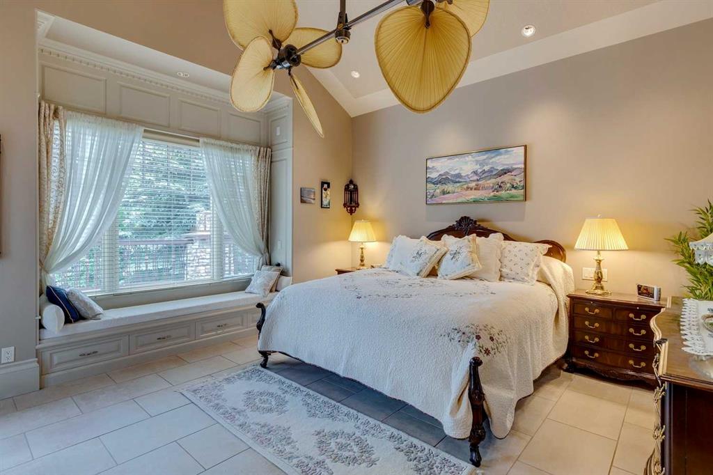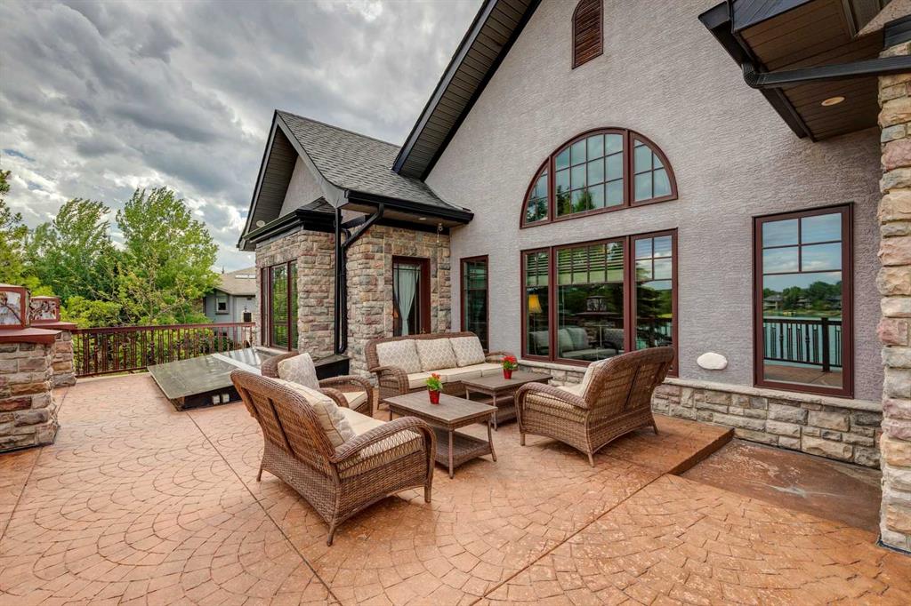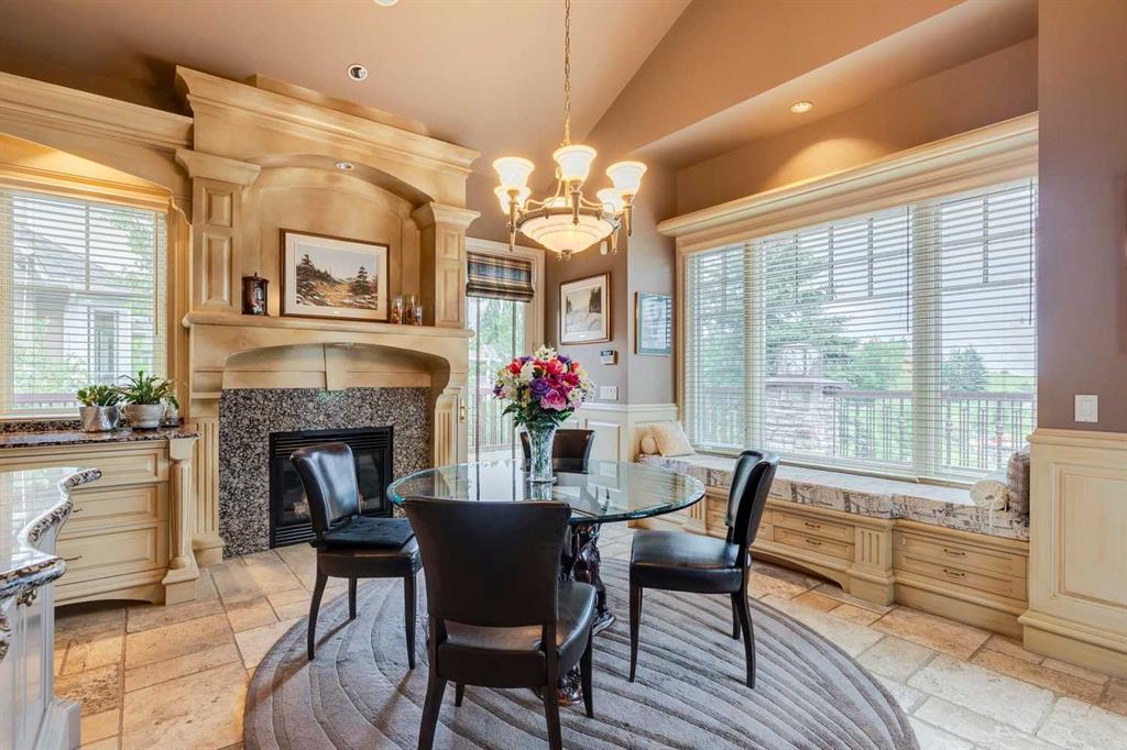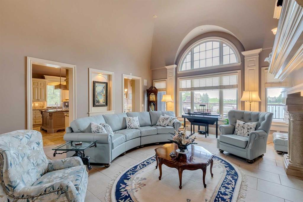 Discover one of the most iconic estate homes offered in prestigious Elbow Valley Estates—an extraordinary custom residence that combines European grandeur, architectural artistry, and exceptional craftsmanship. Perfectly positioned on a private lakefront lot, this executive walkout bungalow offers over 8000 square feet of exquisitely developed living space, designed with precision over years of thoughtful planning and executed by master artisans. From the moment you enter the grand foyer with its coffered and barrel-vaulted ceilings, it’s clear this is a home unlike any other. The main level features a sun-drenched great room with a double-sided fireplace and expansive windows framing unobstructed lake views. The heart of the home is the richly appointed ‘French Manor’ inspired kitchen—equipped for grand-scale entertaining with granite countertops, top-tier appliances including a Sub-Zero refrigerator, gas range with pot filler, two dishwashers, and a walk-in pantry. A cozy breakfast nook with fireplace and access to the expansive upper deck provides the perfect spot for morning coffee overlooking the water (with handi-cap access). An elegant formal dining room with custom glass cabinetry, a fully paneled library/office with fireplace, and a large laundry/sewing/hobby room complete the main level. A reverse osmosis water system is conveniently located in the craft room. The luxurious primary suite is a private sanctuary, featuring a vaulted sleeping area, two-way fireplace, and a spa-inspired circular ensuite with bubbling soaker tub, walk-in shower, dual vanities, and a generous dressing room with built-ins. The suite also offers deck access to enjoy tranquil lake views. A versatile loft functions as a full office or creative workspace, complete with multiple workstations—ideal for today's remote professional or growing family. The lower level is designed for recreation and relaxation, boasting an authentic English-style pub with a full wet bar, games room, media/theatre room, and three additional spacious bedrooms—each with their own private ensuite and walk-in closet. Three solariums enhance the lower level, offering a fully enclosed hot tub retreat, home gym, and peaceful sitting room, all flooded with natural light. This remarkable residence is equipped with countless thoughtful upgrades, including two newer air conditioning units, newer hot water tank and sump pump, new sinks and hardware in the craft room and kitchen . The property also features a recently serviced irrigation system. Designed for effortless living, this home includes hydronic in-floor heating on all levels, a dramatic central staircase, private elevator, and a heated triple garage. Every detail reflects unparalleled quality and meticulous attention throughout. Outdoor living is equally exceptional, with sweeping views of the lake and beautifully landscaped grounds—an entertainer’s dream and a private oasis.
