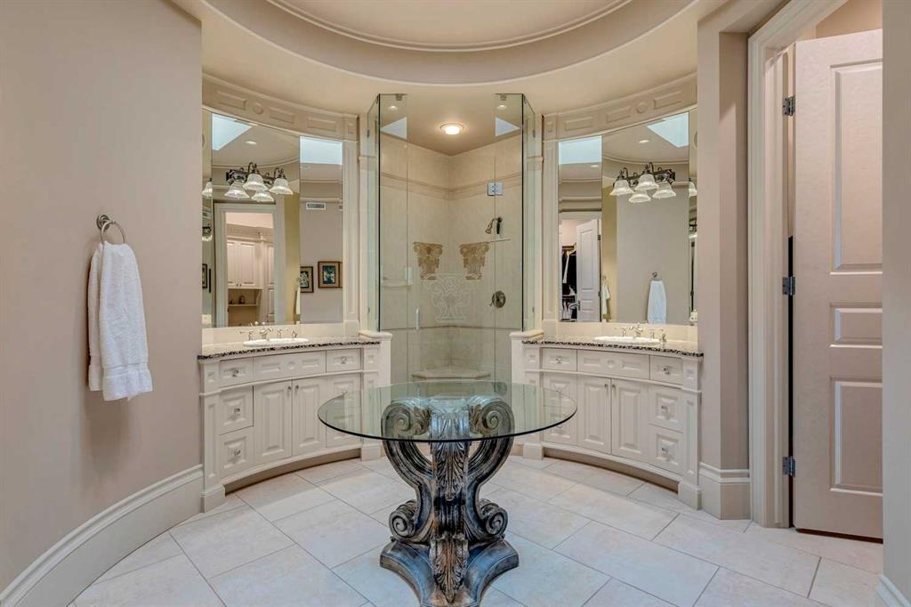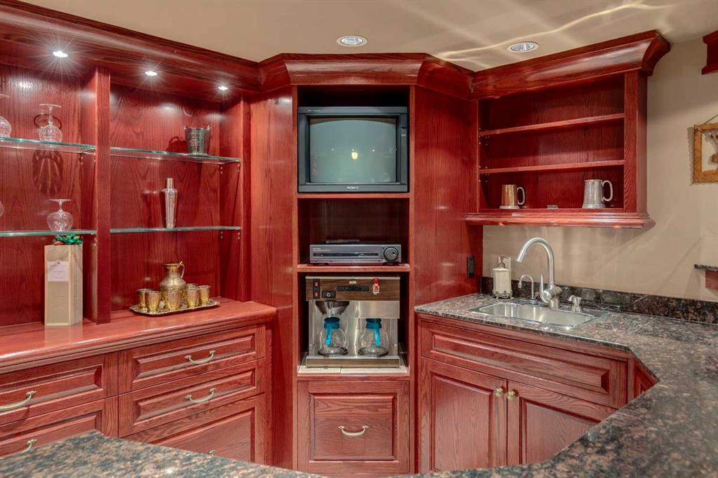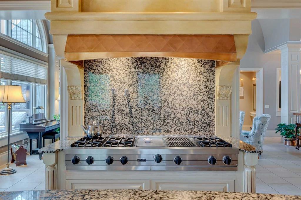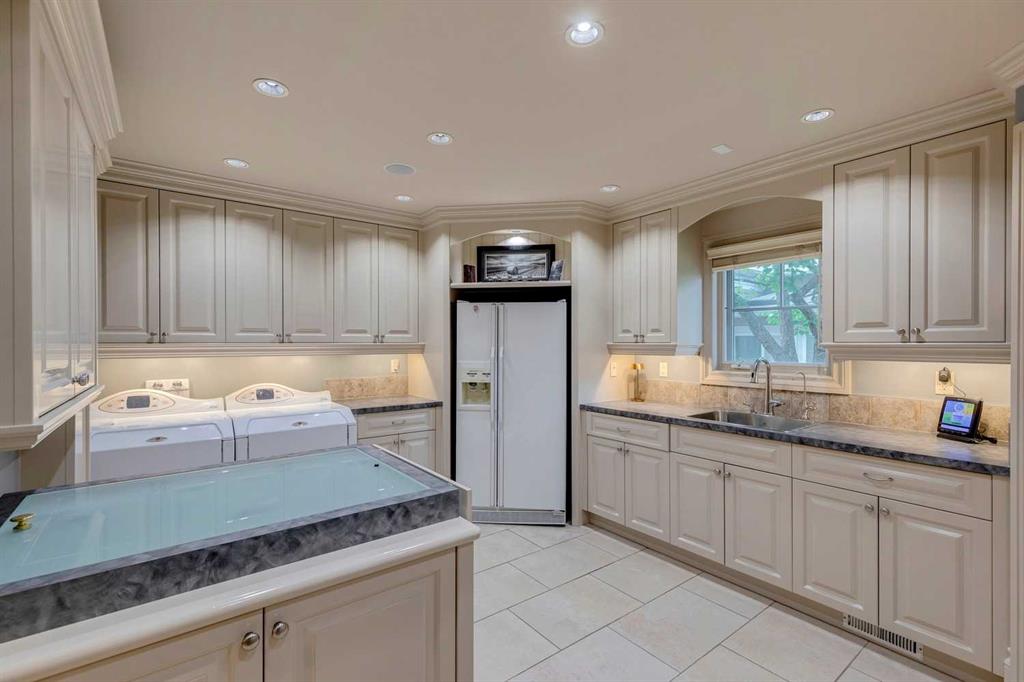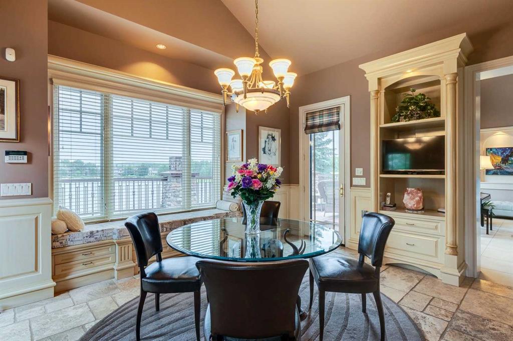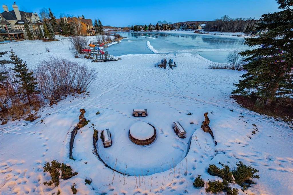 Discover one of the most iconic estate homes offered in prestigious Elbow Valley Estates—an extraordinary custom residence that combines European grandeur, architectural artistry, and exceptional craftsmanship. Perfectly positioned on a private lakefront lot, this executive walkout bungalow offers over 8000 square feet of exquisitely developed living space, designed with precision over years of thoughtful planning and executed by master artisans. From the moment you enter the grand foyer with its coffered and barrel-vaulted ceilings, it’s clear this is a home unlike any other. The main level features a sun-drenched great room with a double-sided fireplace and expansive windows framing unobstructed lake views. The heart of the home is the richly appointed ‘French Manor’ inspired kitchen—equipped for grand-scale entertaining with granite countertops, top-tier appliances including a Sub-Zero refrigerator, gas range with pot filler, two dishwashers, and a walk-in pantry. A cozy breakfast nook with fireplace and access to the expansive upper deck provides the perfect spot for morning coffee overlooking the water (with handi-cap access). An elegant formal dining room with custom glass cabinetry, a fully paneled library/office with fireplace, and a large laundry/sewing/hobby room complete the main level. A reverse osmosis water system is conveniently located in the craft room. The luxurious primary suite is a private sanctuary, featuring a vaulted sleeping area, two-way fireplace, and a spa-inspired circular ensuite with bubbling soaker tub, walk-in shower, dual vanities, and a generous dressing room with built-ins. The suite also offers deck access to enjoy tranquil lake views. A versatile loft functions as a full office or creative workspace, complete with multiple workstations—ideal for today's remote professional or growing family. The lower level is designed for recreation and relaxation, boasting an authentic English-style pub with a full wet bar, games room, media/theatre room, and three additional spacious bedrooms—each with their own private ensuite and walk-in closet. Three solariums enhance the lower level, offering a fully enclosed hot tub retreat, home gym, and peaceful sitting room, all flooded with natural light. This remarkable residence is equipped with countless thoughtful upgrades, including two newer air conditioning units, newer hot water tank and sump pump, new sinks and hardware in the craft room and kitchen . The property also features a recently serviced irrigation system. Designed for effortless living, this home includes hydronic in-floor heating on all levels, a dramatic central staircase, private elevator, and a heated triple garage. Every detail reflects unparalleled quality and meticulous attention throughout. Outdoor living is equally exceptional, with sweeping views of the lake and beautifully landscaped grounds—an entertainer’s dream and a private oasis.
