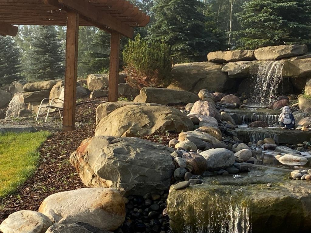 Nestled within the exclusive gated community of Devonian Ridge Estates in Springbank, this remarkable peice of land offers an unparalleled opportunity to build your dream home. Spanning just under two acres, Lot 9, known as "Brook Haven," boasts direct access to the community pond and features the largest private beach in the development (only 2 lots have beach access). Imagine summer days spent swimming, paddleboarding, or simply relaxing by the water's edge. Surrounded by over 100 acres of protected parkland, this boutique development is thoughtfully designed with family living in mind. The community's Homestead Park includes a picturesque pond with a gazebo, a BBQ and fire pit area, putting green and a stunning custom waterfall, creating a serene and inviting atmosphere. Adjacent to the Springbank Links Golf Course, the property is perfectly positioned for those who appreciate both recreation and tranquility. Despite its peaceful setting, this location offers exceptional convenience. Downtown Calgary is just a 25-minute drive away, while the nearby Springbank Airport and proximity to Nakiska and Banff make it ideal for both business and leisure travel. Shopping, dining, and fitness options are within 15 minutes at The West District and The Calgary Farmers Market West/with additional amenities just 10 minutes away at COP/Gateway at Trinity Hills. Adding to the appeal, the highly anticipated Bingham Crossing development, set to open in fall 2026, will feature a new Costco, further enhancing the convenience and lifestyle offerings of the area. For nature enthusiasts, the surrounding area provides breathtaking river valley walks and abundant wildlife. This is a rare opportunity to embrace a lifestyle that seamlessly blends luxury, nature, and accessibility.