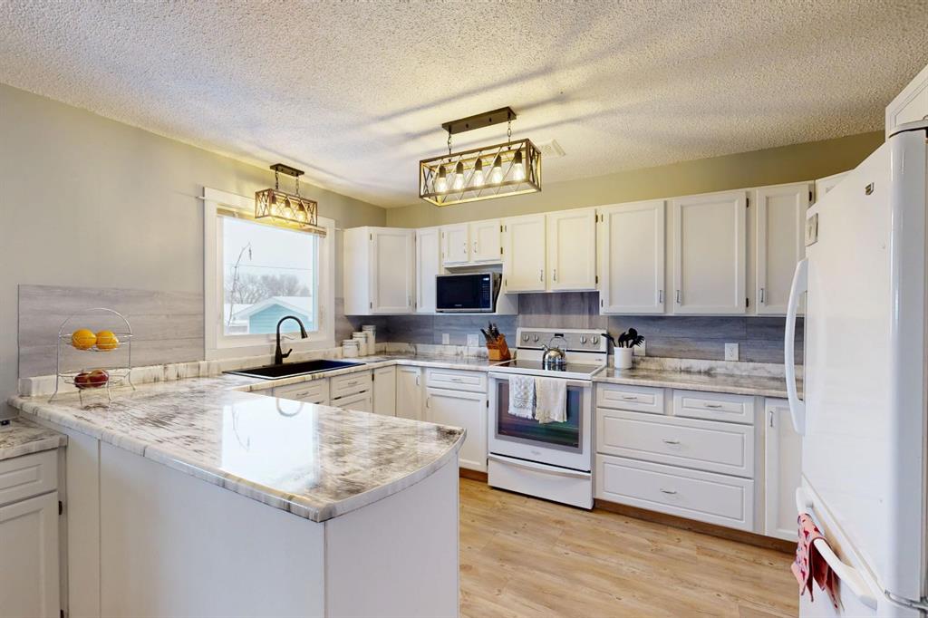 Welcome to a bright, refreshed 3-bedroom bungalow that blends comfort, style, and thoughtful design throughout. The main floor features a spacious living room with a stone-surround gas fireplace, an oversized kitchen with a bright eating area, and convenient main-floor laundry. Off the dining space, an inviting back deck leads to the cozy backyard. The walk-up basement with direct backyard access is ready for future development, with one room already completed. Outside, you’ll find a 21' x 24' insulated and sheeted garage, plenty of off-street parking, and RV parking—all directly across from a park and playground. This well-kept home has also been thoughtfully updated: fresh exterior paint and interior paint in most rooms, a refreshed kitchen with refinished cabinets, new countertops, and updated light fixtures throughout. Additional improvements since 2019 include vinyl plank flooring, new trim, crown molding, interior doors, and a crushed asphalt driveway. The shingles, eaves, and siding were replaced in 2022, and the dishwasher was installed in 2023. Major items updated between 2014–2019 include the windows, gas fireplace, central A/C, furnace, and hot water tank. Come see everything this home has to offer!