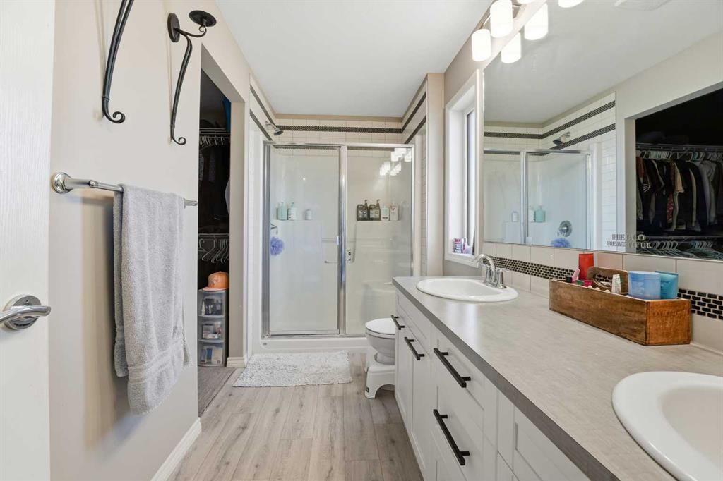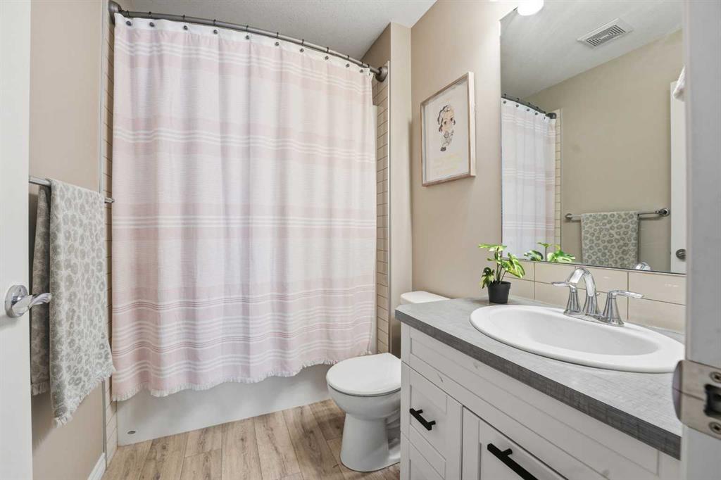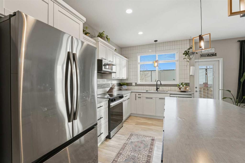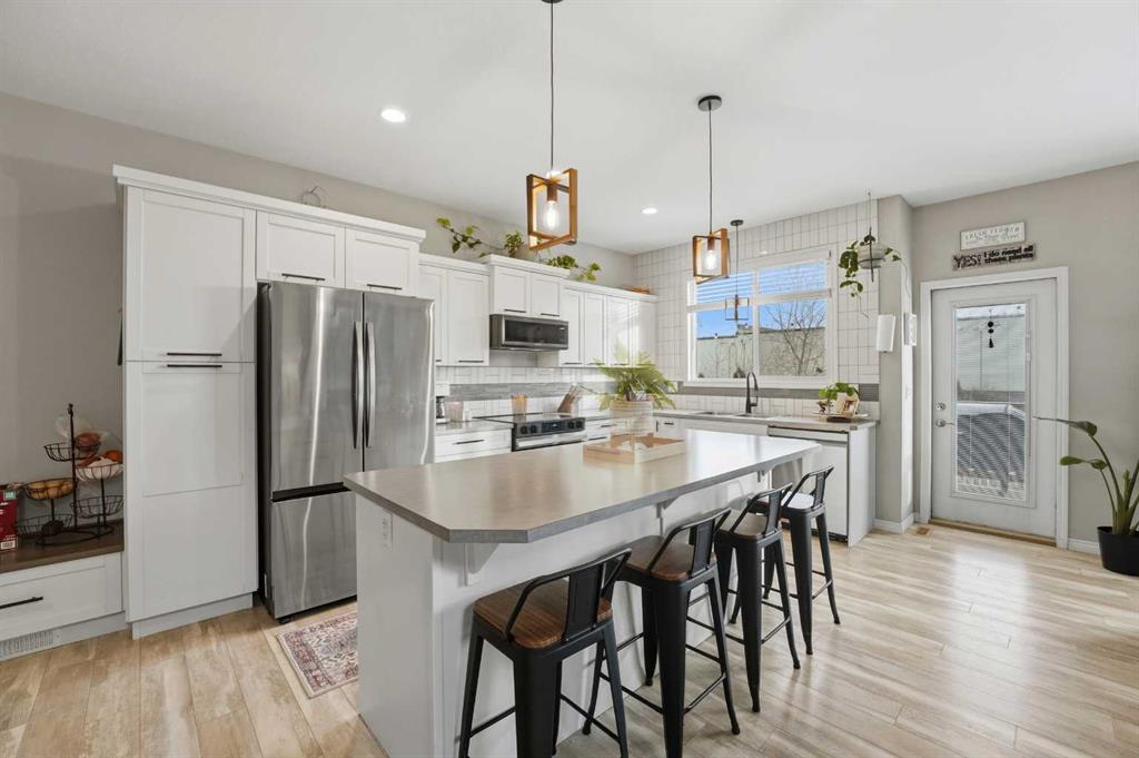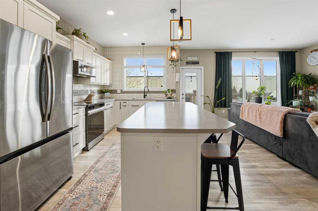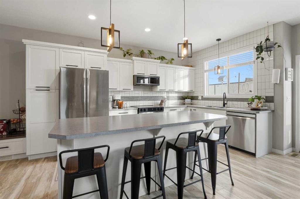 Welcome to 135 Hampton Crescent ~ A beautiful 2 storey with modern upgrades throughout and a functional design. The main floor showcases a bright living room accompanied by a gas fireplace and is open to the kitchen and dining area making entertaining a breeze. The kitchen features brand new stainless steel appliances, an abundance of counter space with a centre island and cabinet space. The dining nook is a standout feature with a 12 foot built in bench. Off of the garage you will discover a great mudroom providing great storage plus the convenience of a bench in a high traffic area. Upstairs you will love the layout with three nice size bedrooms including the primary suite with a 4pc ensuite including a double vanity. That's not it though you also have a walk-in closet and cheater door to the upper floor laundry room with additional storage! The basement is partially developed with a framed & drywalled 4th bedroom and completed 3pc bathroom. Notable features include functional in-floor heat, central A/C, heated garage and more. This great family home is completed by the fully fenced backyard featuring a deck as well as a lower patio space.
