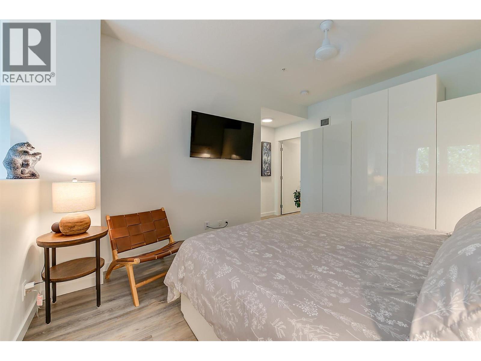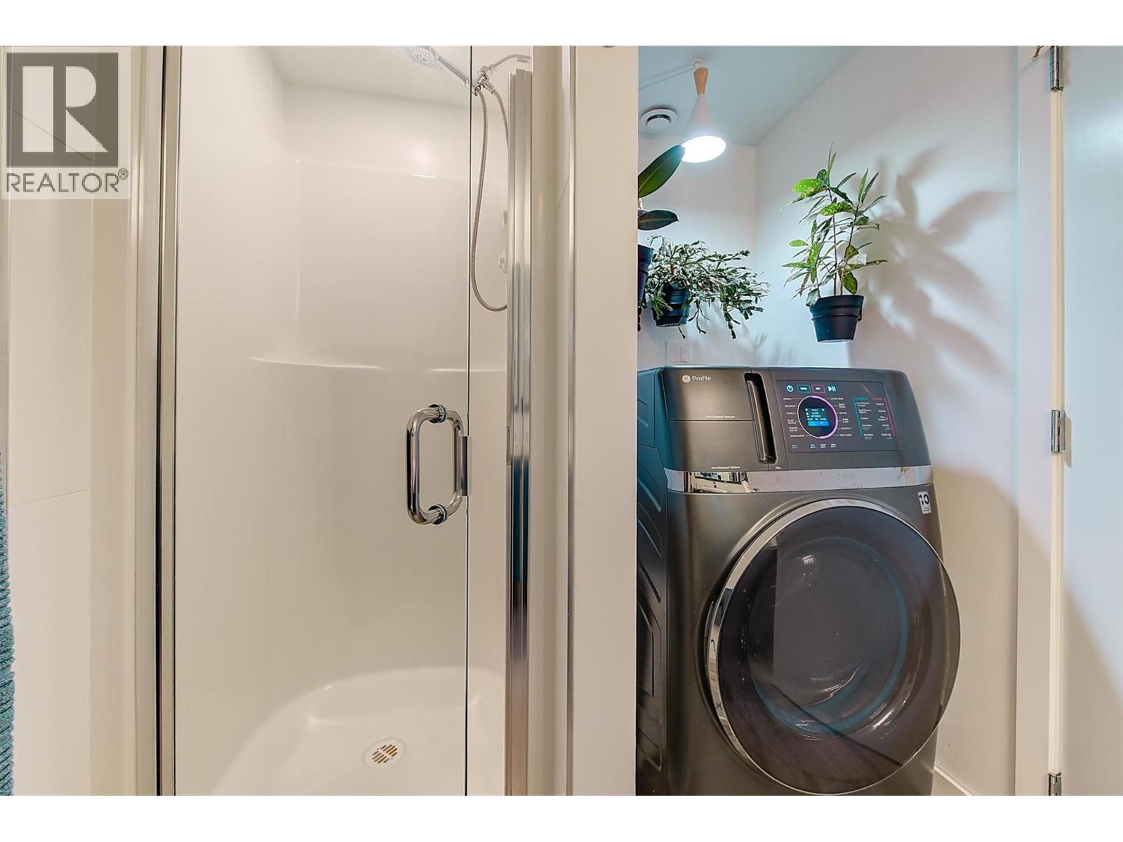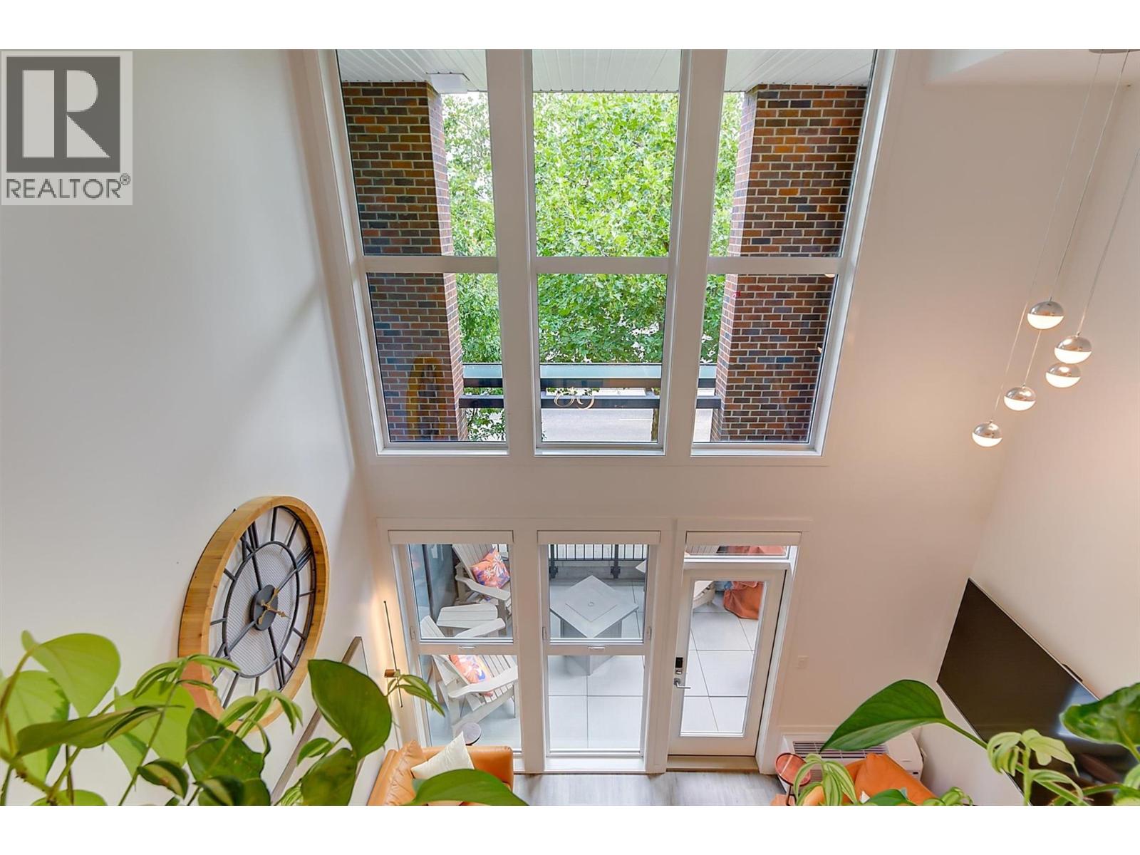 Bright, Urban Chic Loft-style condo at Central Green! This 2-bedroom, 2-bathroom home offers entrances to both levels with towering 18 ft ceilings and impressive oversized floor to ceiling windows allowing the natural light to flood your living space. The open layout showcases a sleek kitchen with contemporary dual tone cabinetry, Upgraded Stainless Steel appliance package, light quartz countertops, a moveable island workstation, all flowing into a cool, luxe living area with elegant modern lighting. Durable, great looking & easy care Luxury Vinyl plank is found throughout, perfect for entertaining & ideal for pets ( 2 dogs, 2 cats or 1 of each allowed - no size restriction here). Find an east-facing terrace with a beautiful brick facade and black accented frosted glass privacy panels to enjoy your morning coffee as the sun rises or enjoying a fresh Okanagan evening. The Lofted primary bedroom overlooks the main living area below, offering ample closet space, a 3pc ensuite bath & laundry. The main floor 2nd bedroom is ideal for guests, crafts, a home office, or a studio. Practical perks include a secure Underground parking stall, plus a convenient, same floor storage locker. Central Green is situated beside the pristine Rowcliffe Park with running loop, playground, and beautiful green space. THIS is all in walking distance to beaches, schools, shopping, dining, and Kelowna’s vibrant downtown easily accessible via the Bertram Pathway & Multiuse Overpass & transit is out front!